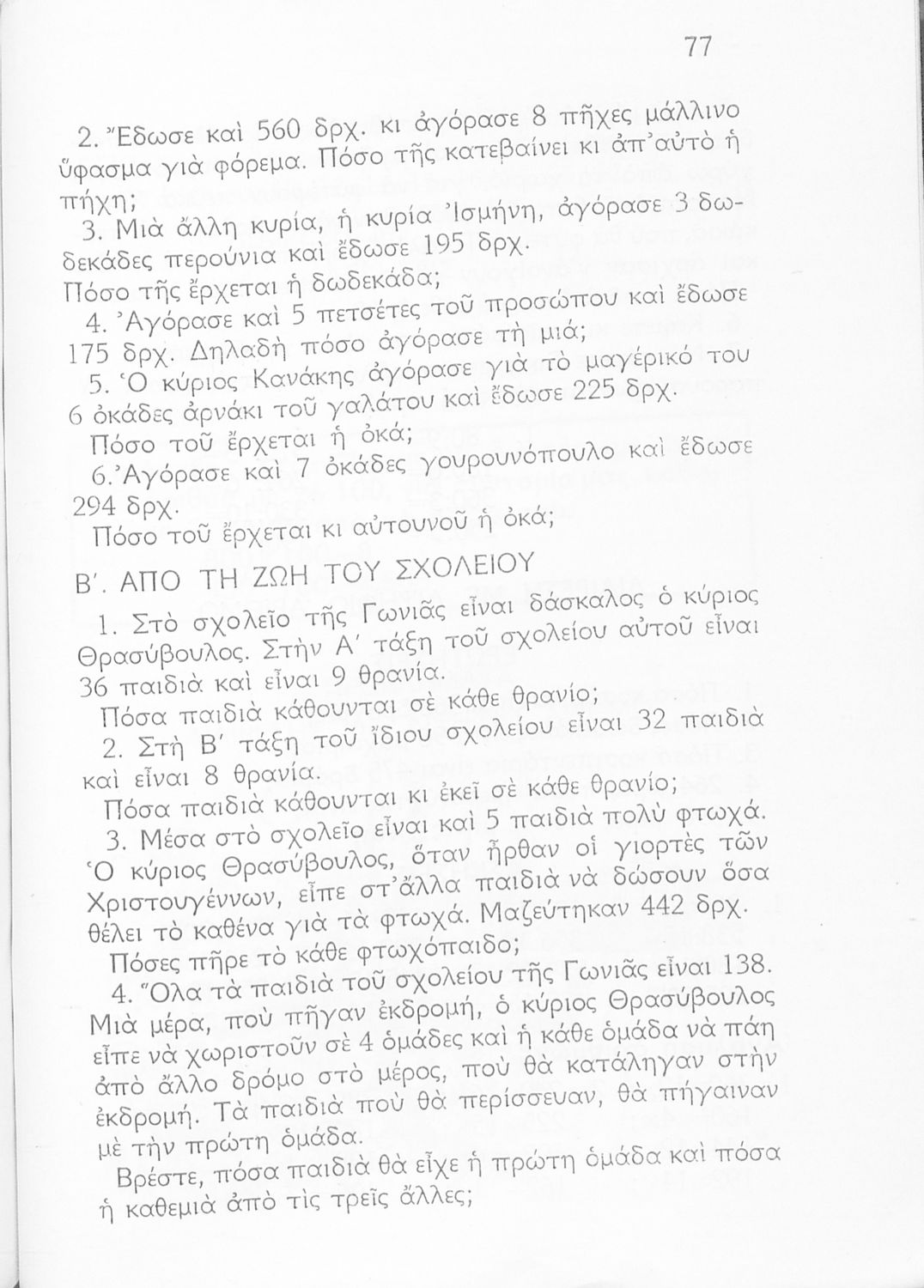 Αριθμητικά προβλήματα του Δημοτικού Σχολείου (νέο σύστημα) τάξη Γ΄