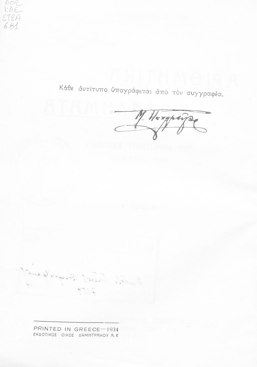 Εκδότης: Δημητράκος Έτος έκδοσης: 1934 Τόπος έκδοσης: Αθήνα Έκδοση: 1η |