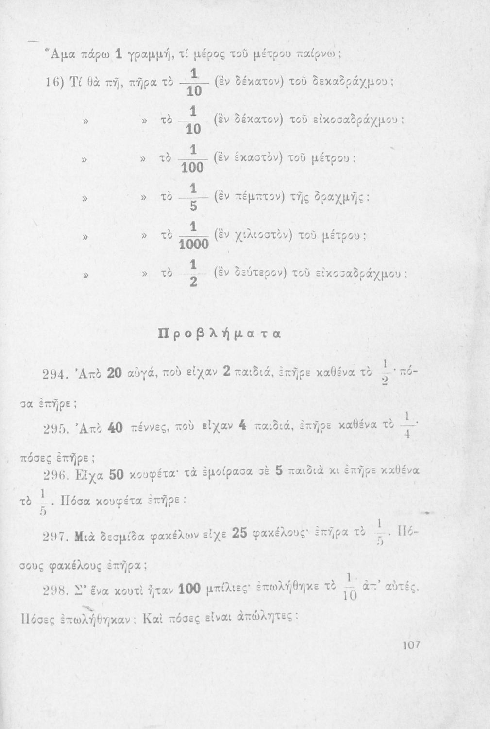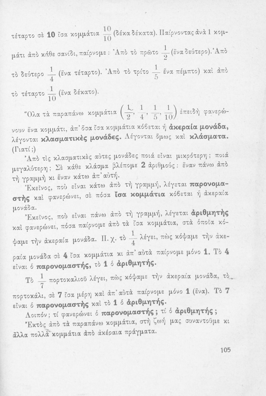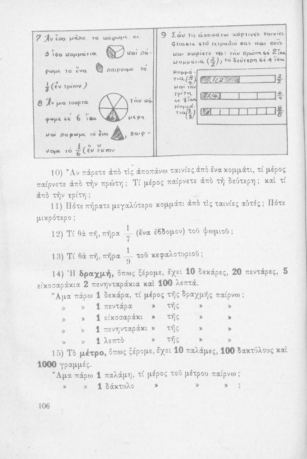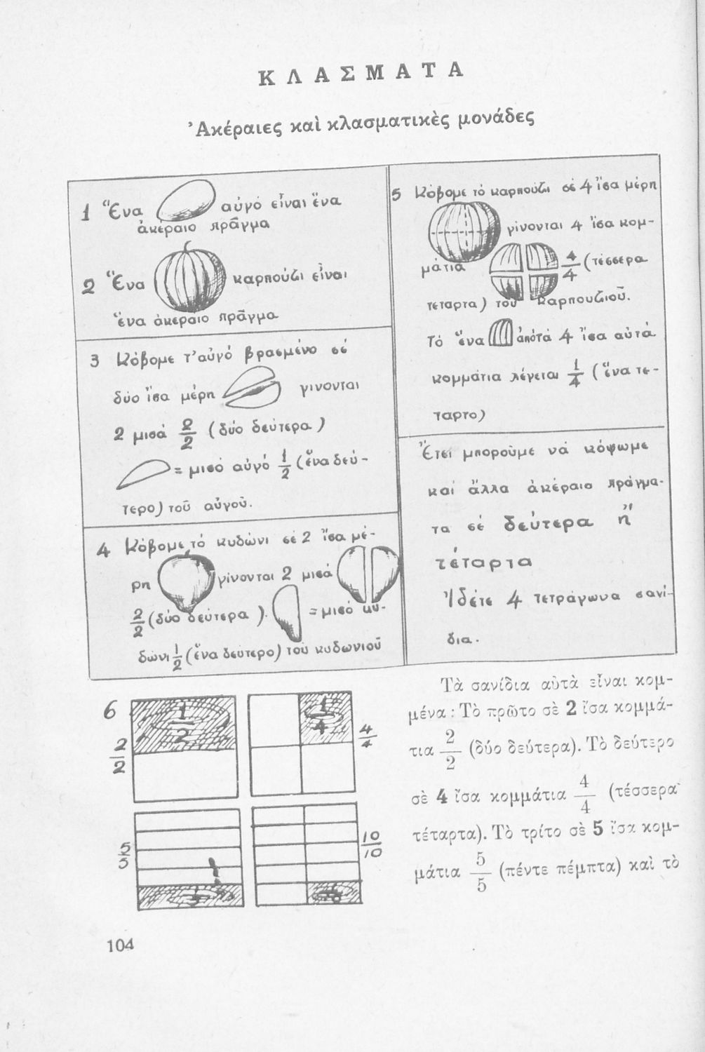 Σχολικό εγχειρίδιο Αριθμητικής Ε΄ Δημοτικού που αναφέρεται αποκλειστικά στα κλάσματα και περιέχει μόνο ασκήσεις.