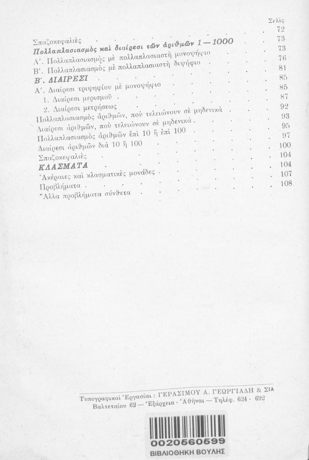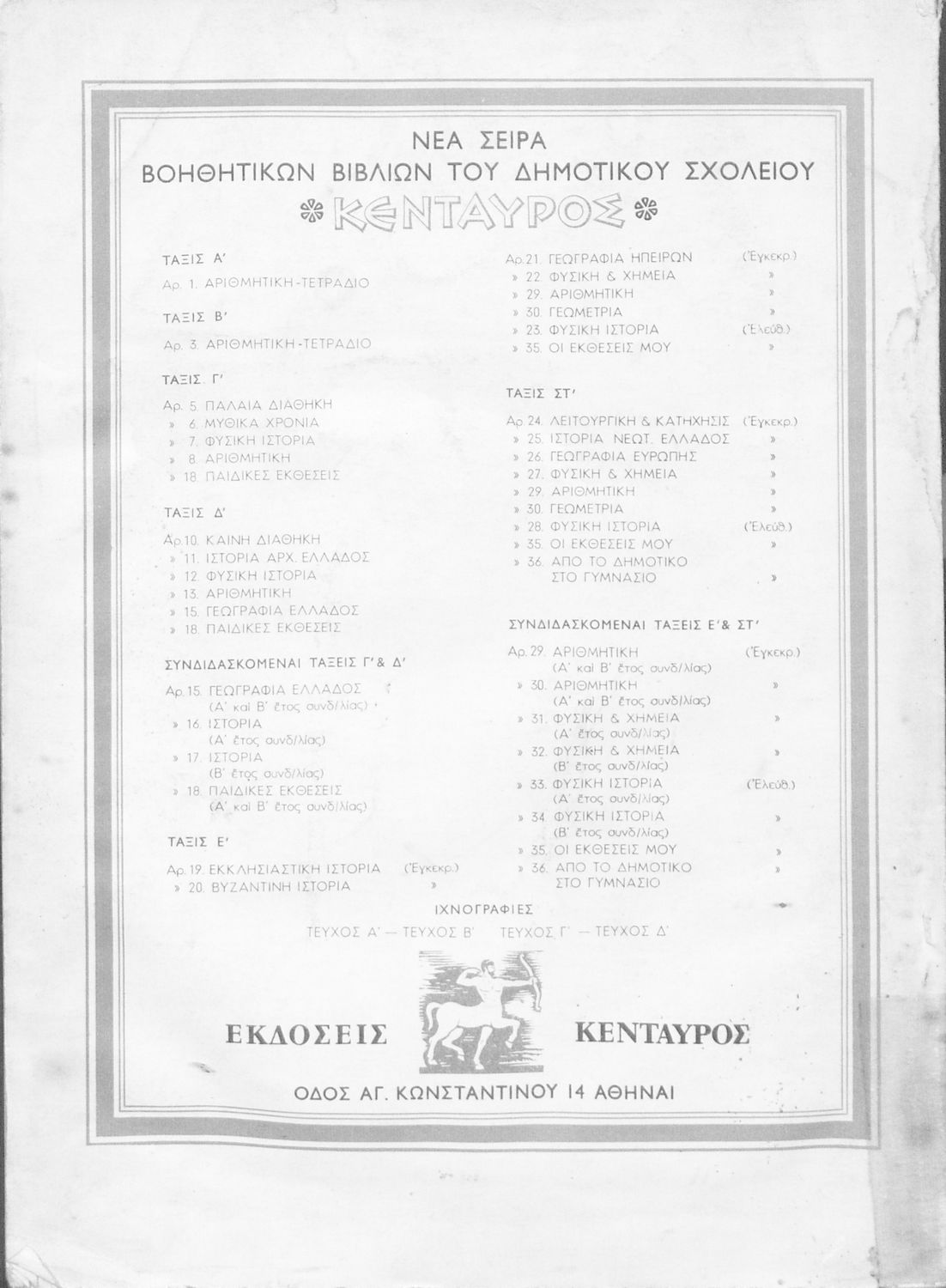 Σχολικό εγχειρίδιο Γεωγραφίας για τη Γ΄, Δ΄ Δημοτικού. Μελετά την Ελλάδα ανά γεωγραφικό νομό με πληροφορίες από το χάρτη της περιοχής και στοιχεία της ιστορίας και της οικονομικής ζωής.