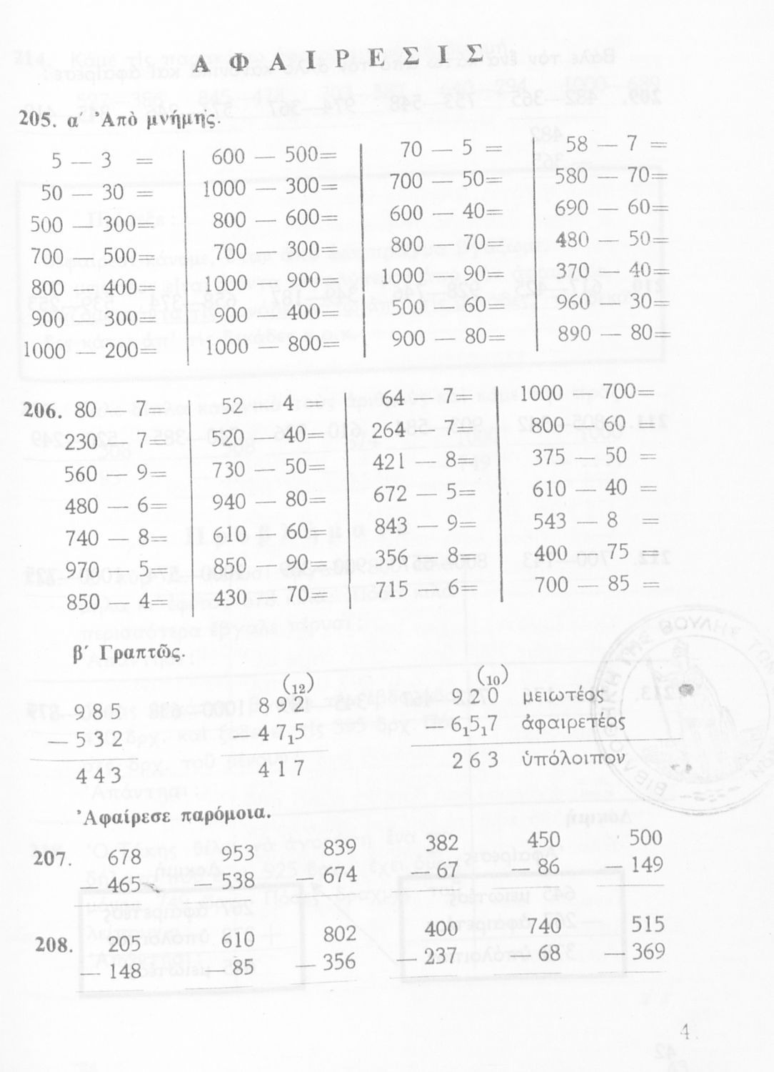 LDR 01046 2200193 4500 035 ## _a03-20560600 040 ## _aΒιβλιοθήκη της Βουλής των Ελλήνων 041 ## _ael 100 ## _aΧρ. Καρύδης _aΚ. Λόγος 110 ## _a20560600 245 0# _aΤετράδιον Αριθμητικής. Τάξη Γ΄ 260 ## _aΑθήνα _bΚόσμος 300 ## _a63 _bΕικόνες (ασπρόμαυρες), Πίνακες (ασπρόμαυροι) 520 ## _aΜαθητικό βοήθημα της Γ΄ Δημοτικού για τα Μαθηματικά. Περιέχει ασκήσεις και προβλήματα για την εξάσκηση στις μαθηματικές πράξεις και τα προβλήματα. 521 ## _aΓ' Δημοτικού 522 ## _aΕλλάδα 546 ## _aΔημοτική 563 ## _aΜαλακό Εξώφυλλο 650 #4 _aΑριθμητική _aΑσκήσεις _aΔημοτικό _aΔιαίρεση _aΜαθηματικά _aΠολλαπλασιασμός _aΠροβλήματα