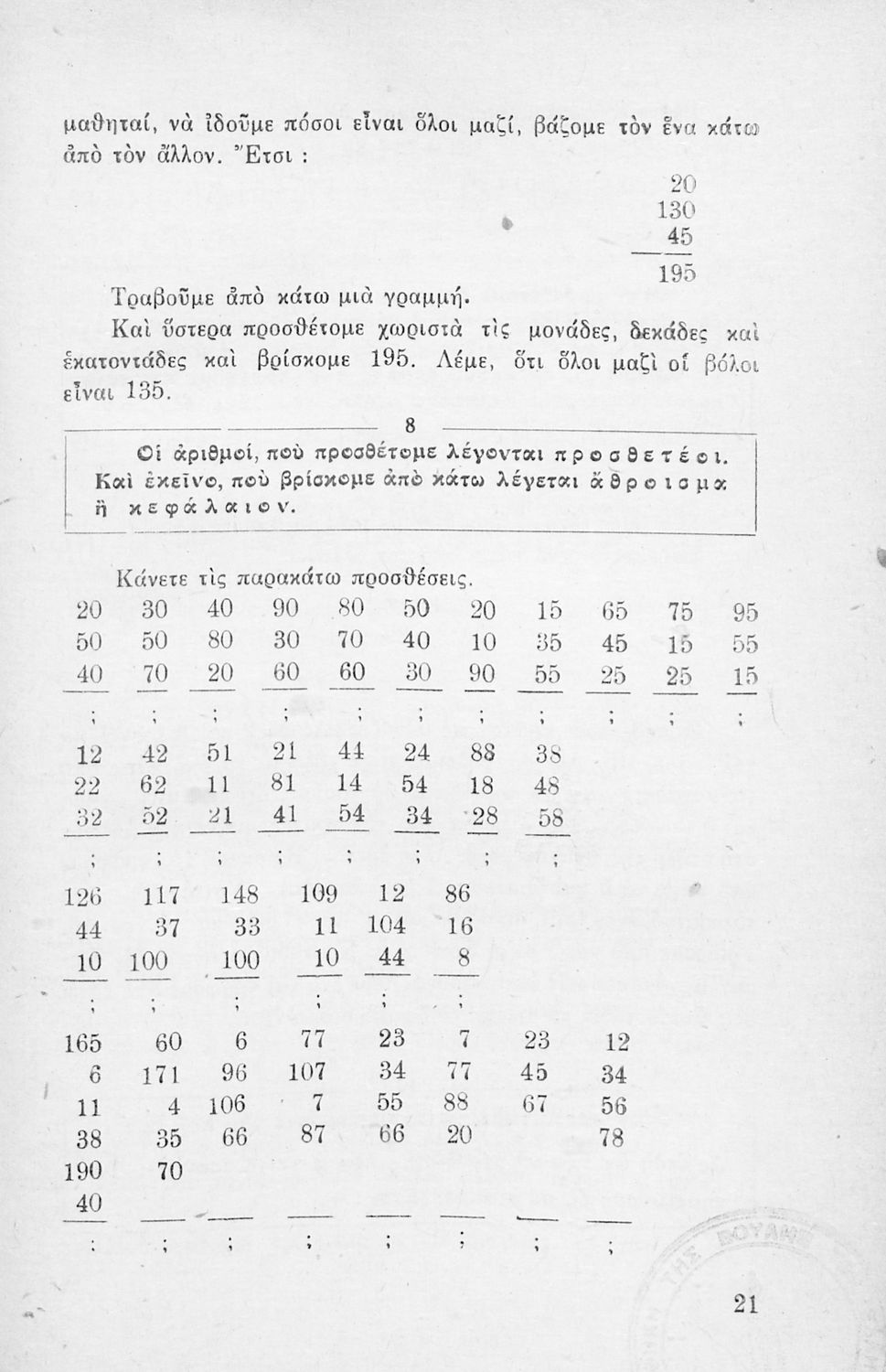 Βαθμίδα εκπαίδευσης: Πρωτοβάθμια Τάξη: Γ' Δημοτικού Μάθημα: Μαθηματικά Γλώσσα: Απλή καθαρεύουσα Παρουσίαση περιεχομένου: Μαθητικό βοήθημα Μαθηματικών Γ΄ Δημοτικού που περιέχει ασκήσεις και προβλήματα με τις αριθμητικές πράξεις. |