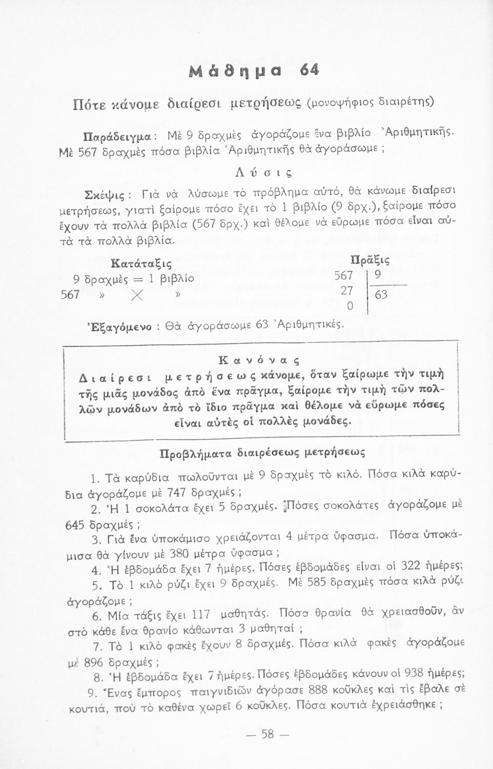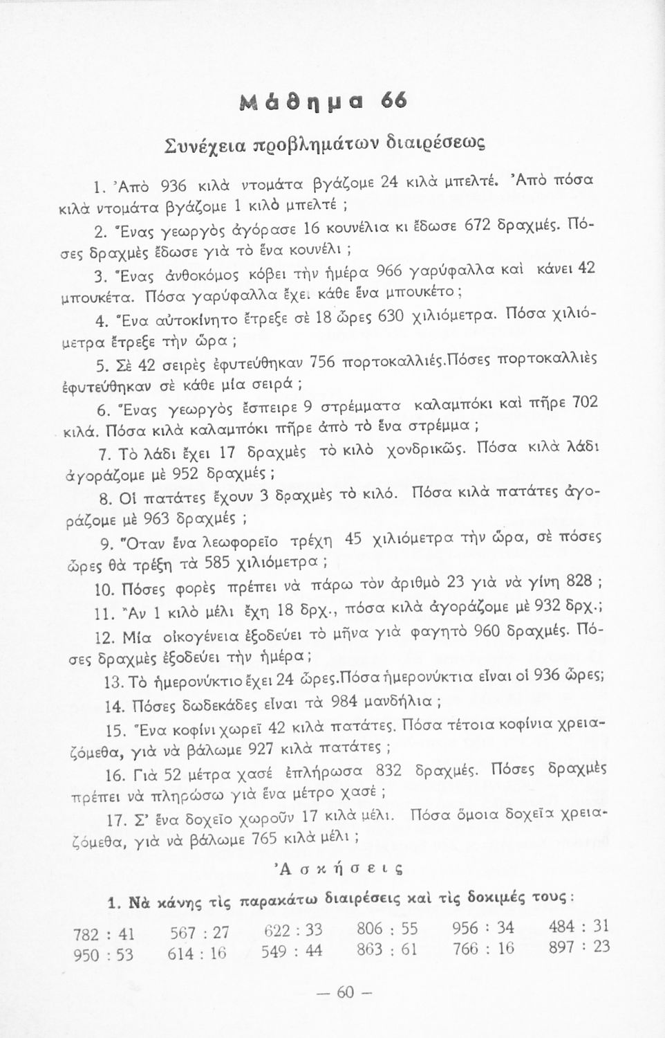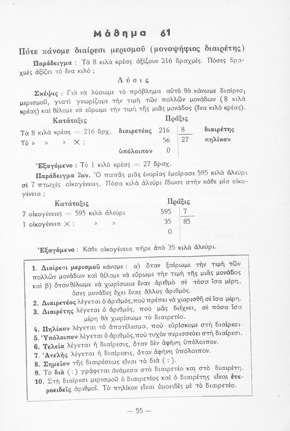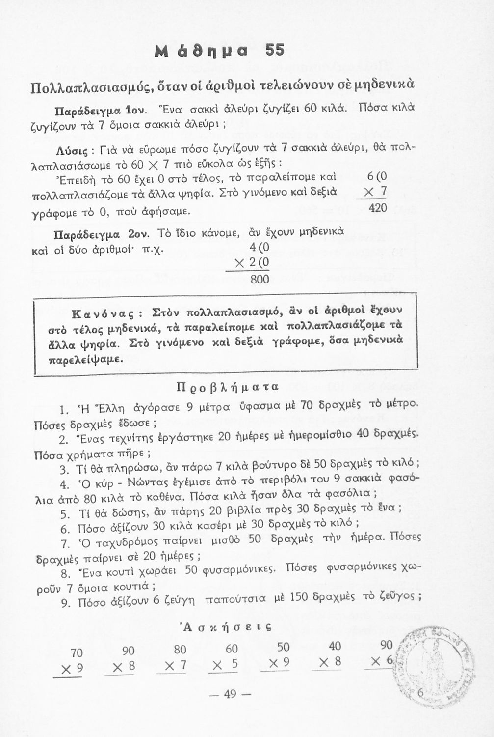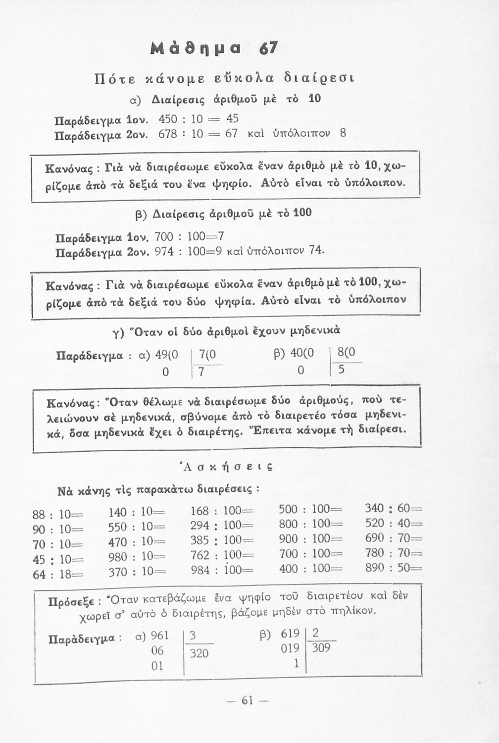 Βαθμίδα εκπαίδευσης: Πρωτοβάθμια Τάξη: Γ' Δημοτικού Μάθημα: Μαθηματικά Γλώσσα: Απλή καθαρεύουσα Παρουσίαση περιεχομένου: Μαθητικό βοήθημα Αριθμητικής Γ΄ Δημοτικού που εστιάζει στις αριθμητικές πράξεις. Περιέχει και ασκήσεις. |