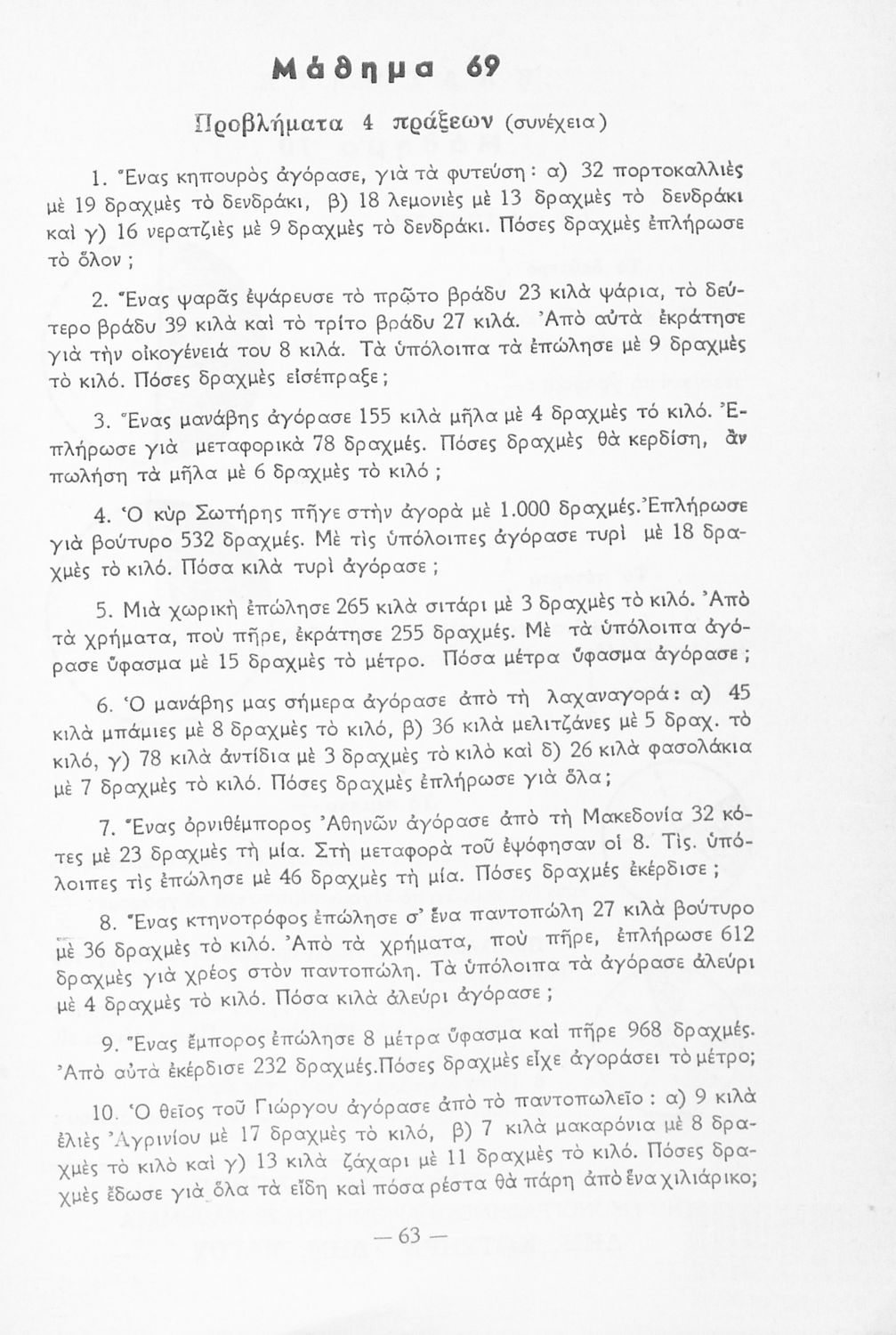 Βαθμίδα εκπαίδευσης: Πρωτοβάθμια Τάξη: Γ' Δημοτικού Μάθημα: Μαθηματικά Γλώσσα: Απλή καθαρεύουσα Παρουσίαση περιεχομένου: Μαθητικό βοήθημα Αριθμητικής Γ΄ Δημοτικού που εστιάζει στις αριθμητικές πράξεις. Περιέχει και ασκήσεις. |