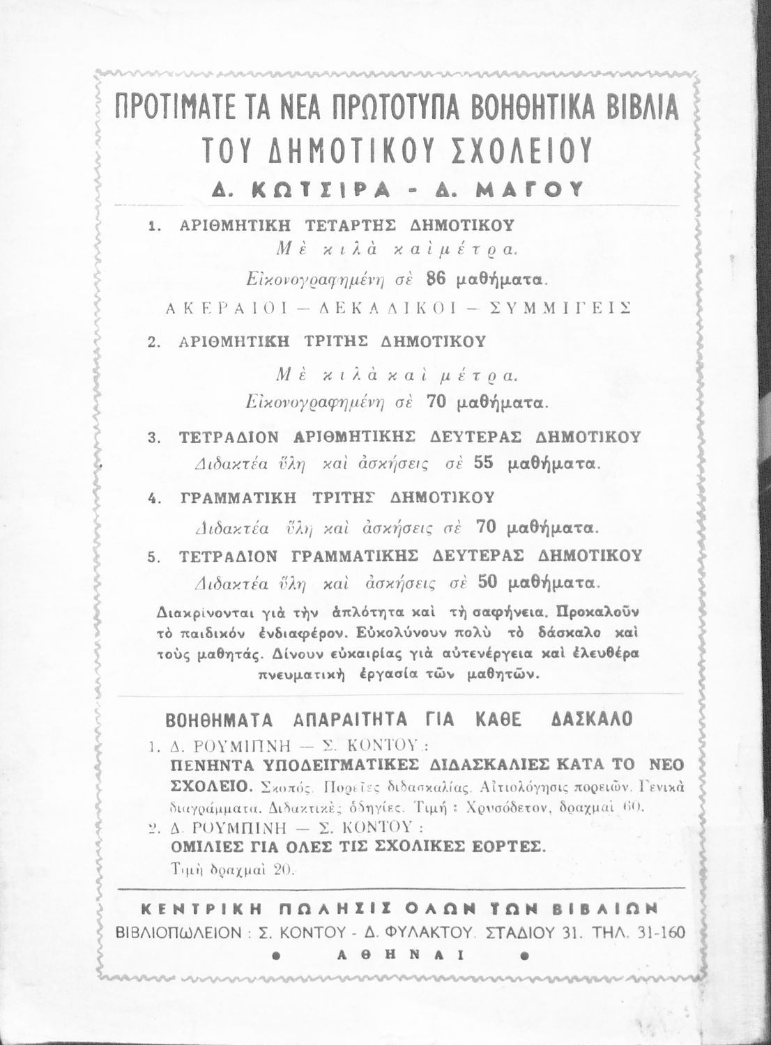 Εκδότης: Σ. Κόντος, Δ. Φυλακτός Έτος έκδοσης: 1956 Τόπος έκδοσης: Αθήνα |