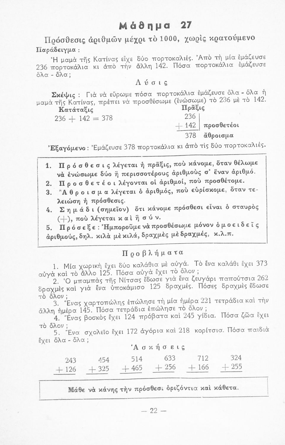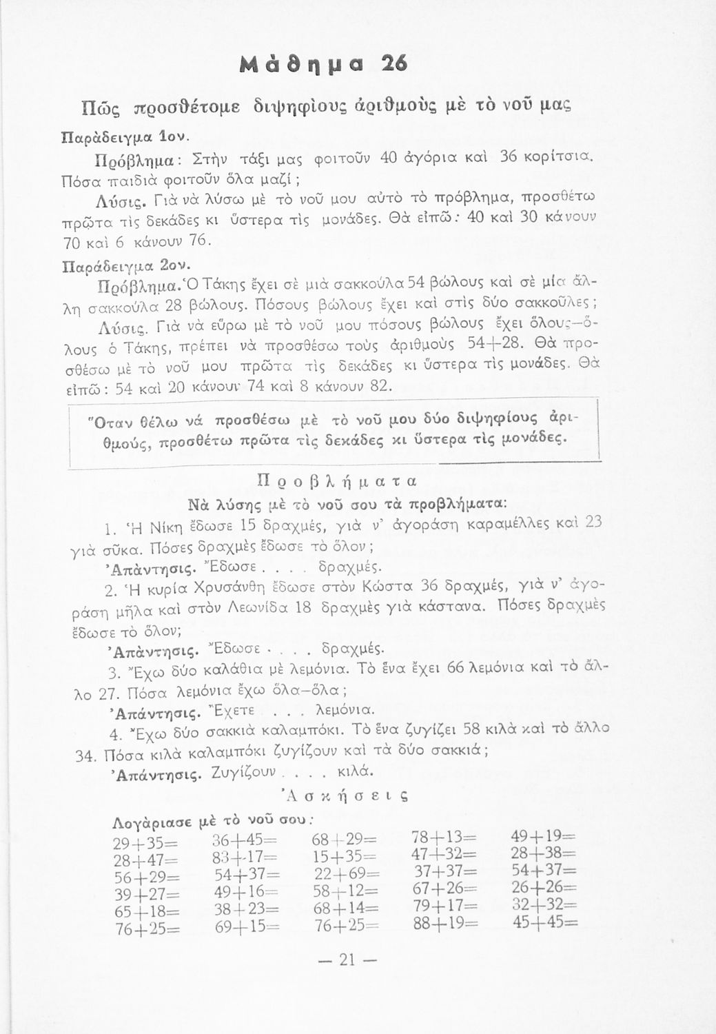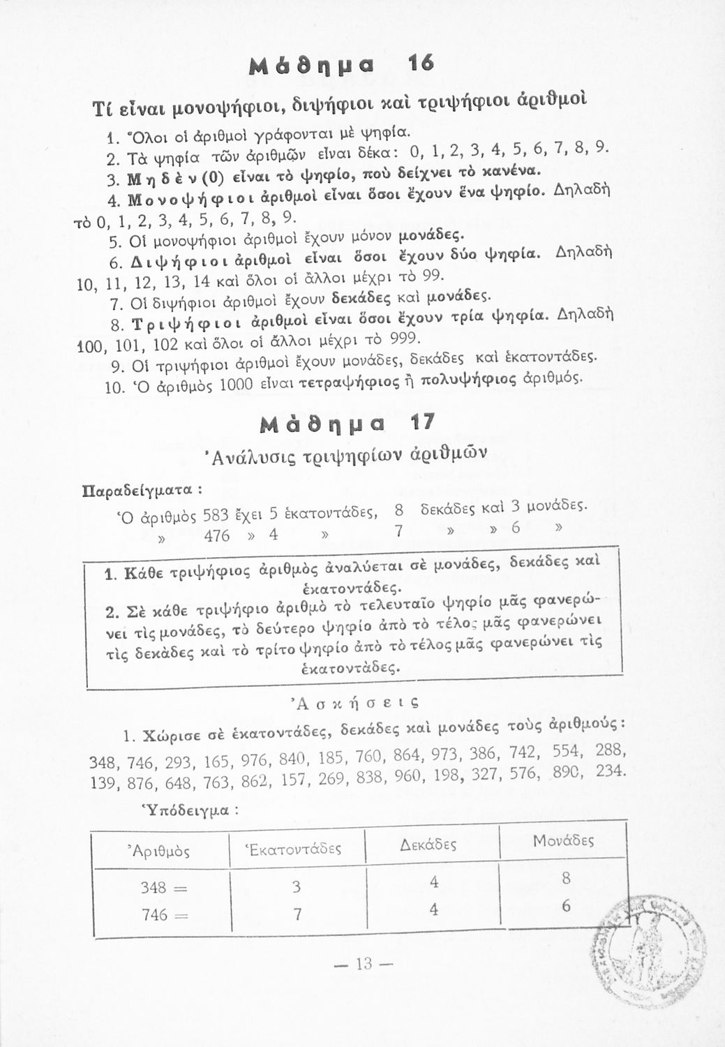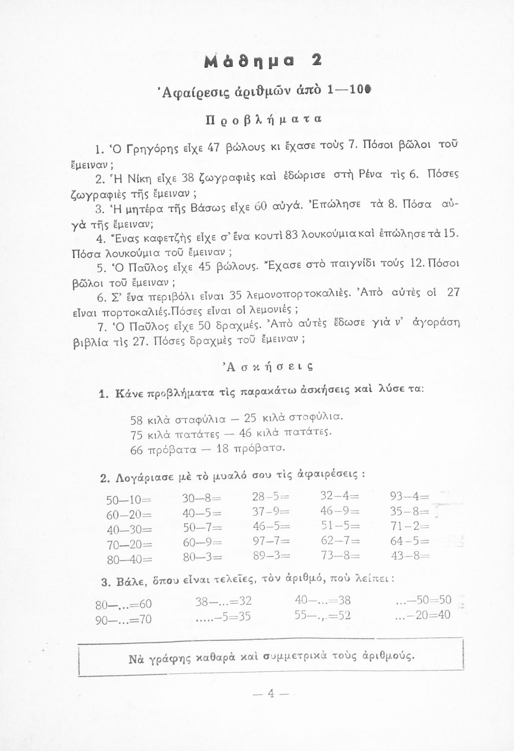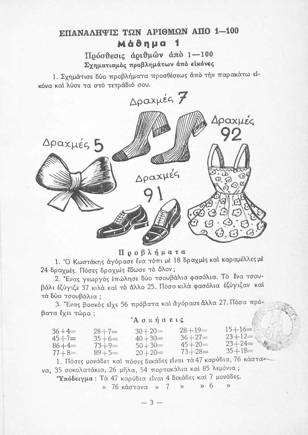 Μαθητικό βοήθημα Αριθμητικής για τους μαθητές των Γ΄ και Δ΄ τάξεων του Δημοτικού. Το βιβλίο περιέχει επαναληπτικές ασκήσεις με αριθμητικές ασκήσεις με τους αριθμούς από το 1-100.