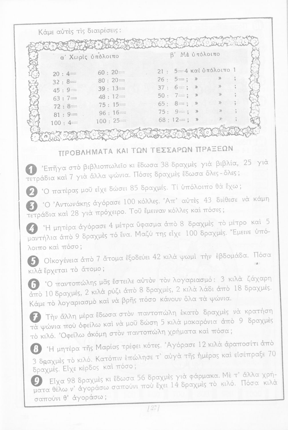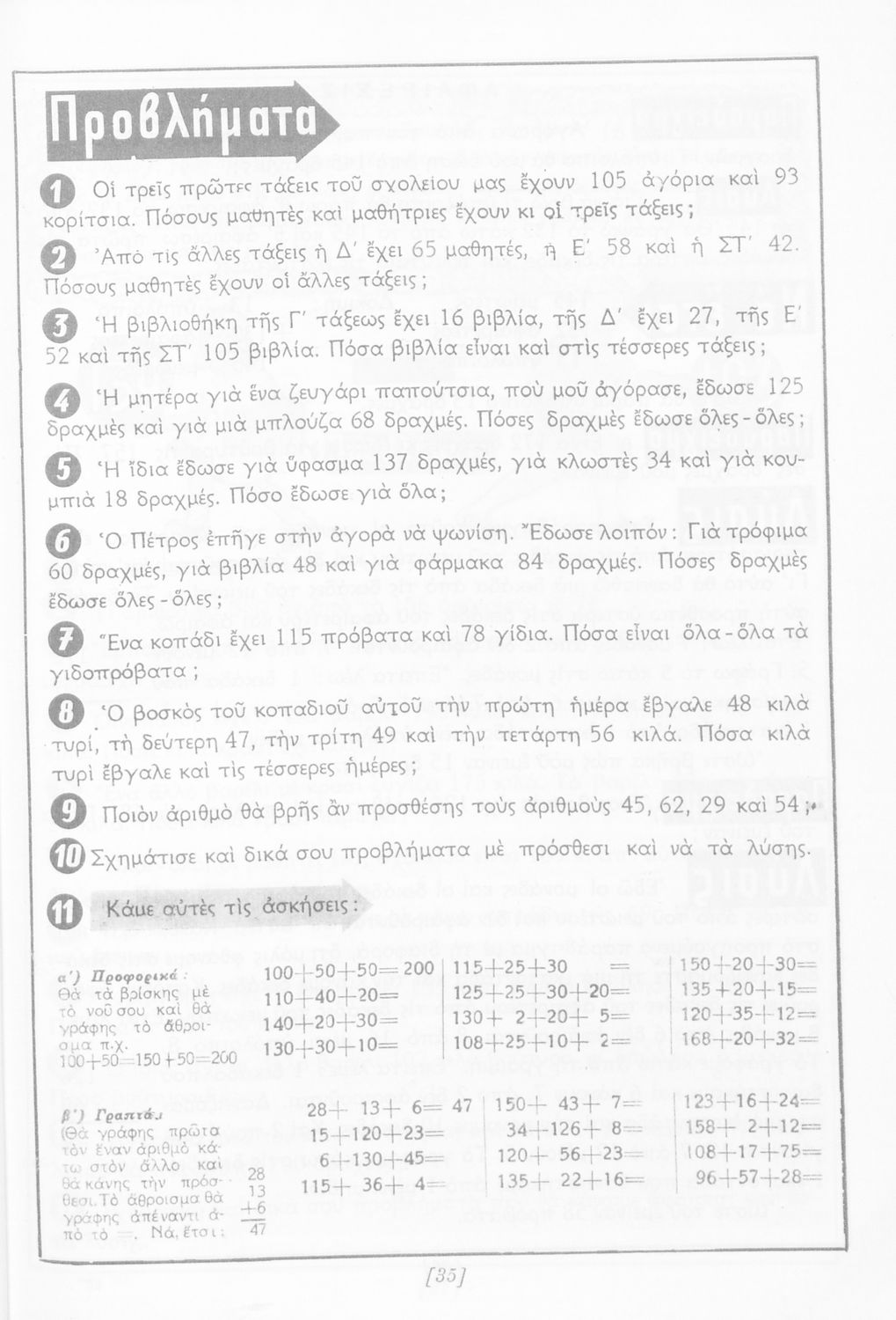 Μαθητικό βοήθημα Αριθμητικής για τους μαθητές των Γ΄ και Δ΄ τάξεων του Δημοτικού. Το βιβλίο περιέχει επαναληπτικές ασκήσεις με αριθμητικές ασκήσεις με τους αριθμούς από το 1-100.