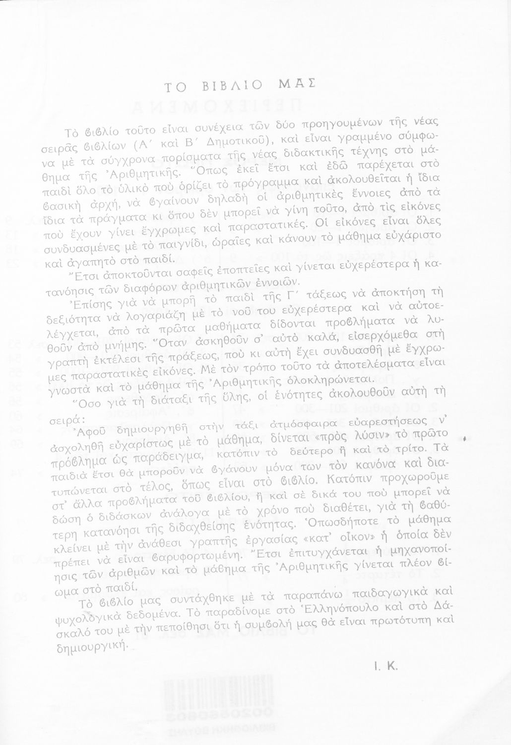 Βαθμίδα εκπαίδευσης: Πρωτοβάθμια Τάξη: Γ' Δημοτικού Μάθημα: Μαθηματικά Γλώσσα: Απλή καθαρεύουσα Παρουσίαση περιεχομένου: Μαθητικό βοήθημα Αριθμητικής Γ΄ Δημοτικού που εστιάζει στις αριθμητικές πράξεις. Περιέχει και ασκήσεις. |