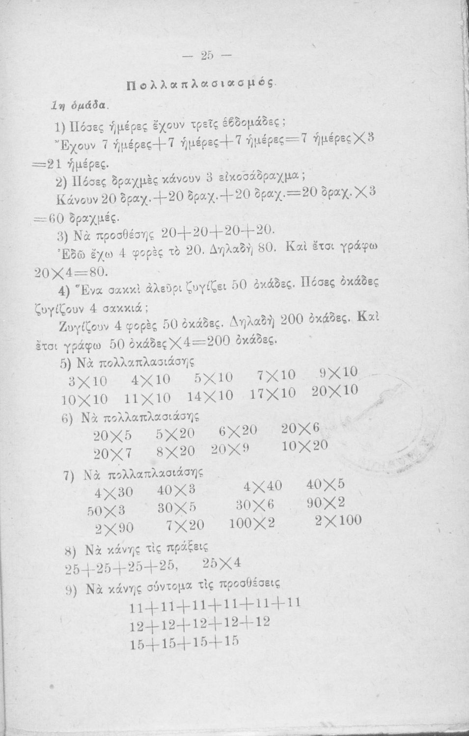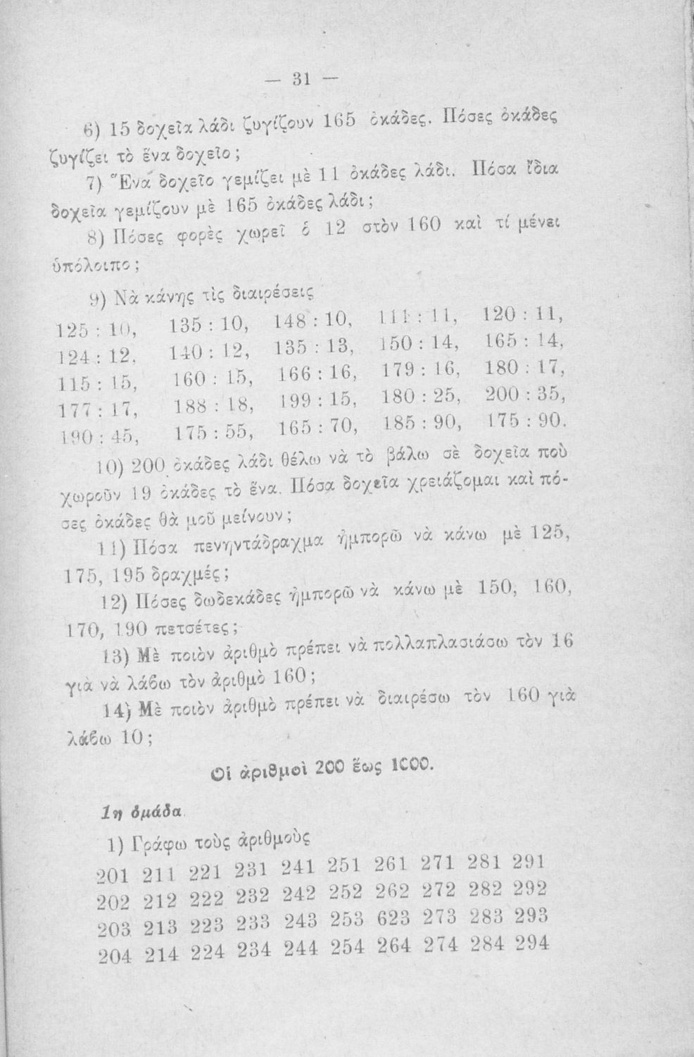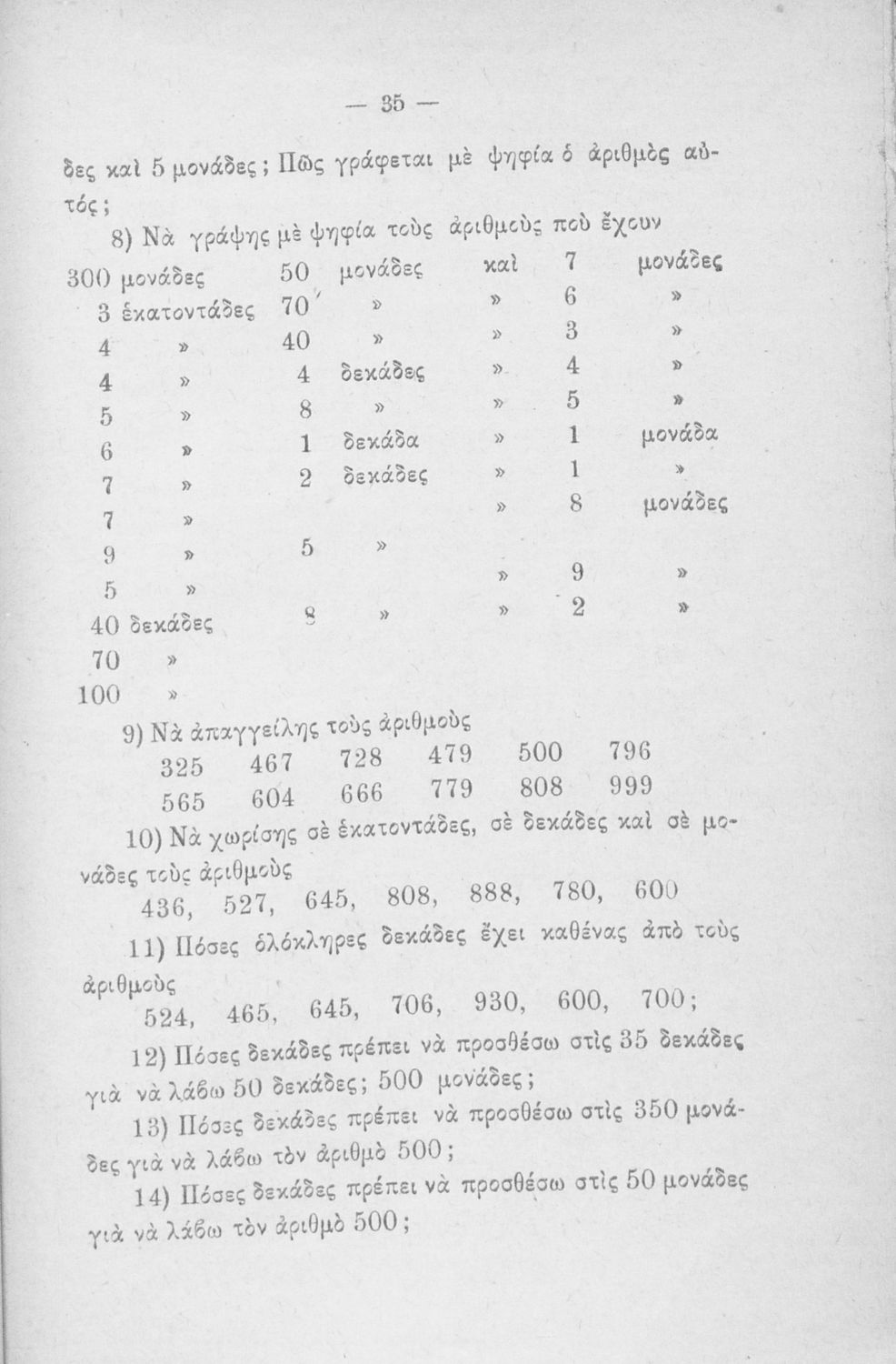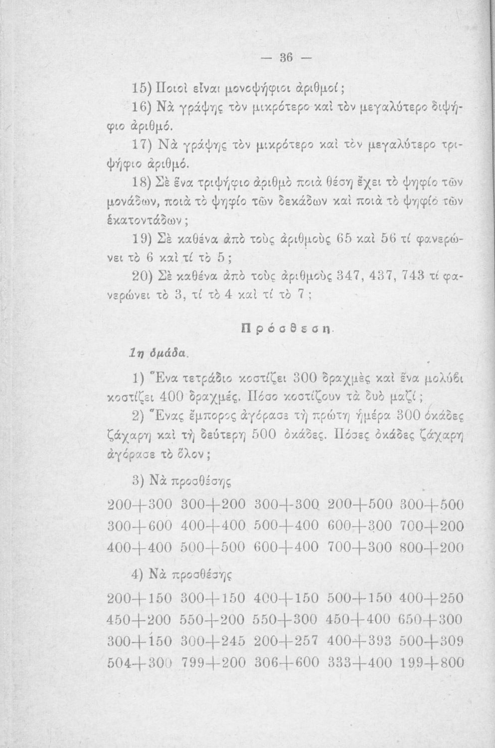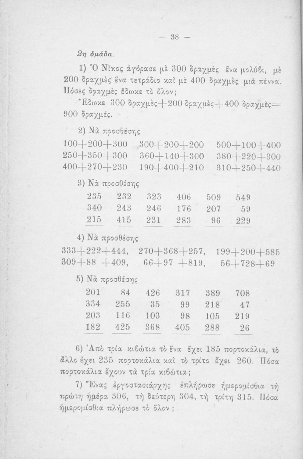 Βαθμίδα εκπαίδευσης: Πρωτοβάθμια Τάξη: Γ' Δημοτικού Μάθημα: Μαθηματικά Γλώσσα: Δημοτική Παρουσίαση περιεχομένου: Μαθητικό βοήθημα Μαθηματικών Γ΄ Δημοτικού που περιλαμβάνει αριθμητικά προβλήματα με τις 4 βασικές πράξεις, τις δεκάδες και εκατοντάδες, και ασκήσεις κατανόησης. |