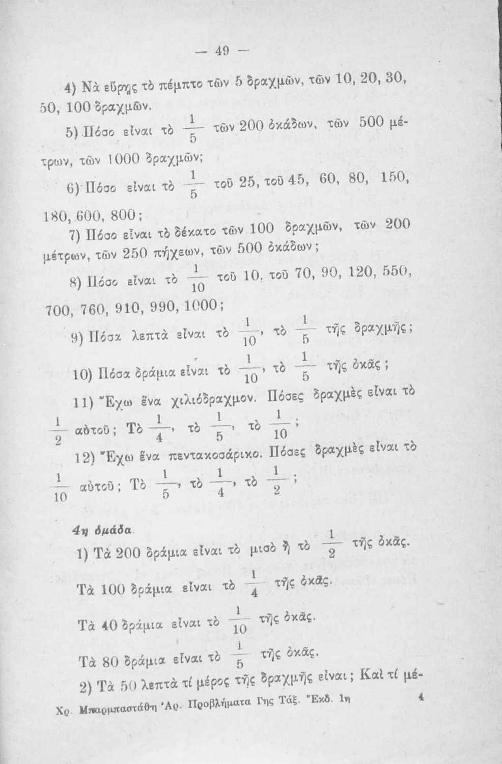 Κωδικός αναγνώρισης: 03-20560606 Τίτλος: Αριθμητικά προβλήματα προς χρήσιν των μαθητών της Γ΄ τάξεως των Δημοτικών Σχολείων Συγγραφέας: Χρίστος Α. Μπαρμπαστάθης Μέγεθος και υπόστρωμα: Μαθητικό βοήθημα, 22εκ., μαλακό εξώφυλλο, 54 σελίδες. |