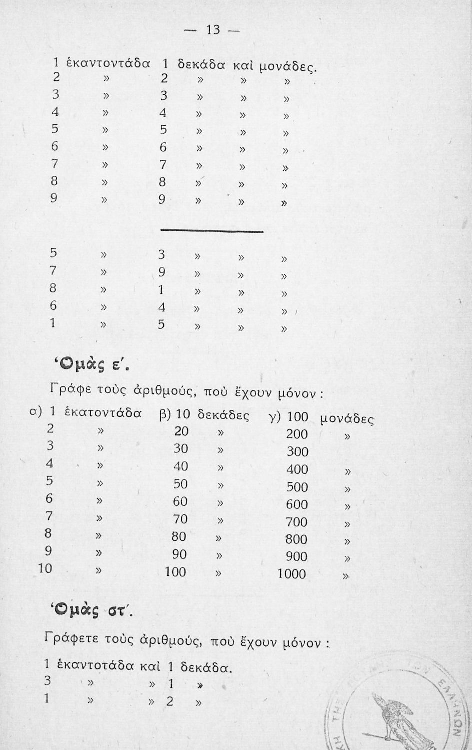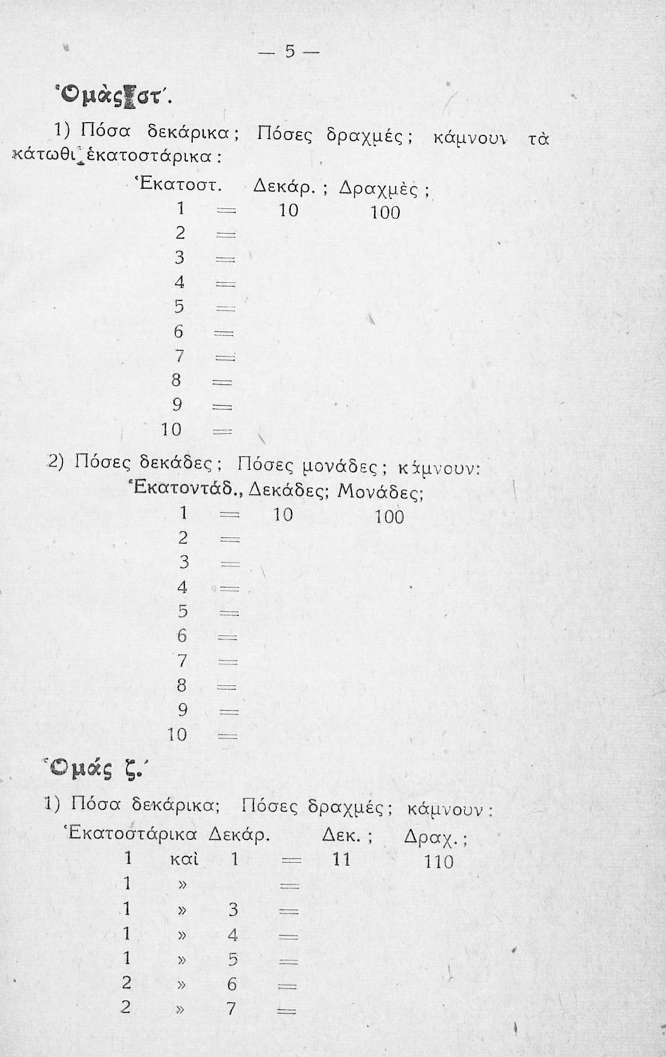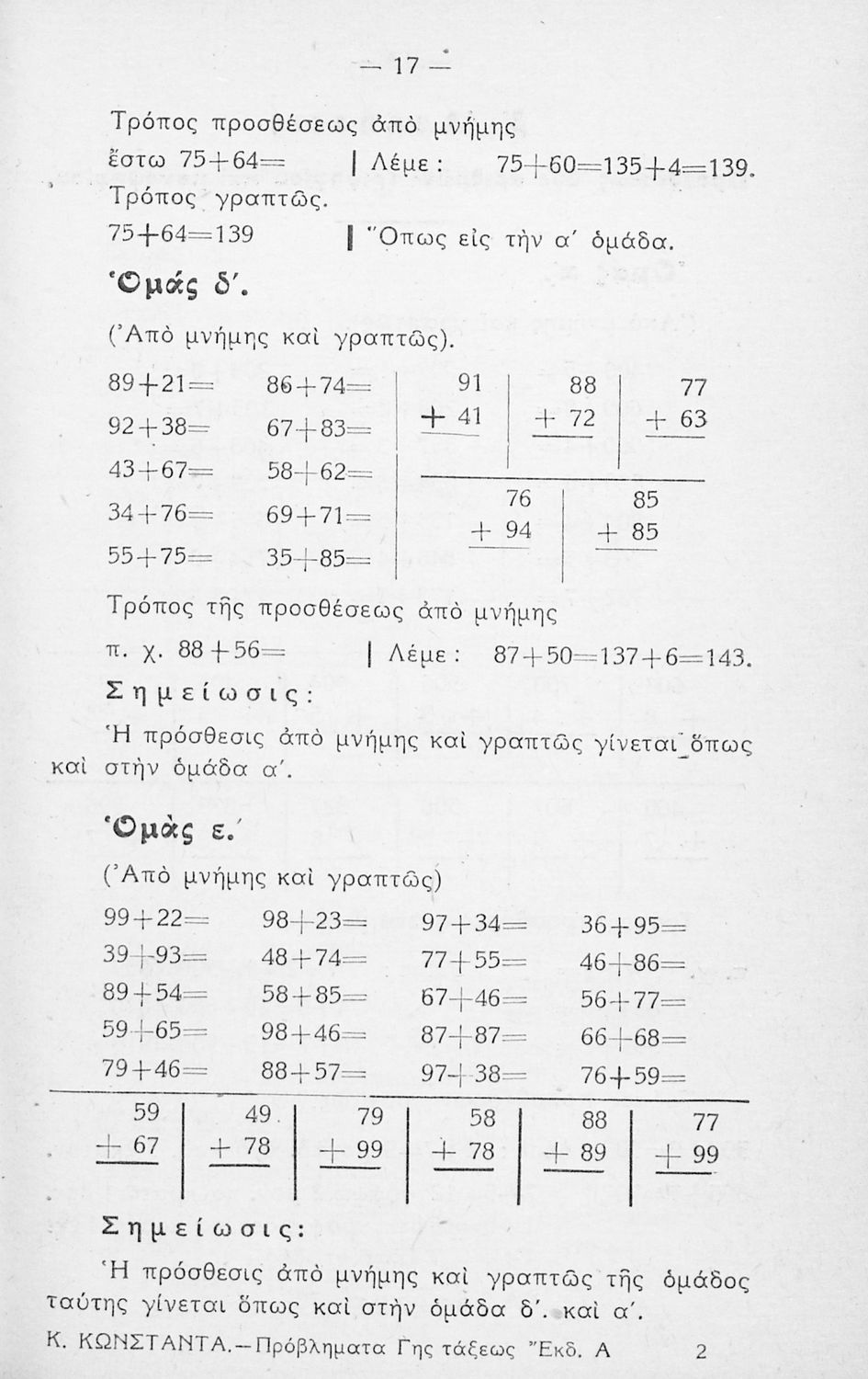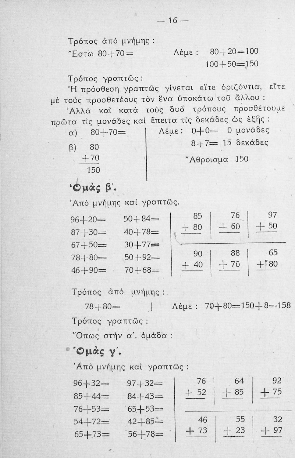 Παρουσίαση περιεχομένου: Το σύγγραμμα ήταν μαθητικό βοήθημα για τα Μαθηματικά του Δημοτικού. Περιλαμβάνει ασκήσεις και προβλήματα για την εξάσκηση των μαθητών στις μαθηματικές έννοιες. Αναφέρεται στις 4 βασικές πράξεις περιλαμβάνοντας θεωρία, ασκήσεις και παραδείγματα για την καλύτερη κατανόηση.