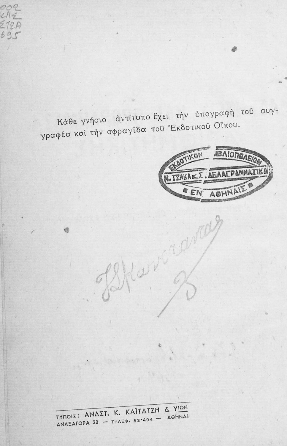 Εκδότης: Δημ. Ν. Τζάκας, Στεφ. Δελαγραμμάτικας