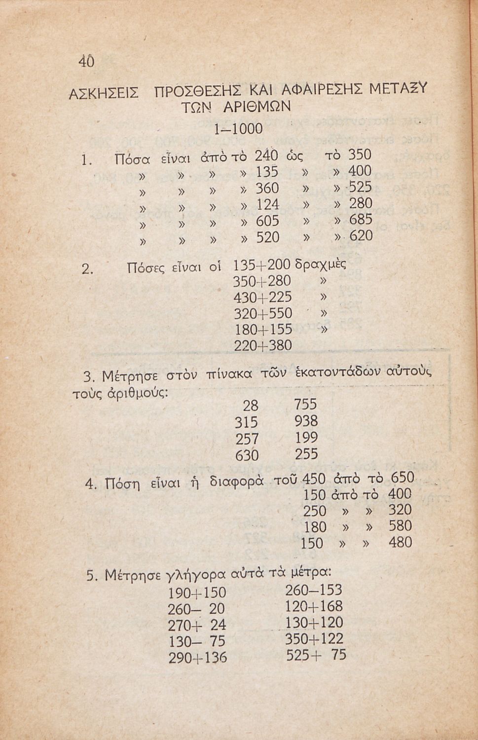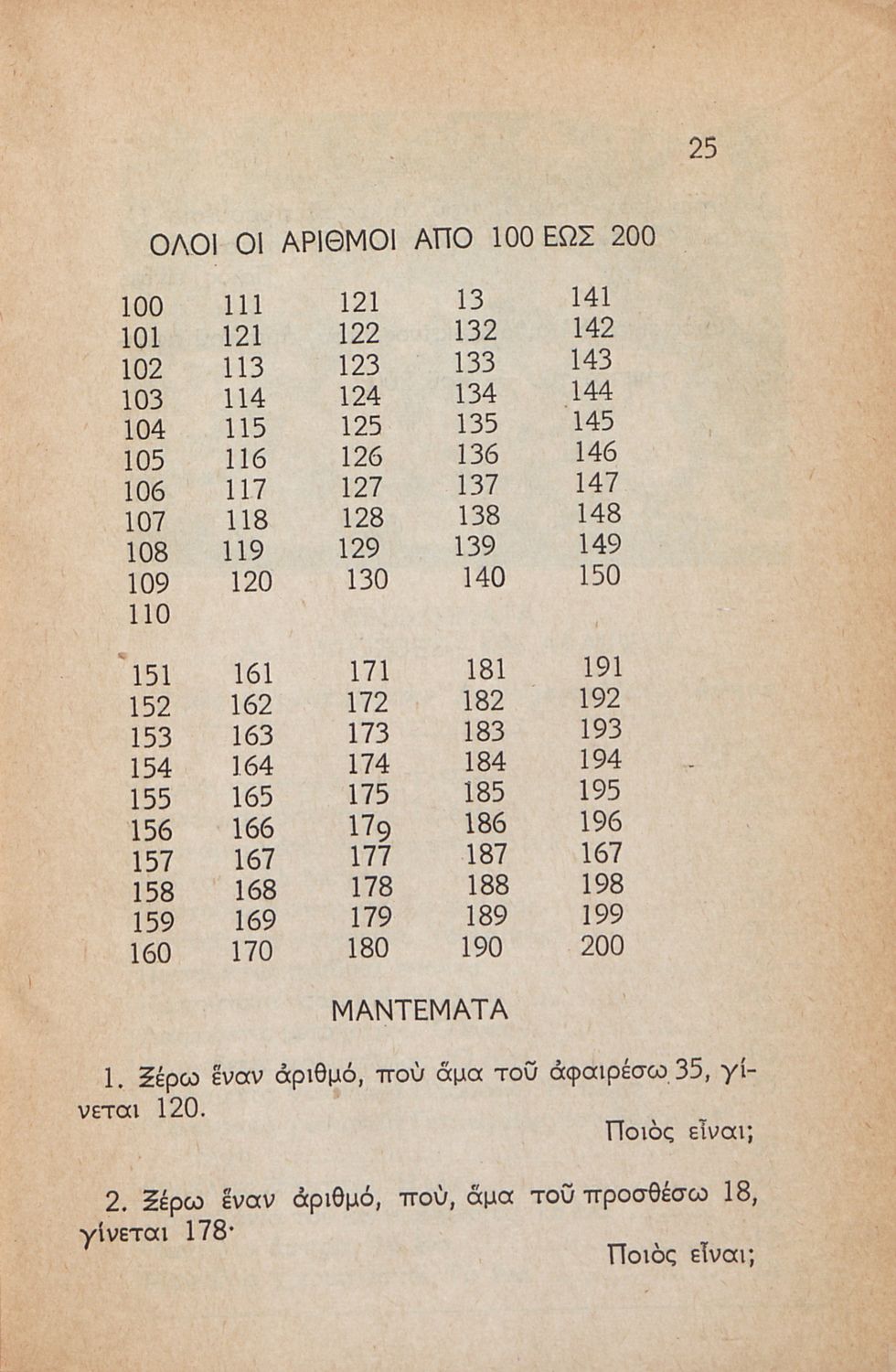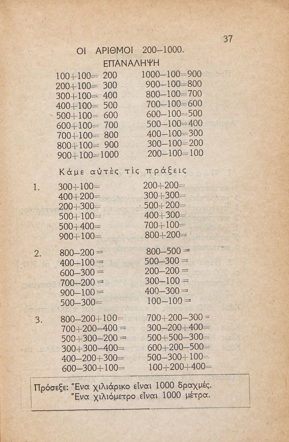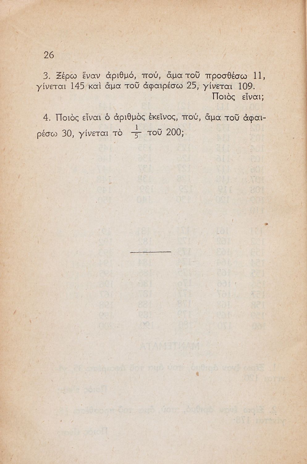 Μαθητικό βοήθημα Αριθμητικής για τους μαθητές των Γ΄ και Δ΄ τάξεων του Δημοτικού. Το βιβλίο περιέχει επαναληπτικές ασκήσεις με αριθμητικές ασκήσεις με τους αριθμούς από το 1-100.