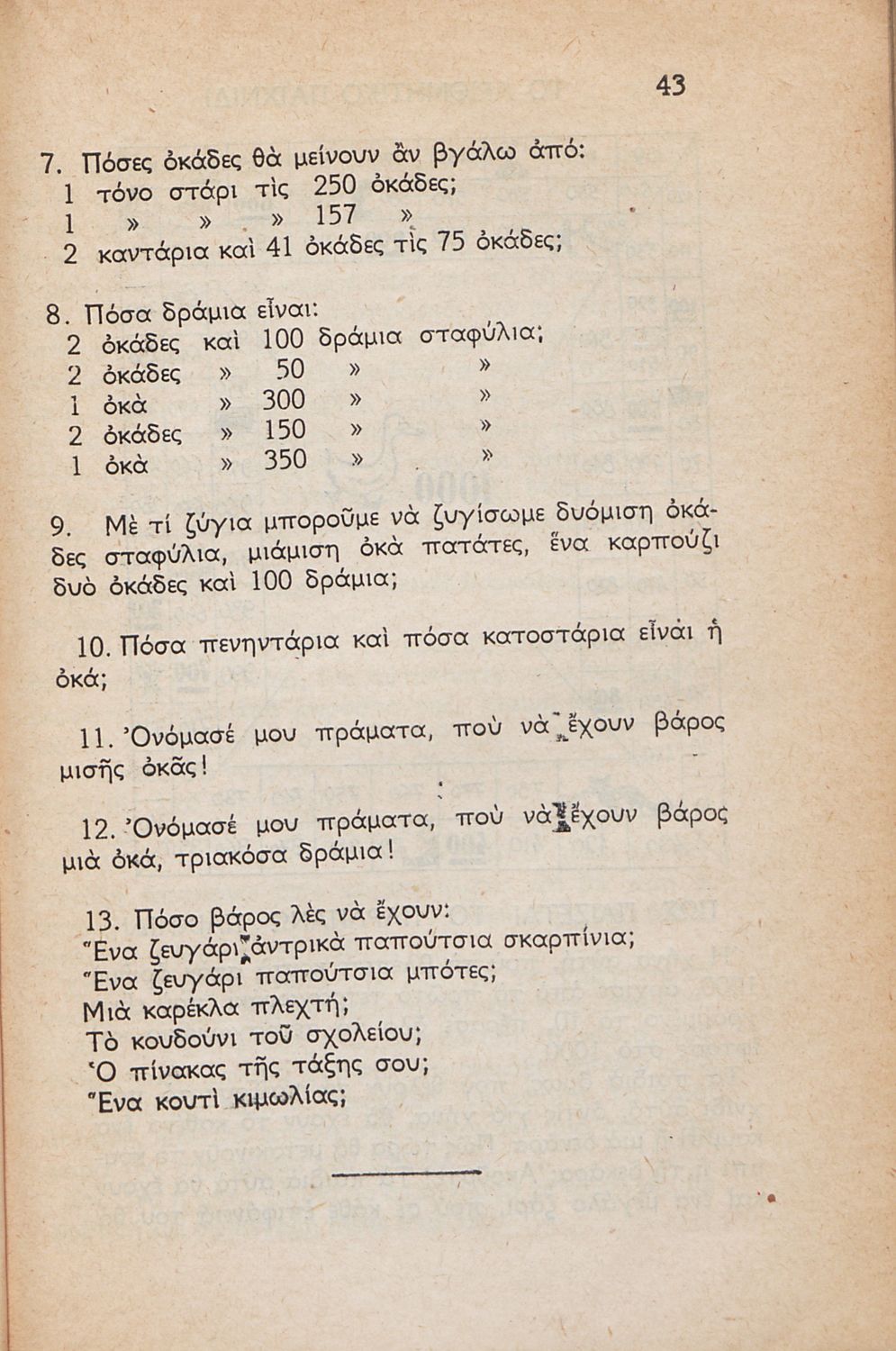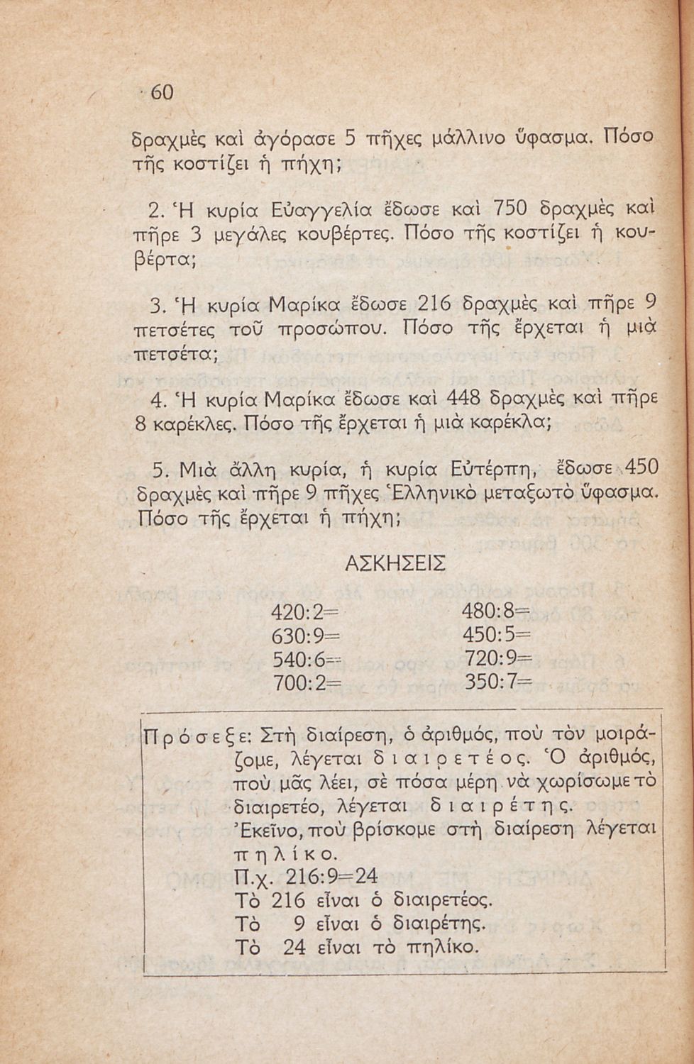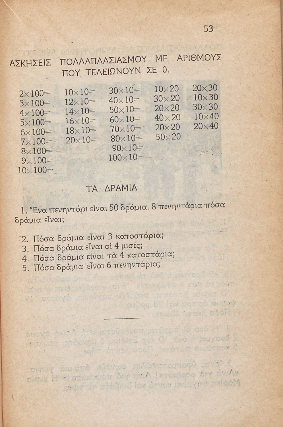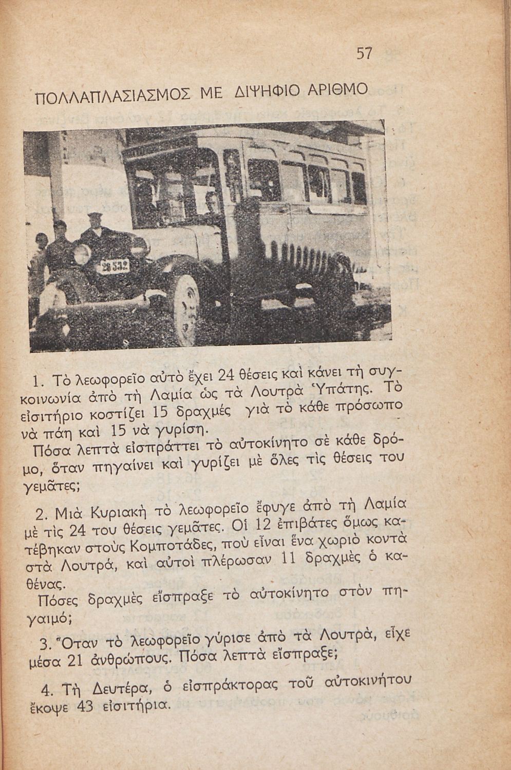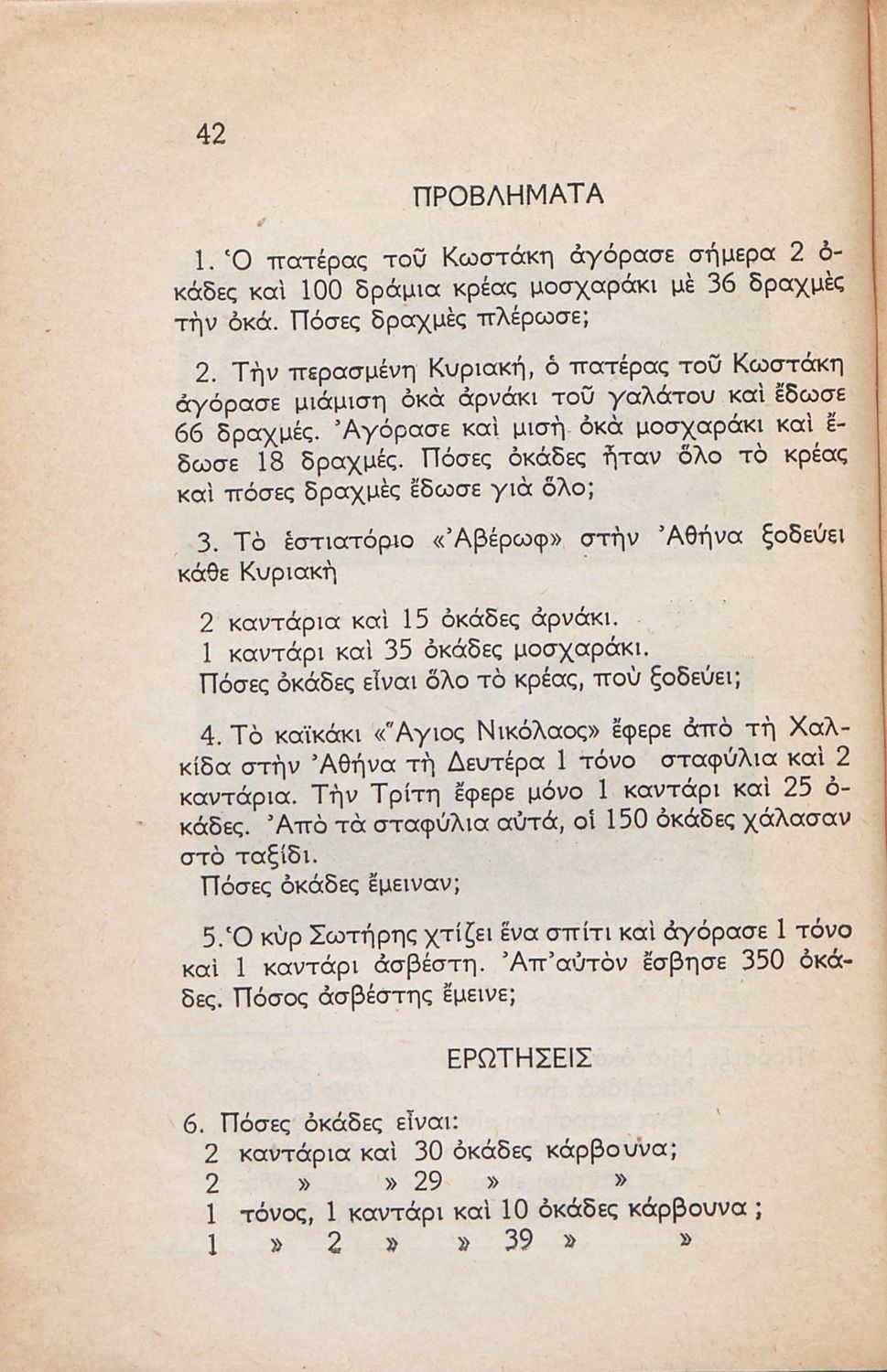 Το σύγγραμμα ήταν μαθητικό βοήθημα για το μαθήματα των Μαθηματικών στο Δημοτικό. Περιέχει ασκήσεις και θεωρία για τις 4 βασικές πράξεις. Επίσης, έχει προβλήματα με τις βασικές πράξεις. Διαθέτει σχήματα για την