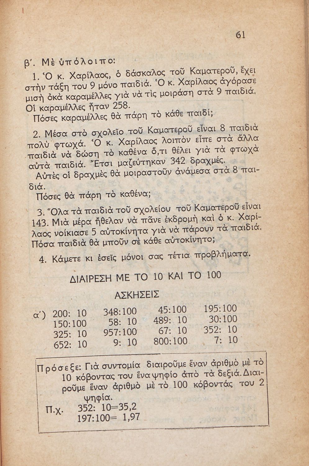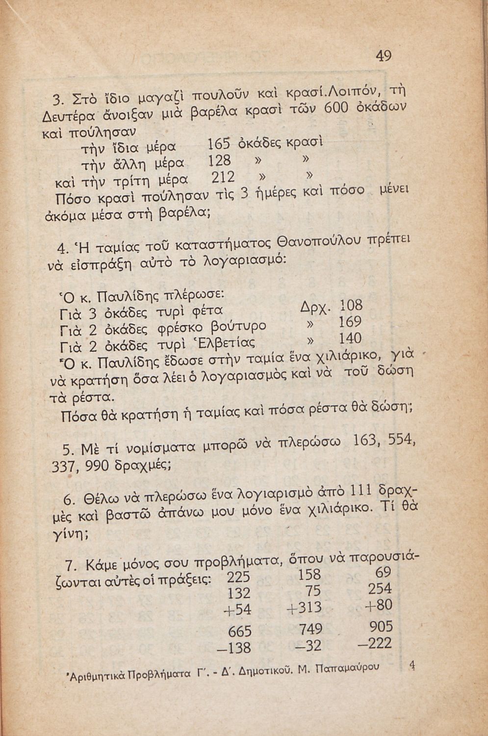 Προβλήματα Αριθμητικής του Δημοτικού Σχολείου τάξη Γ ́ και Δ ́