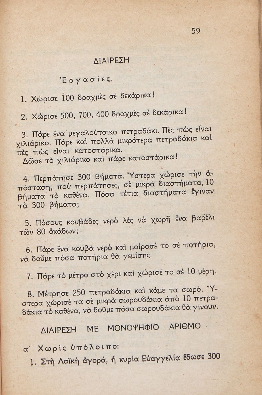 Παιδαγωγικό βοήθημα Αριθμητικής ΣΤ΄ Δημοτικού, γραμμένο σύμφωνα με τις επιταγές του Σχολείου Εργασίας, που περιλαμβάνει 170 μαθήματα, ένα για κάθε μέρα του σχολικού έτους.
