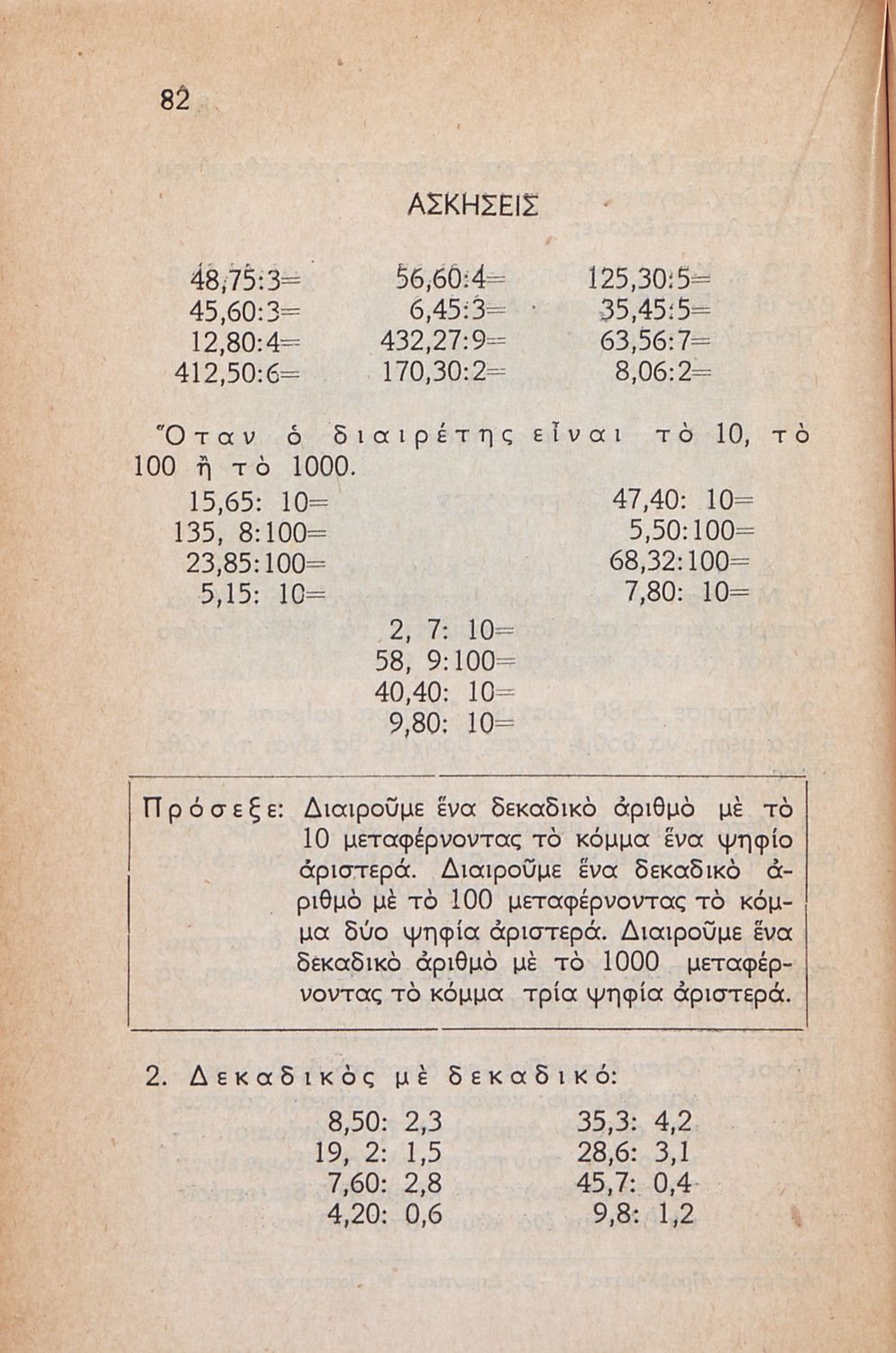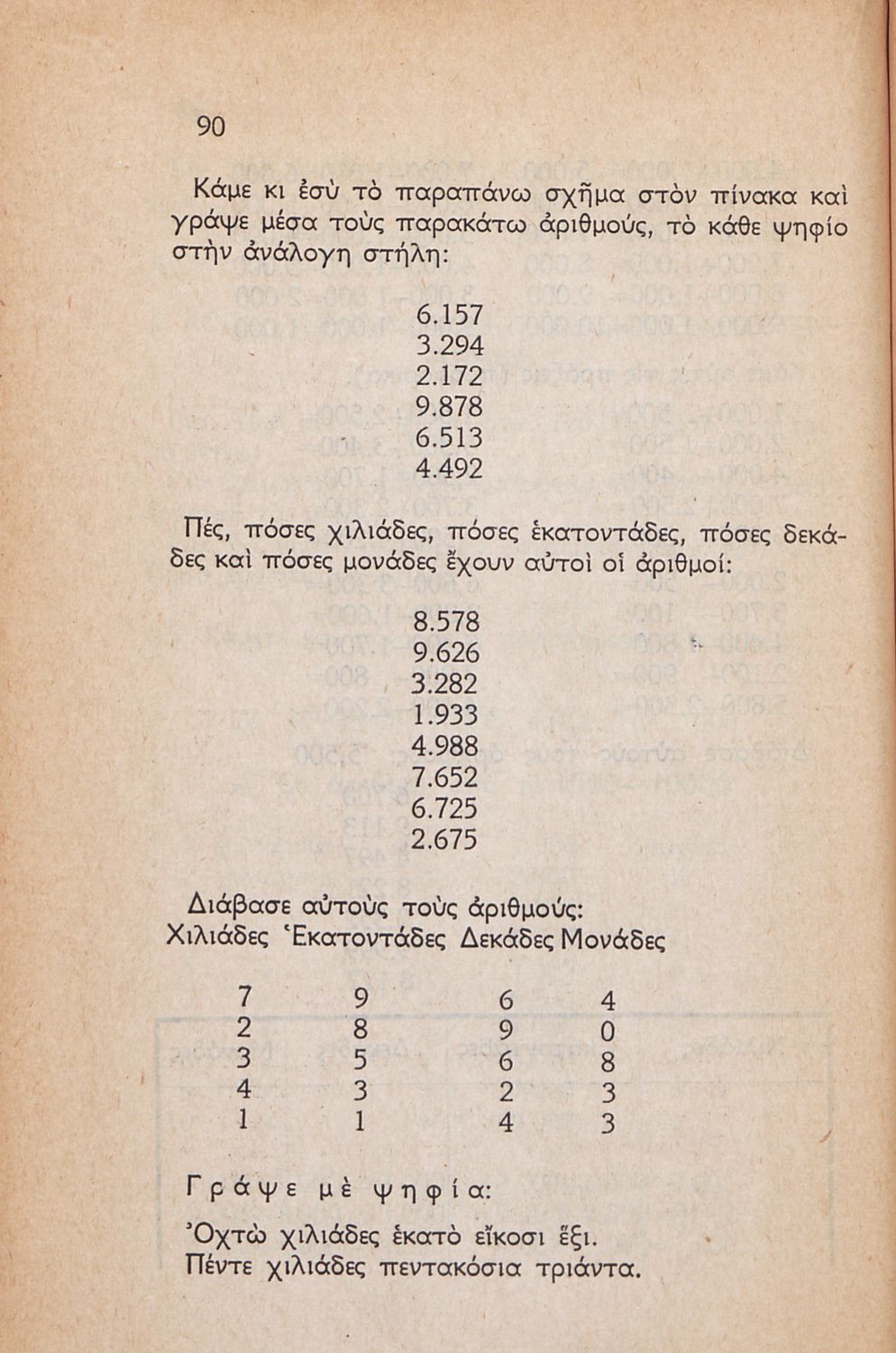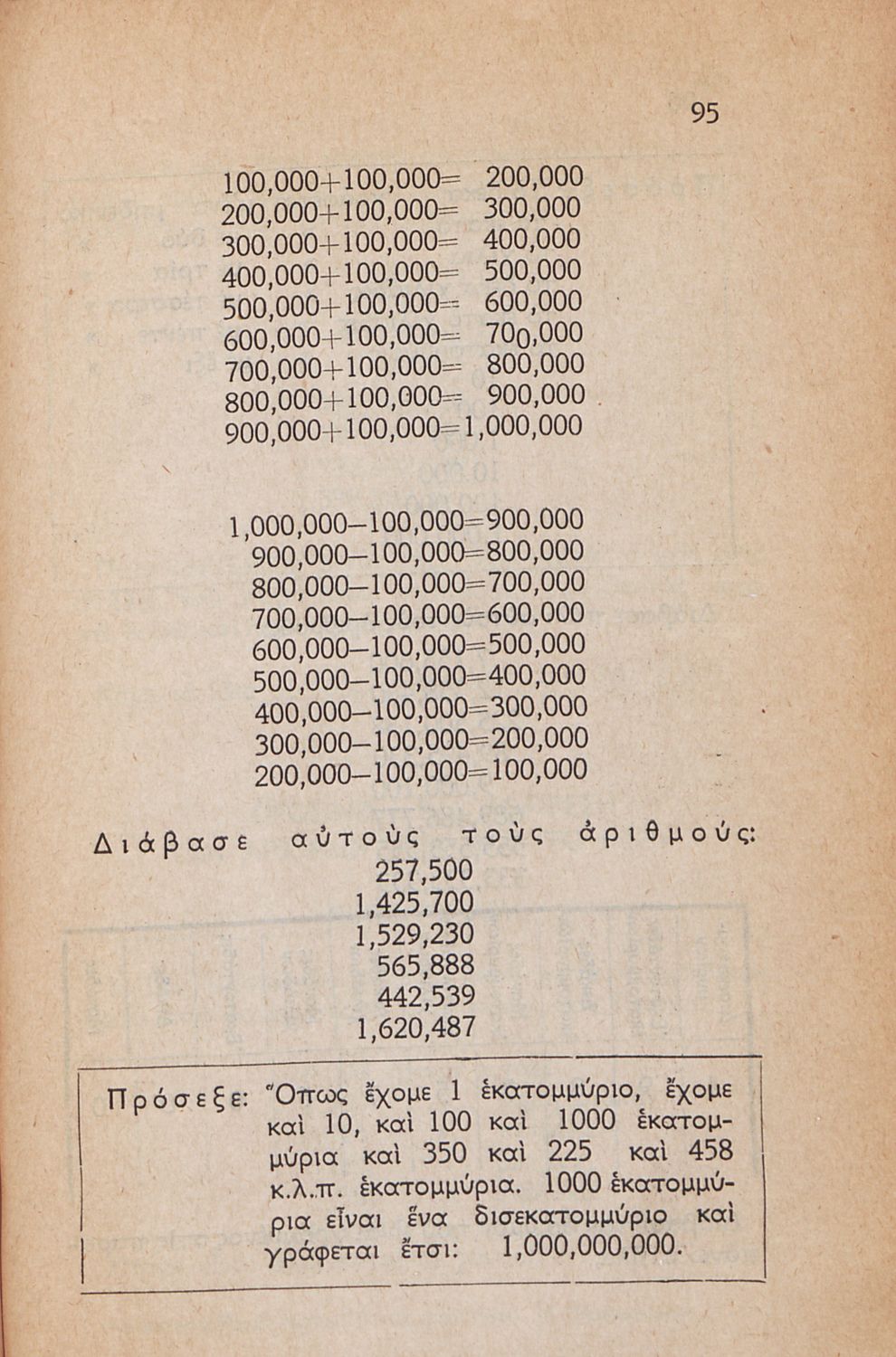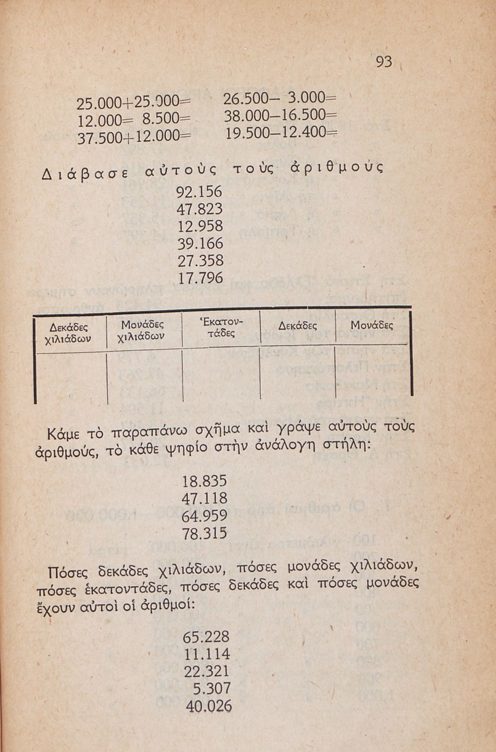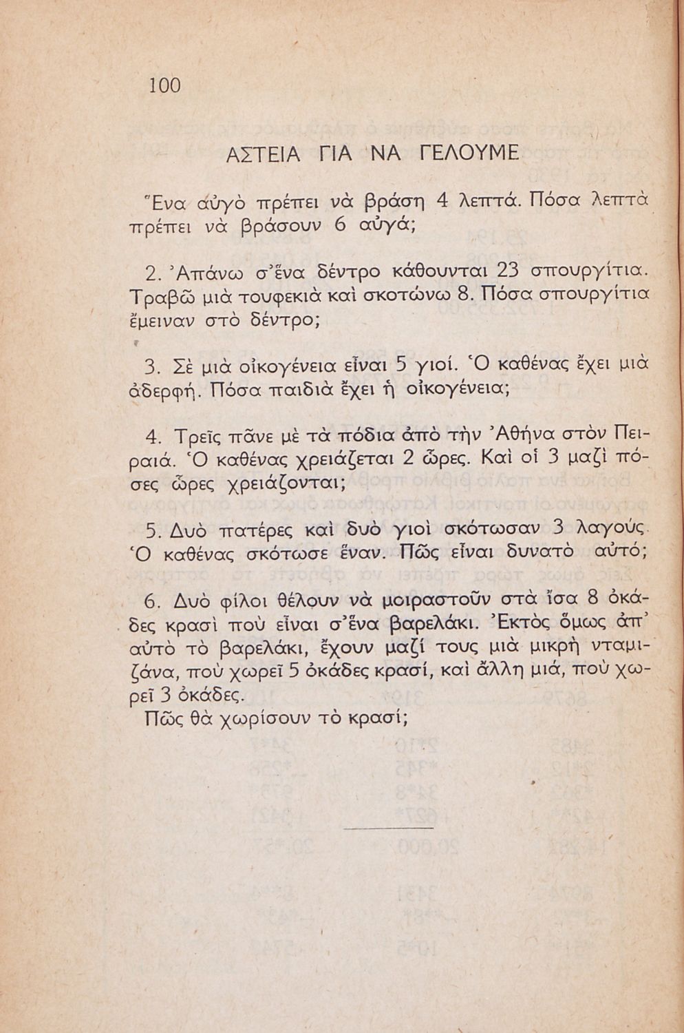 Μαθητικό βοήθημα Αριθμητικής για τους μαθητές των Γ΄ και Δ΄ τάξεων του Δημοτικού. Το βιβλίο περιέχει επαναληπτικές ασκήσεις με αριθμητικές ασκήσεις με τους αριθμούς από το 1-100.