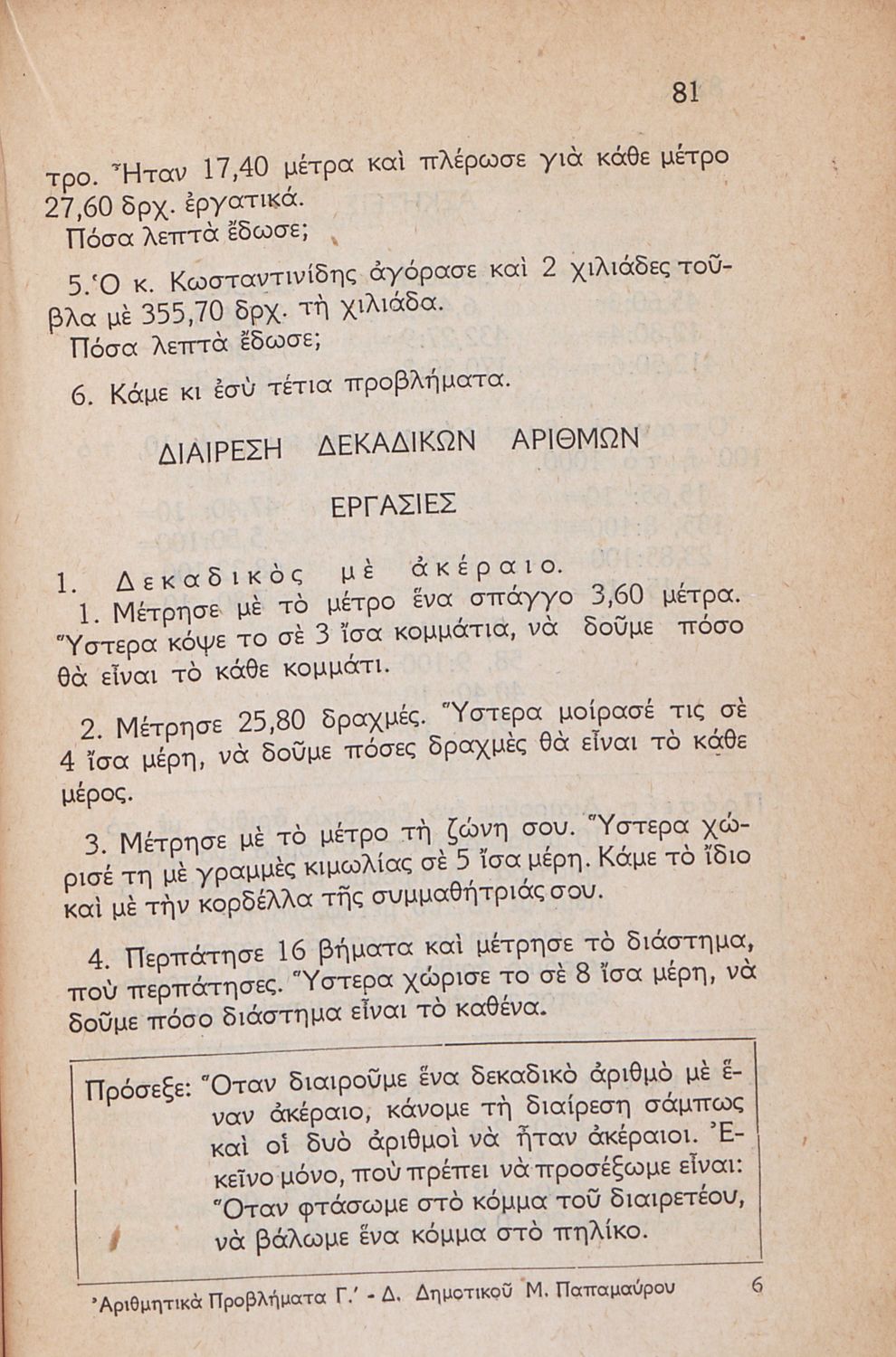 Παιδαγωγικό βοήθημα Αριθμητικής ΣΤ΄ Δημοτικού, γραμμένο σύμφωνα με τις επιταγές του Σχολείου Εργασίας, που περιλαμβάνει 170 μαθήματα, ένα για κάθε μέρα του σχολικού έτους.