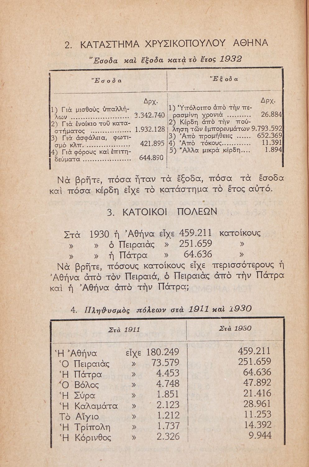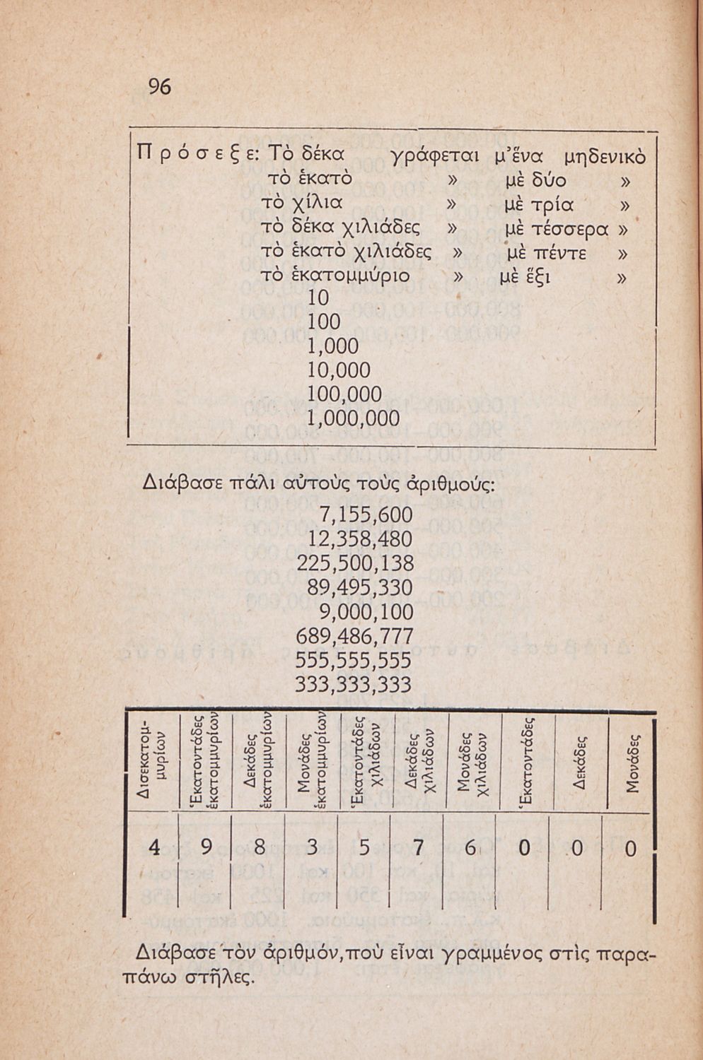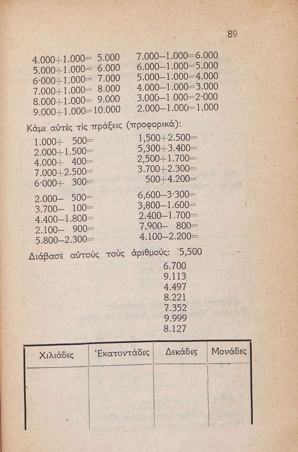 Το σύγγραμμα ήταν μαθητικό βοήθημα για το μαθήματα των Μαθηματικών στο Δημοτικό. Περιέχει ασκήσεις και θεωρία για τις 4 βασικές πράξεις. Επίσης, έχει προβλήματα με τις βασικές πράξεις. Διαθέτει σχήματα για την