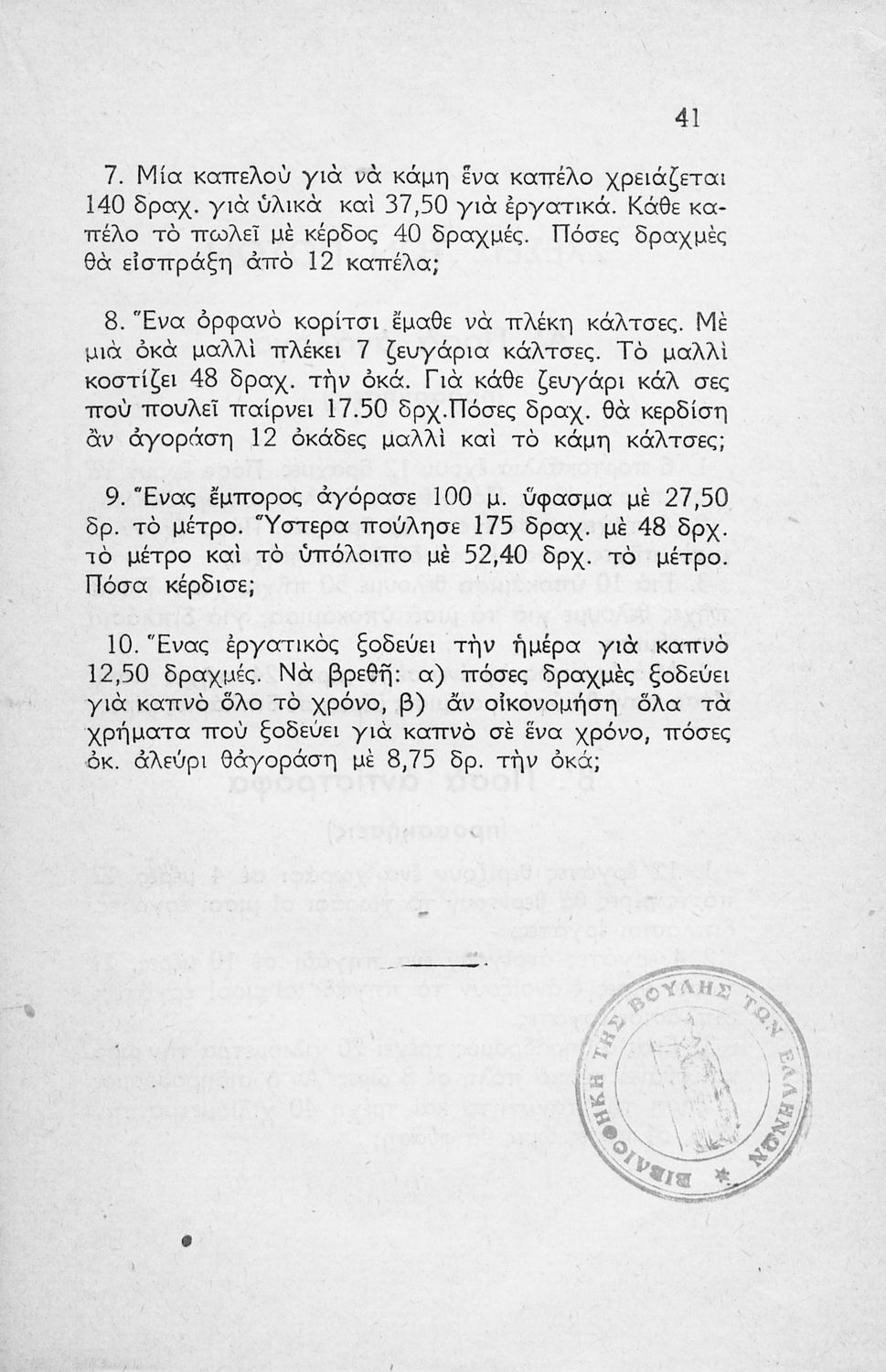 Μαθητικό βοήθημα Μαθηματικών ΣΤ΄ Δημοτικού που περιλαμβάνει αριθμητικά προβλήματα με έμφαση στη λογιστική εφαρμογή της αριθμητικής.