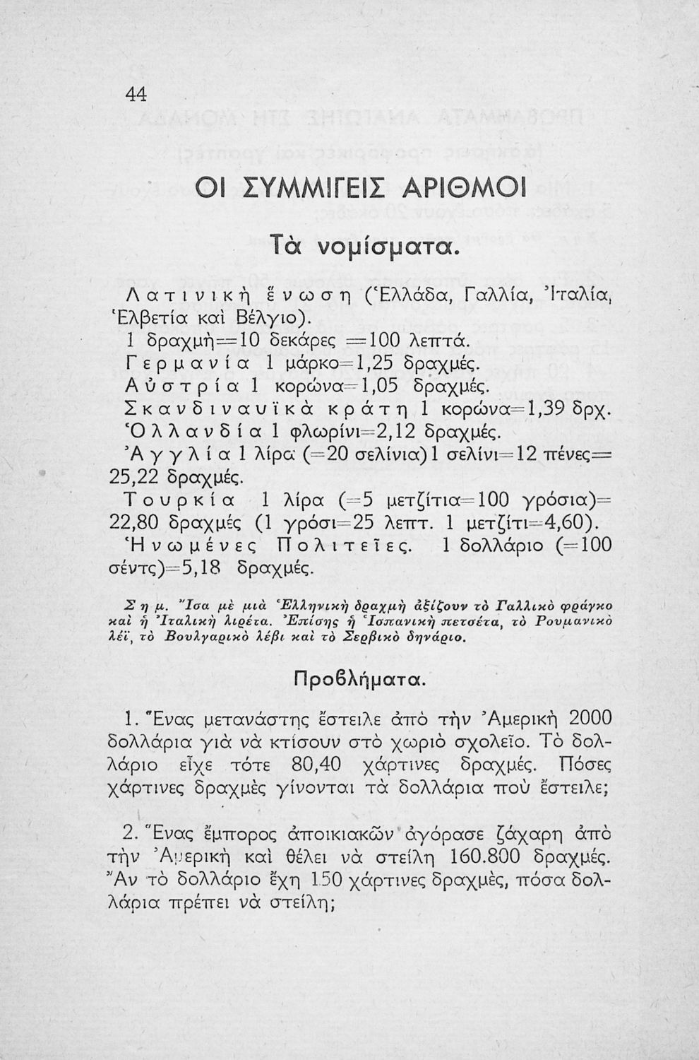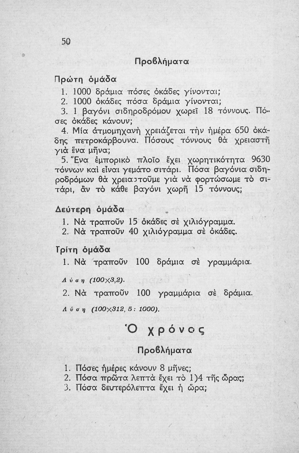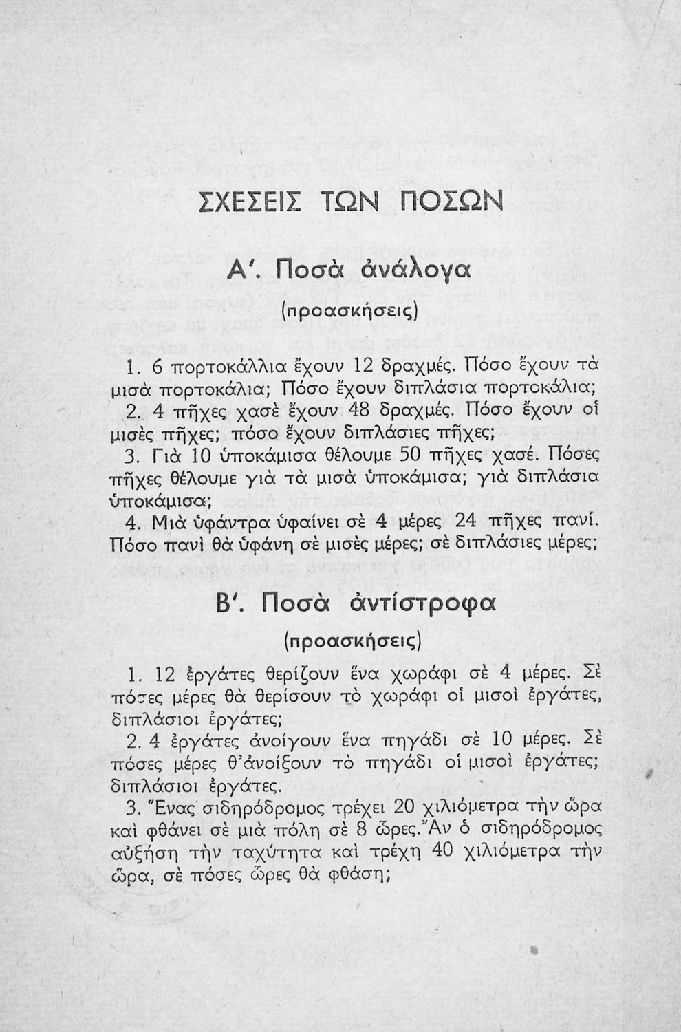 Αριθμητικά Προβλήματα του Δημοτικού Σχολείου Δ' Τάξεως