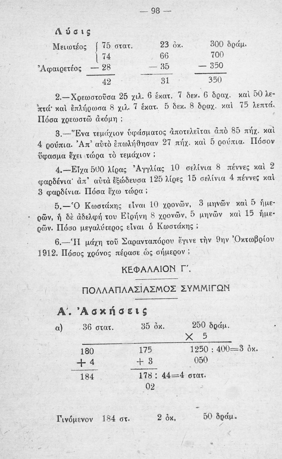 Ασκήσεις και Προβλήματα Αριθμητικής. Δια την Τετάρτην Τάξη των Δημοτικών Σχολείων