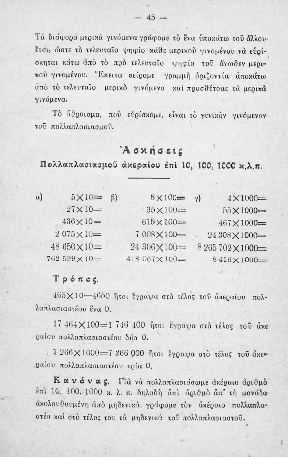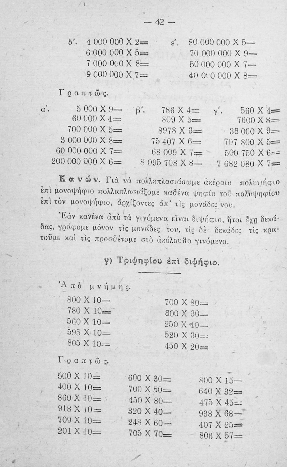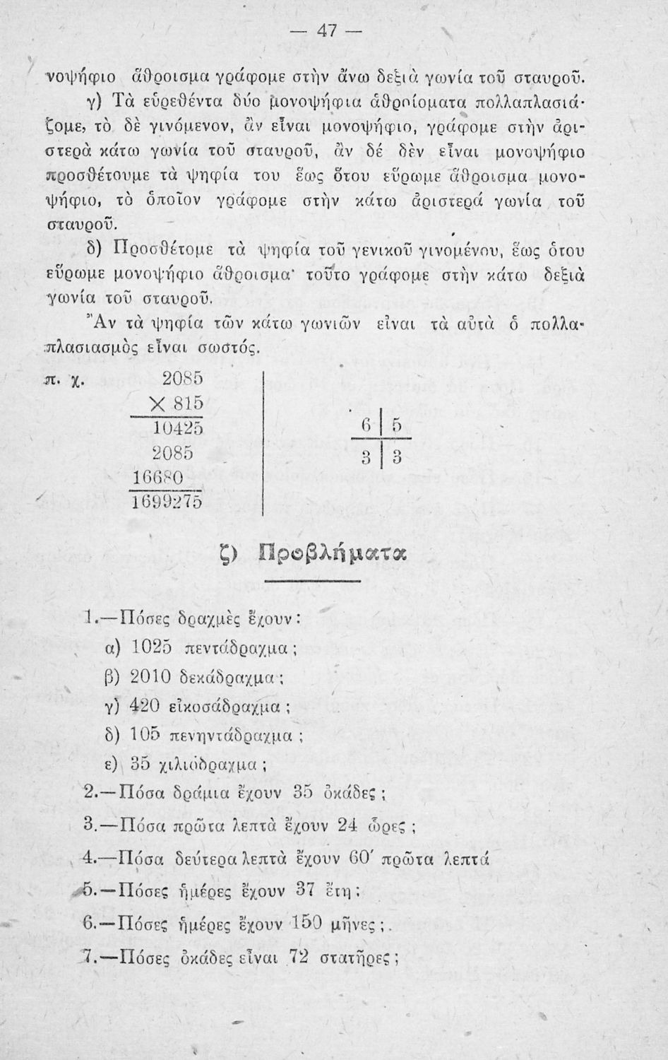 Το σύγγραμμα ήταν σχολικό εγχειρίδιο για το μάθημα των Μαθηματικών στο Δημοτικό. Περιέχει ασκήσεις και προβλήματα αριθμητικής.