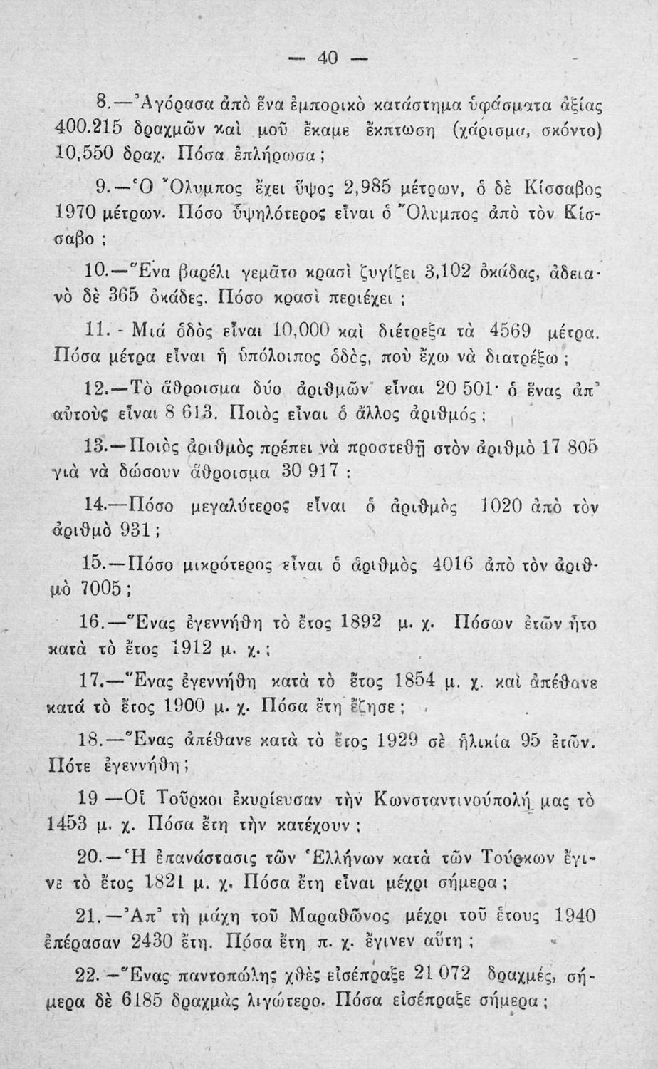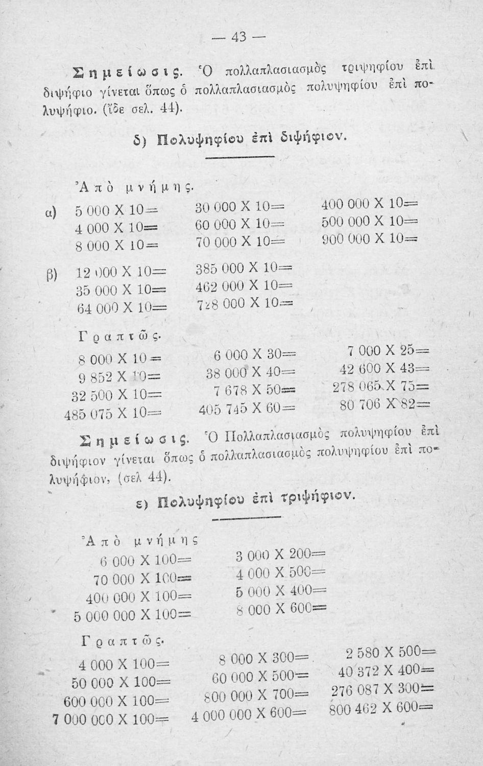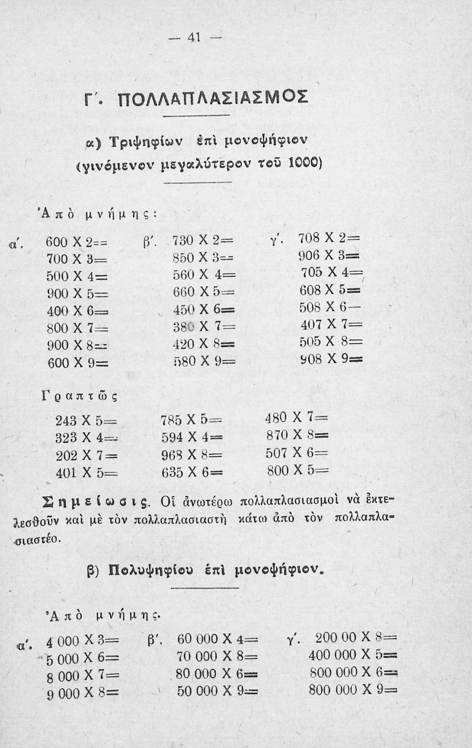 Το σύγγραμμα ήταν σχολικό εγχειρίδιο για το μάθημα των Μαθηματικών στο Δημοτικό. Περιέχει ασκήσεις και προβλήματα αριθμητικής.