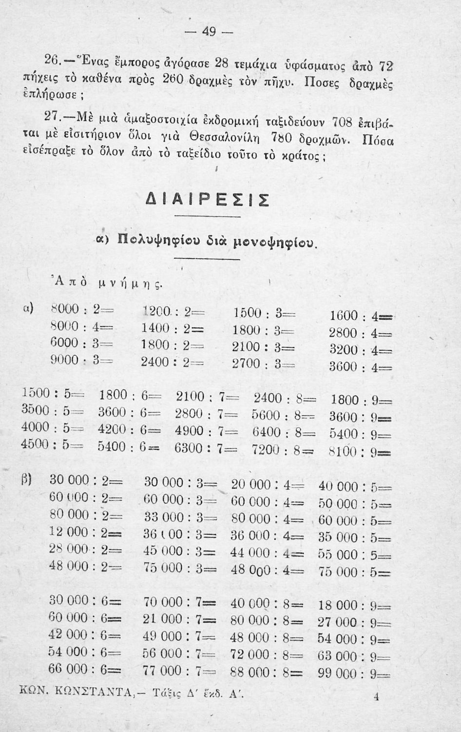 Τίτλος: Ασκήσεις και Προβλήματα Αριθμητικής. Δια την Τετάρτην Τάξη των Δημοτικών Σχολείων
