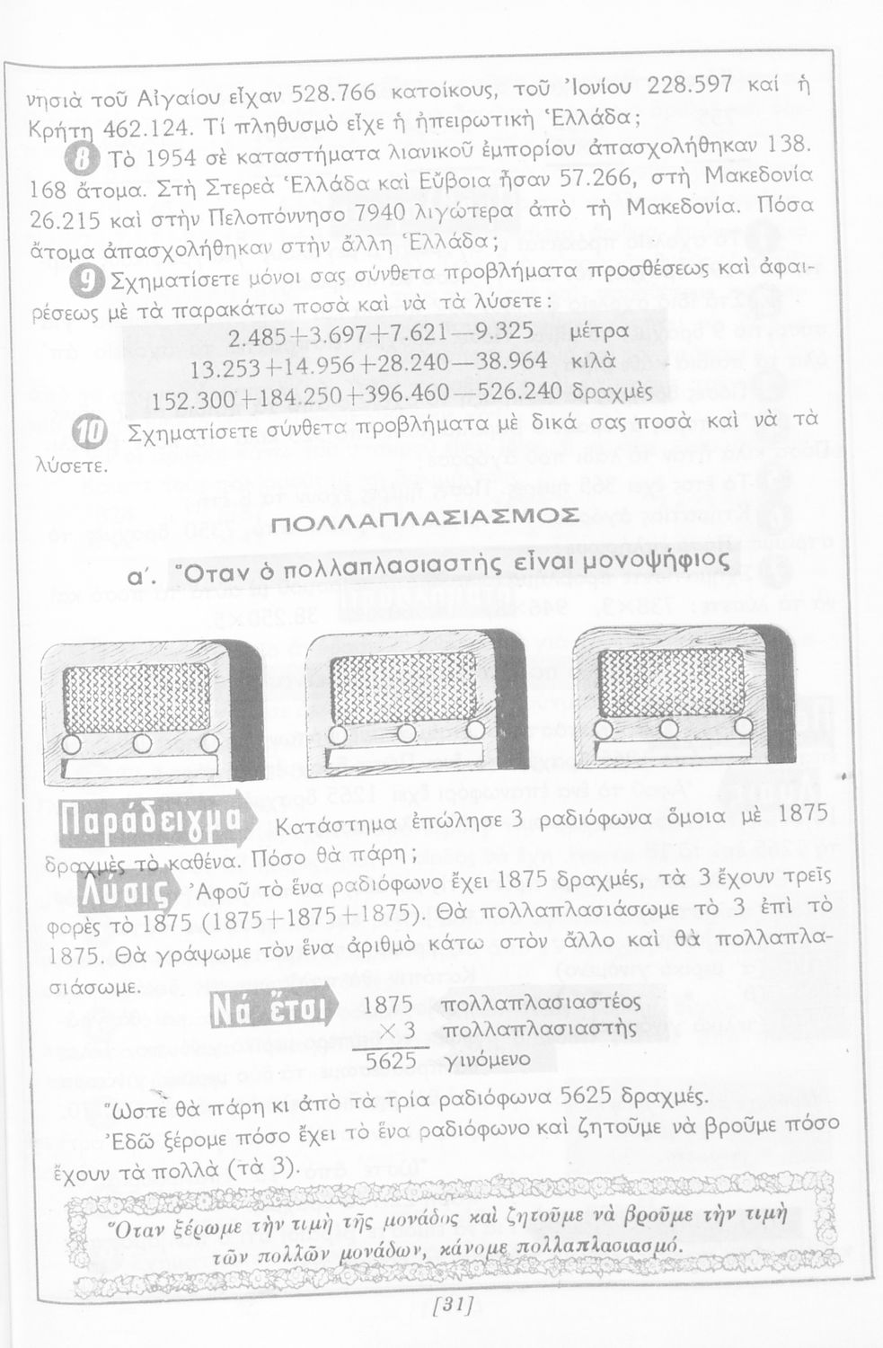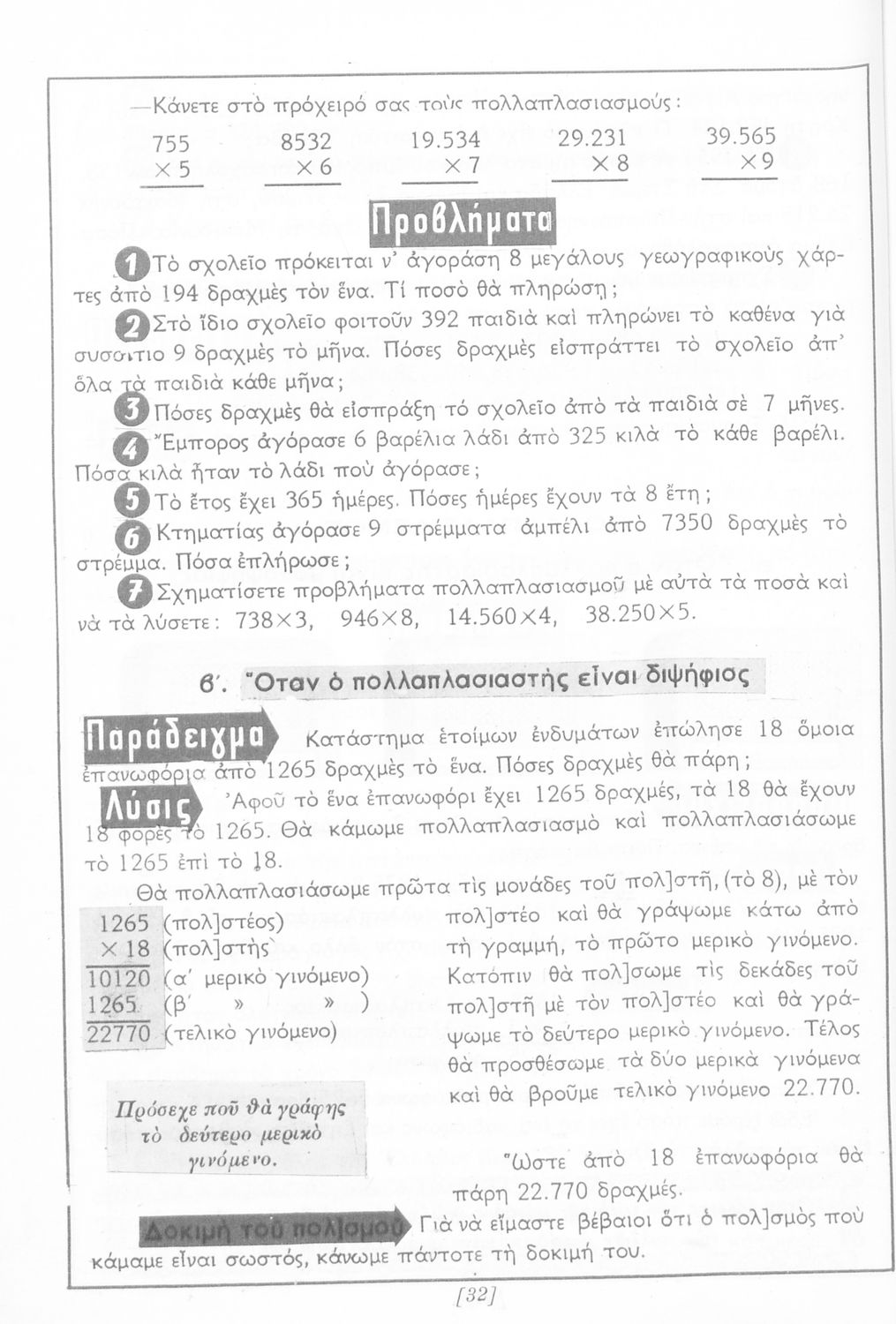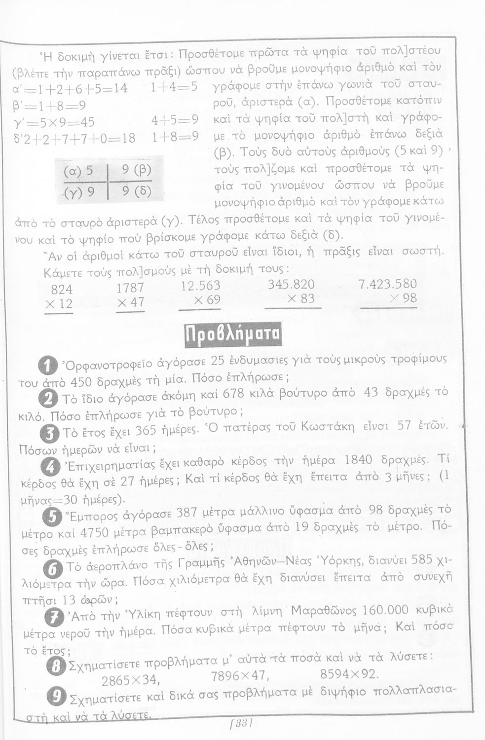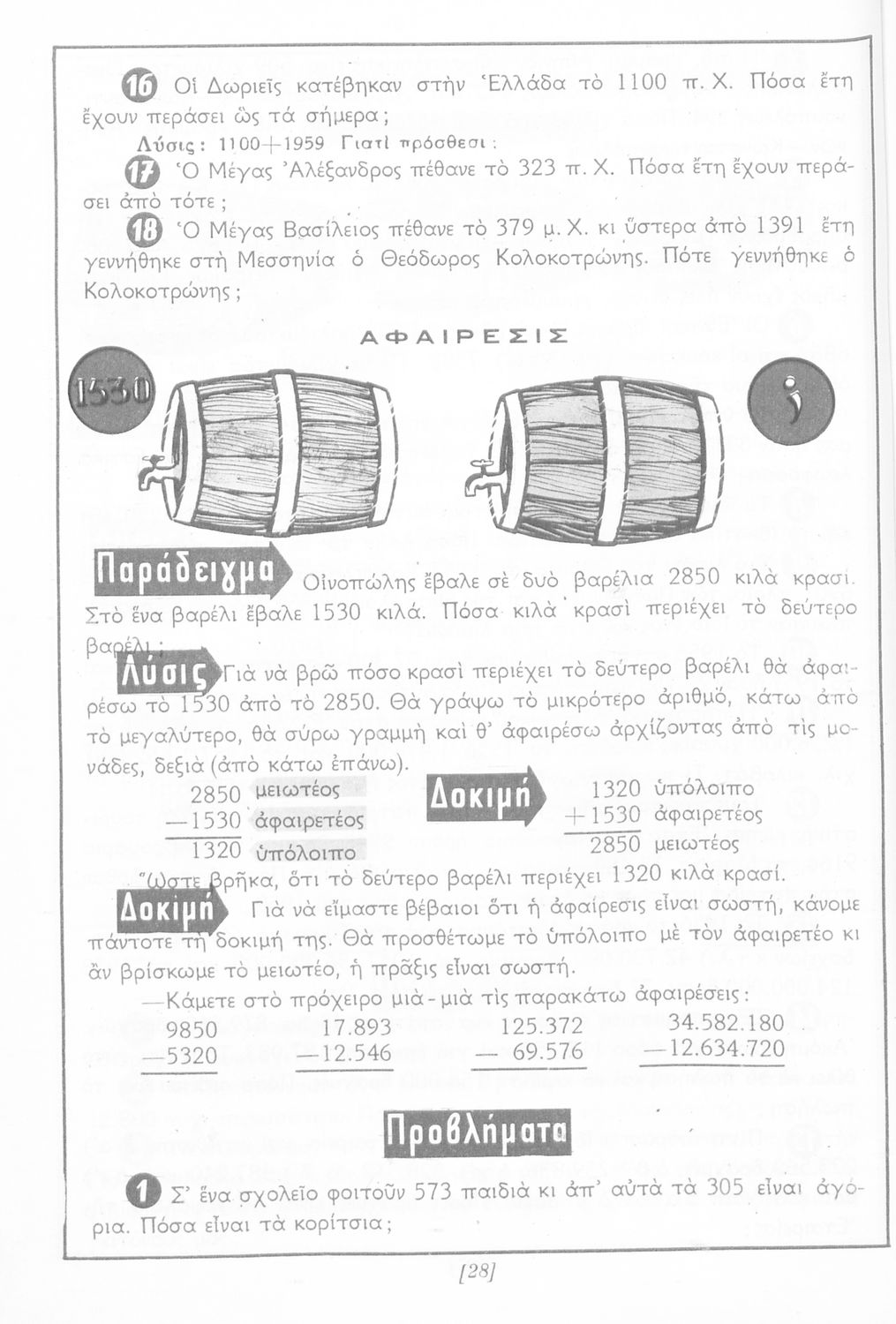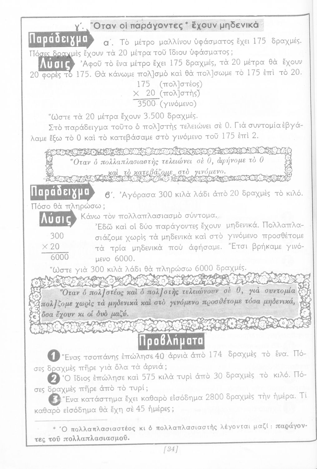 Σχολικό εγχειρίδιο Αριθμητικής Δ΄ Δημοτικού χωρισμένο σε πρακτικά προβλήματα και τις λύσεις τους που περιλαμβάνει και κάποια στοιχεία Γεωμετρίας.