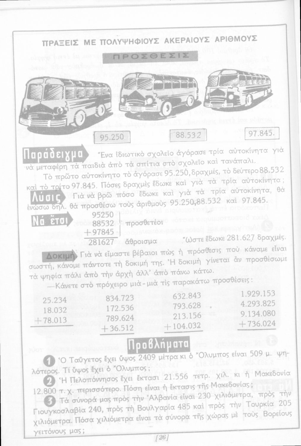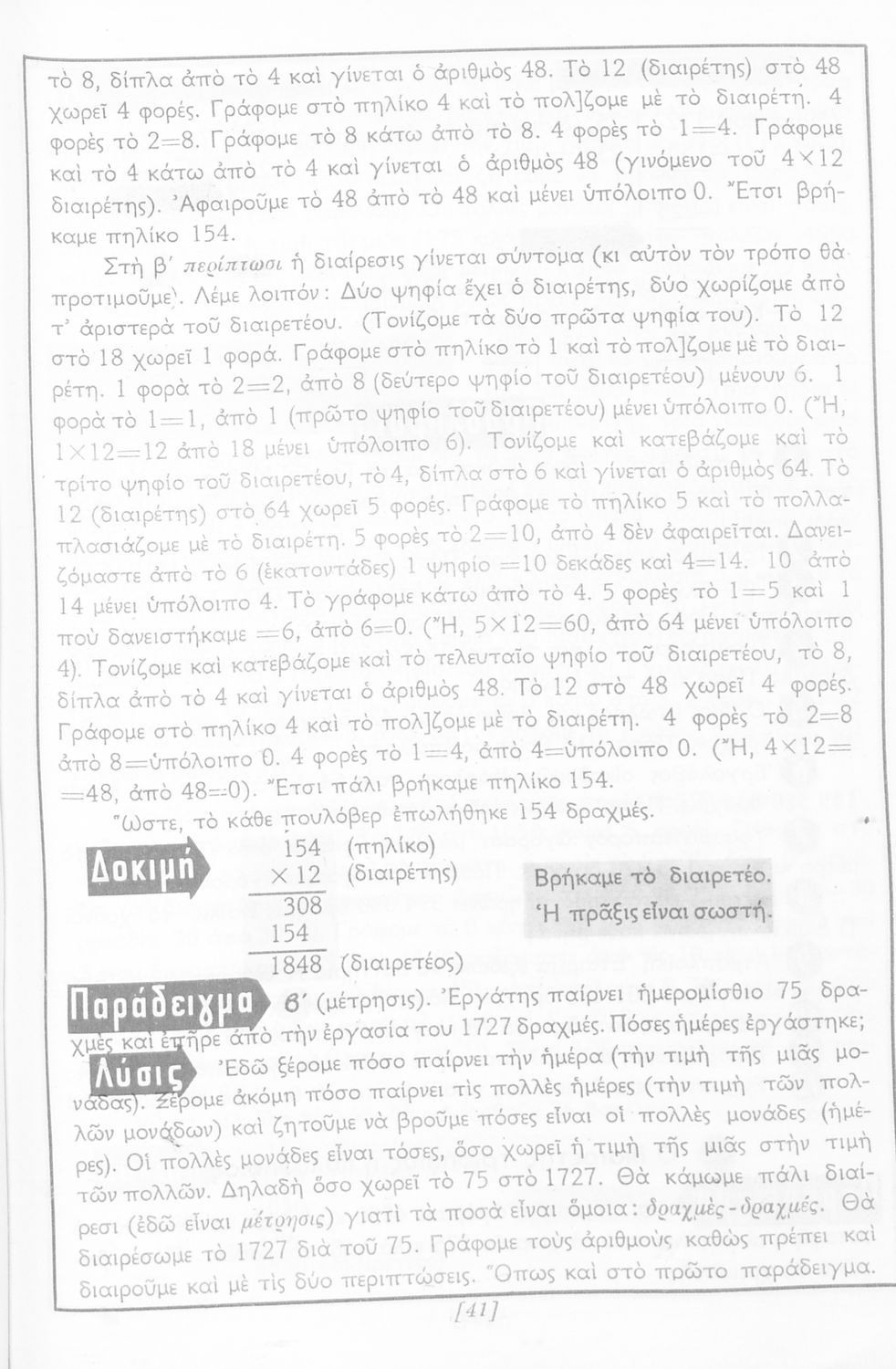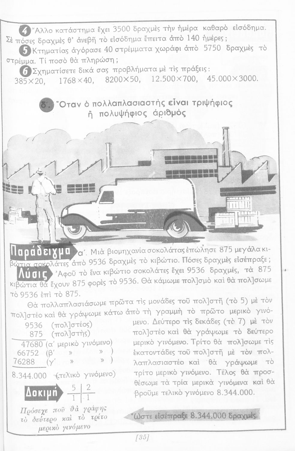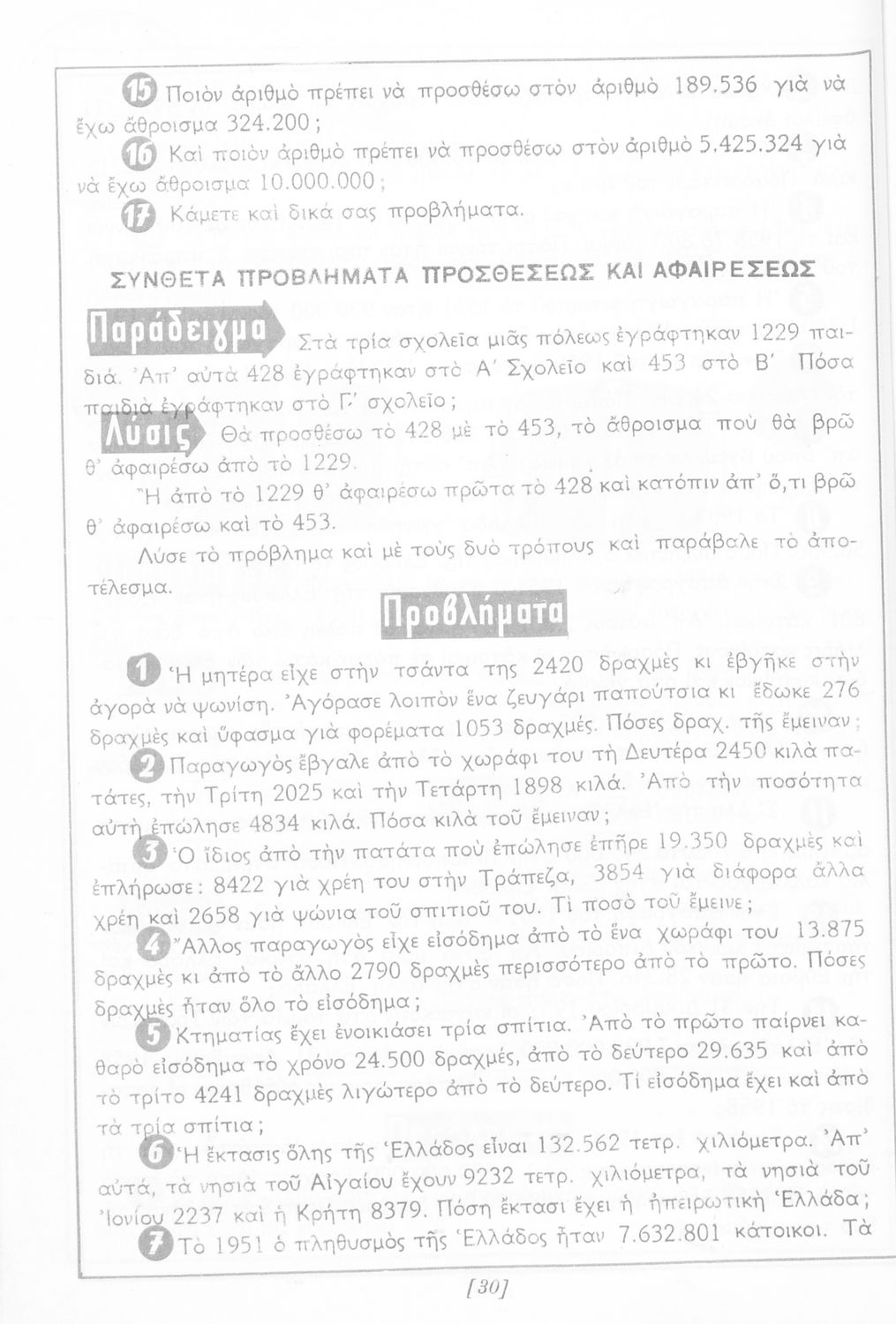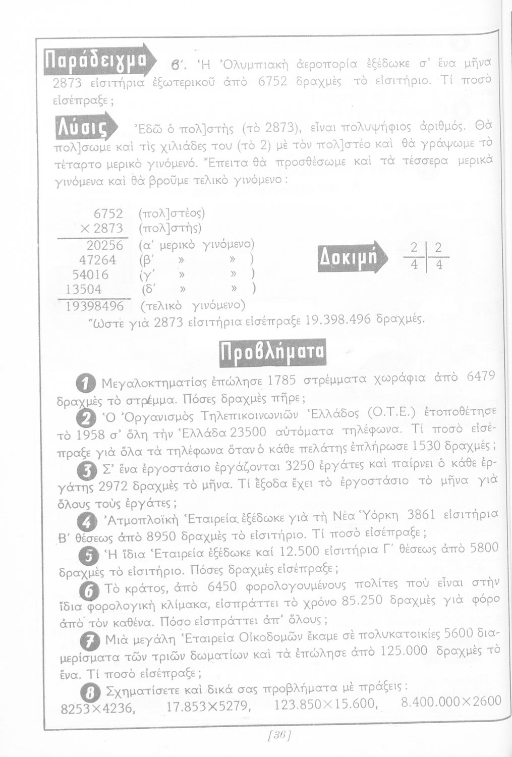 Σχολικό εγχειρίδιο Αριθμητικής Δ΄ Δημοτικού χωρισμένο σε πρακτικά προβλήματα και τις λύσεις τους που περιλαμβάνει και κάποια στοιχεία Γεωμετρίας.