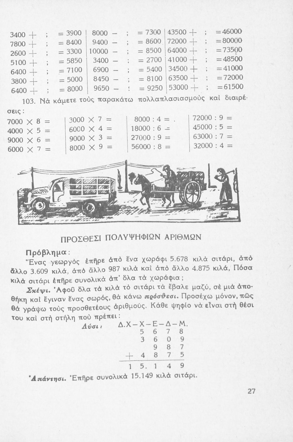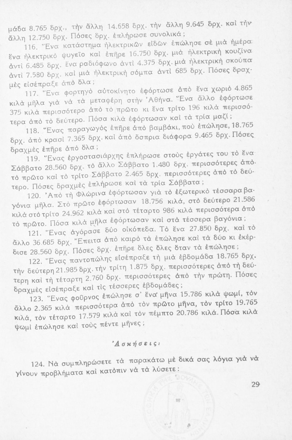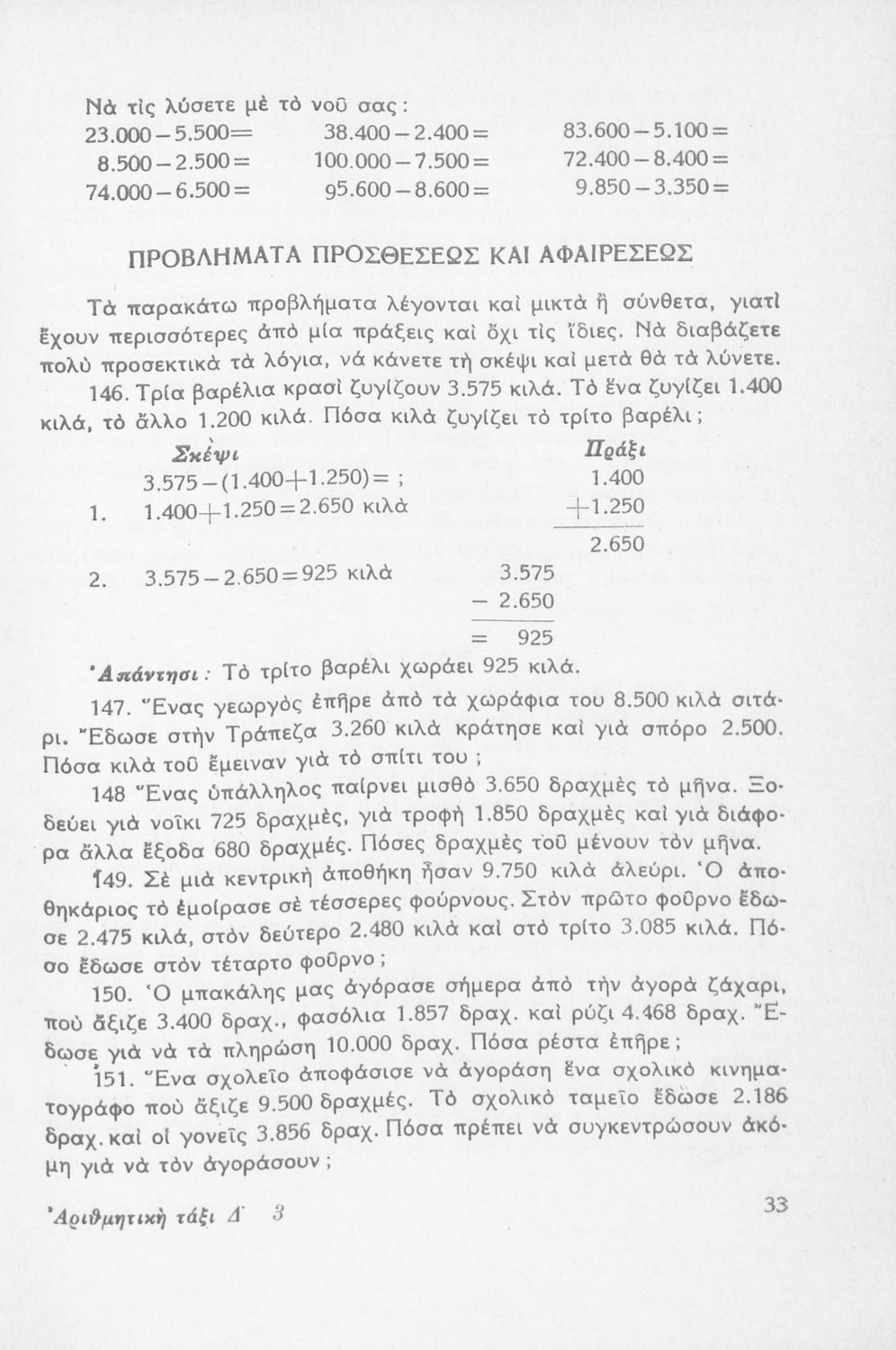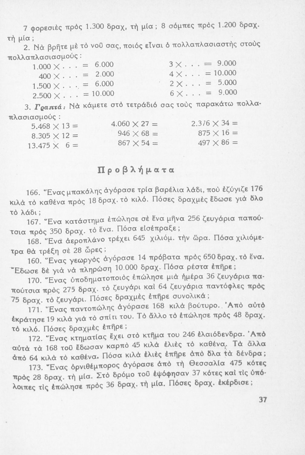 Βαθμίδα εκπαίδευσης: Πρωτοβάθμια Τάξη: Δ' Δημοτικού Μάθημα: Μαθηματικά Γλώσσα: Δημοτική Παρουσίαση περιεχομένου: Μαθητικό βοήθημα Μαθηματικών Δ' Δημοτικού που περιέχει εισαγωγή στις βασικές πράξεις αριθμητικής πολυψήφιων ακέραιων και δεκαδικών αριθμών και κλασμάτων, και στις μονάδες μέτρησης όγκου, βάρους και επιφάνειας. |