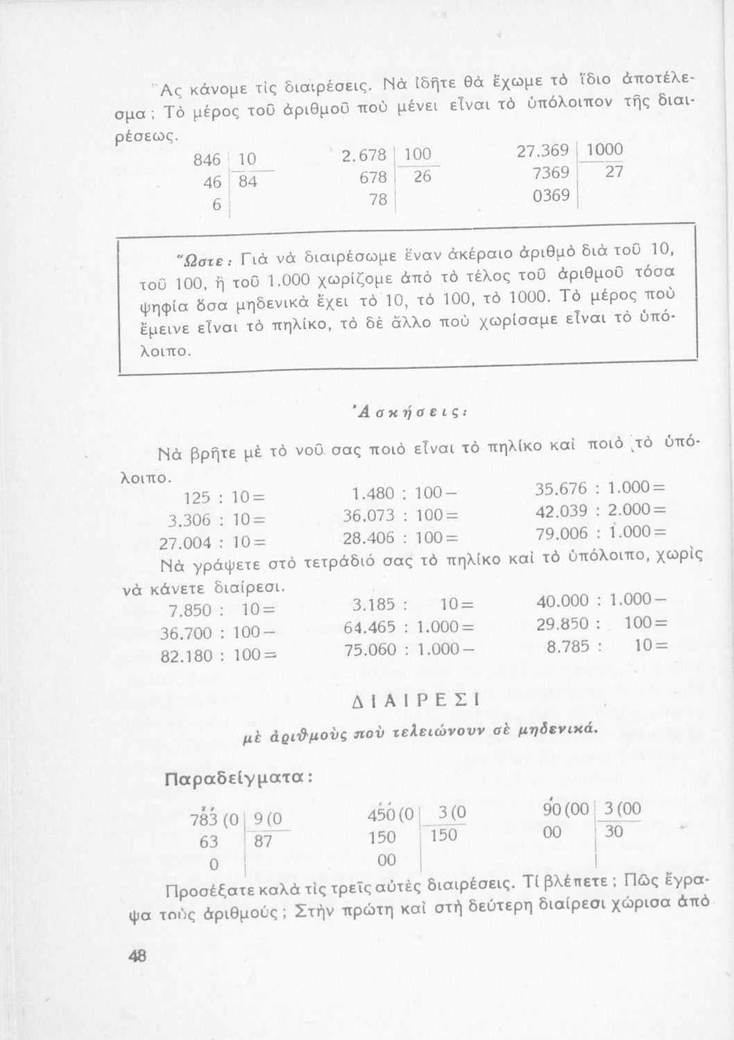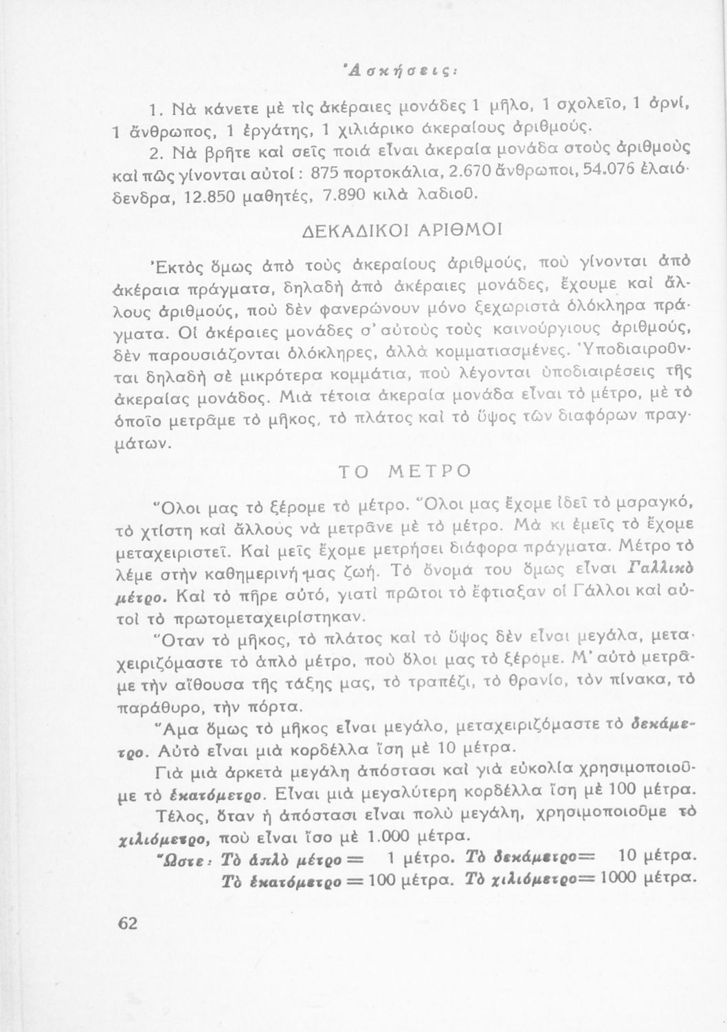 Μαθητικό βοήθημα Μαθηματικών Δ' Δημοτικού που περιέχει εισαγωγή στις βασικές πράξεις αριθμητικής πολυψήφιων ακέραιων και δεκαδικών αριθμών και κλασμάτων, και στις μονάδες μέτρησης όγκου, βάρους και επιφάνειας.