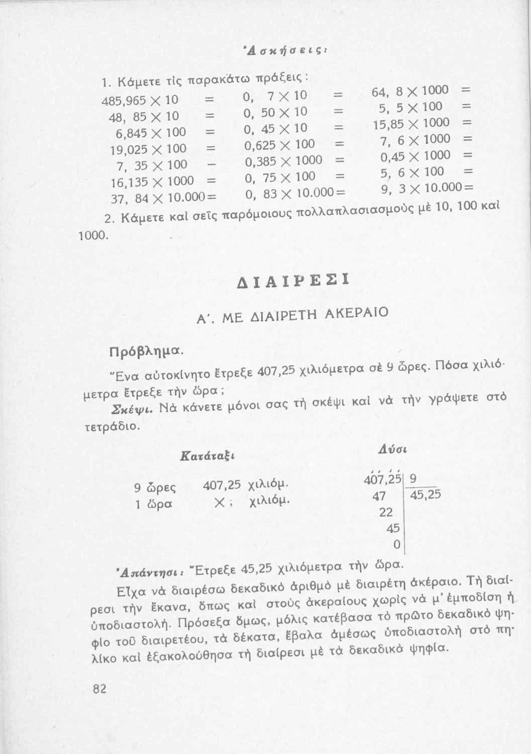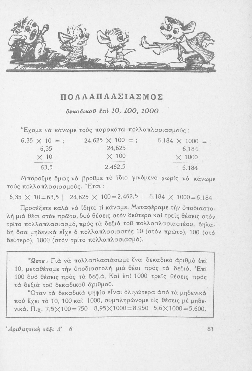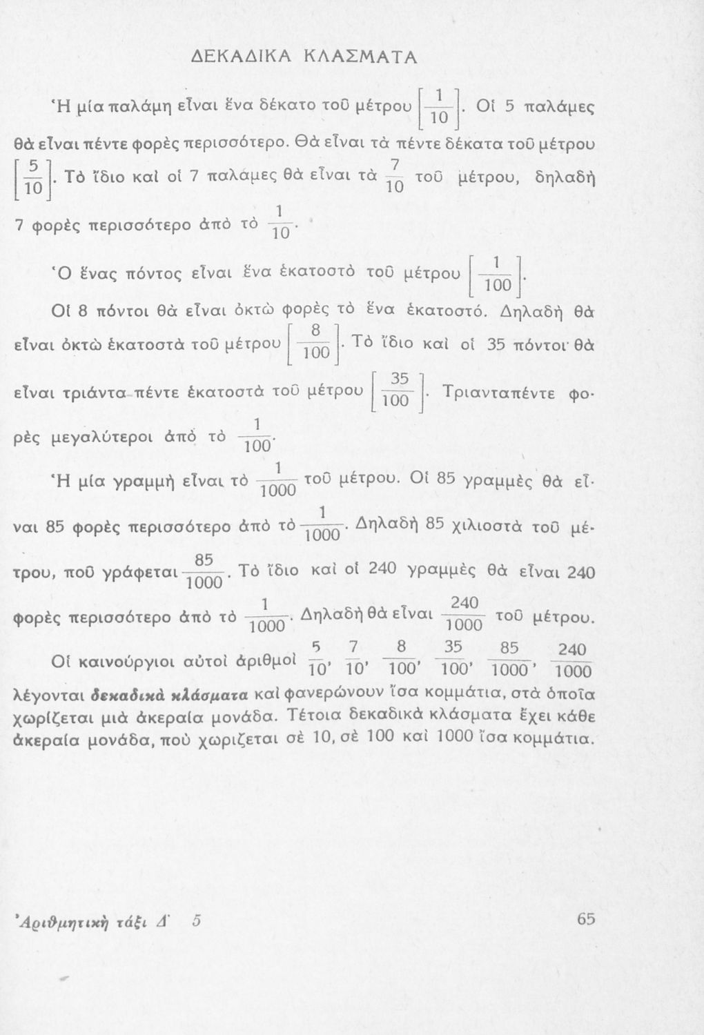 Μαθητικό βοήθημα Μαθηματικών Δ' Δημοτικού που περιέχει εισαγωγή στις βασικές πράξεις αριθμητικής πολυψήφιων ακέραιων και δεκαδικών αριθμών και κλασμάτων, και στις μονάδες μέτρησης όγκου, βάρους και επιφάνειας.