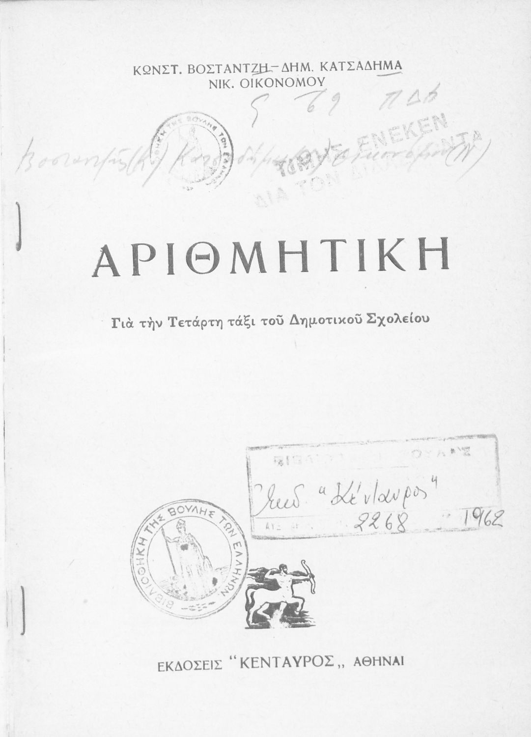 Συγγραφέας: Κωνσταντίνος Βοσταντζής, Δημ. Κατσαδήμας, Νικόλαος Οικονόμου