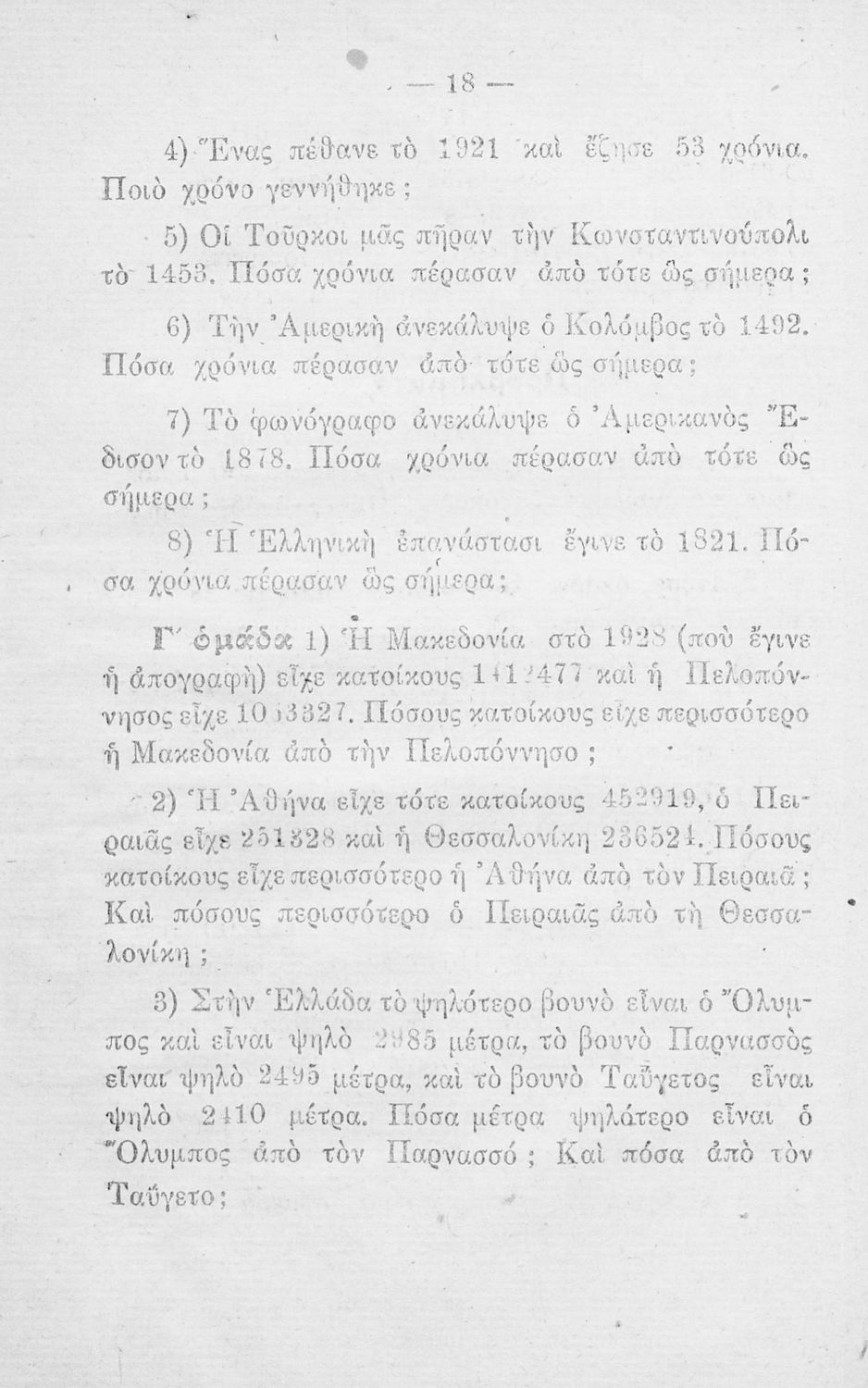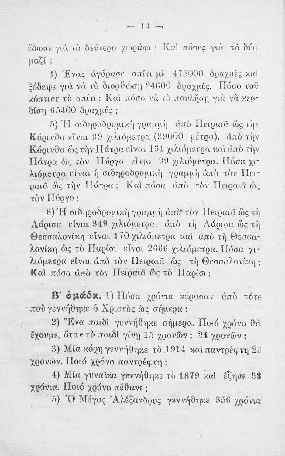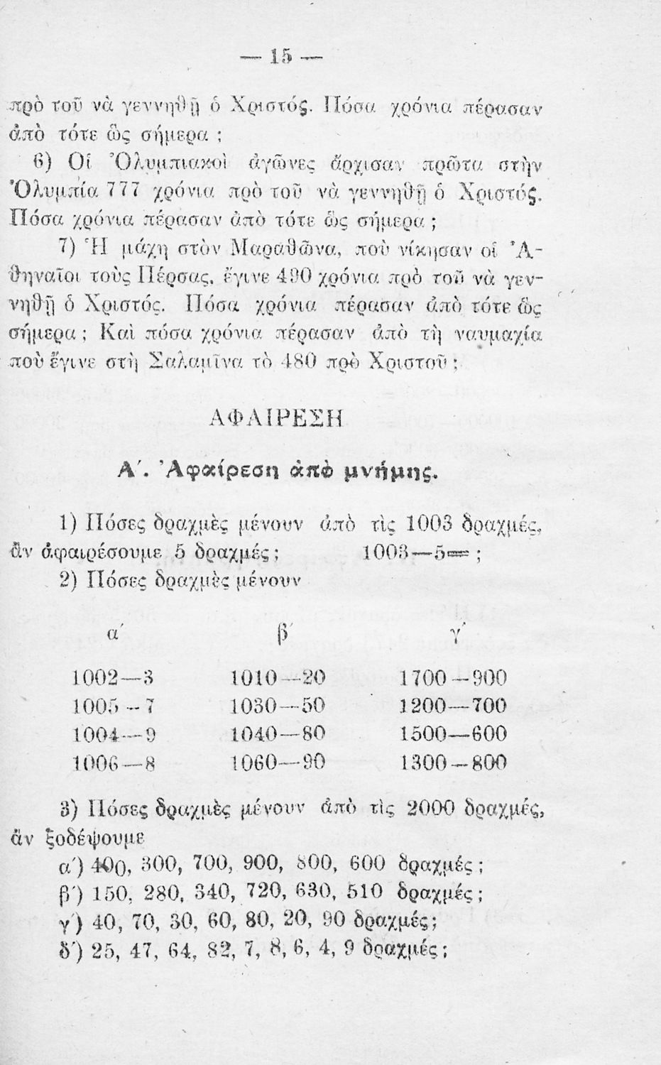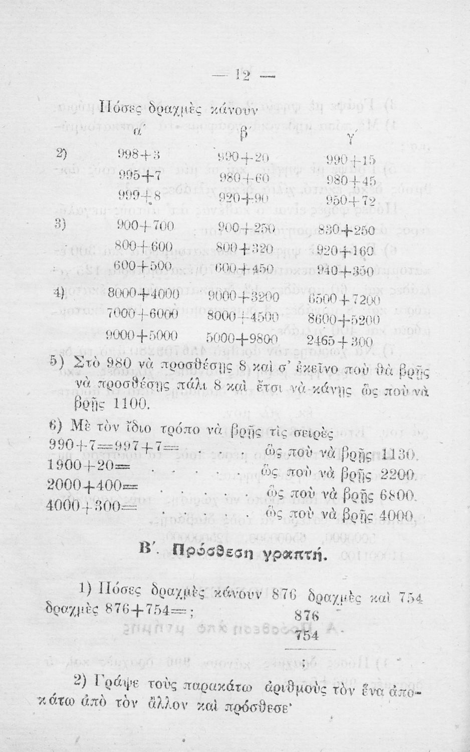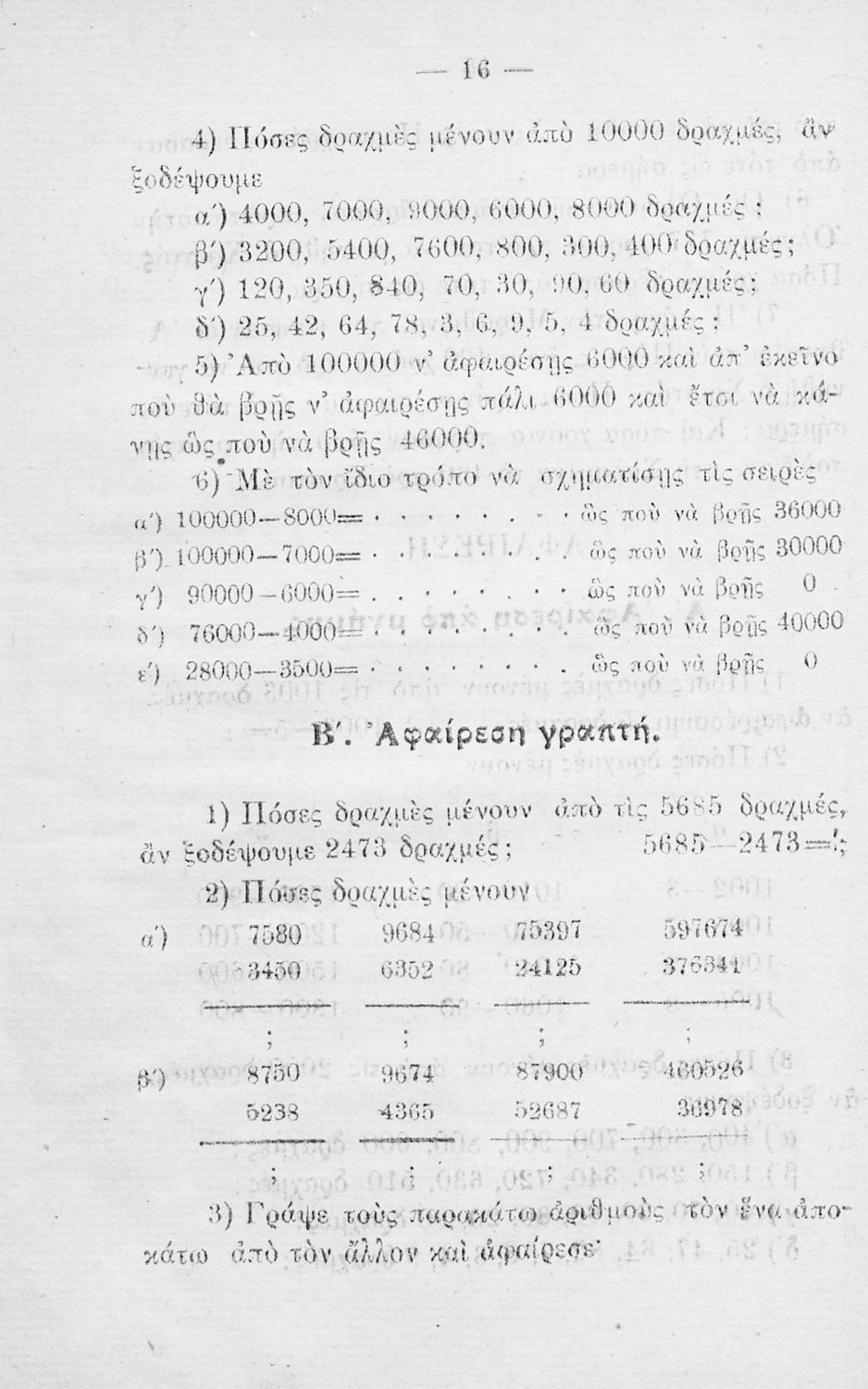 Παρουσίαση περιεχομένου: Το σύγγραμμα ήταν σχολικό εγχειρίδιο για το μάθημα των Μαθηματικών στο Δημοτικό. Περιέχει ασκήσεις και προβλήματα αριθμητικής.