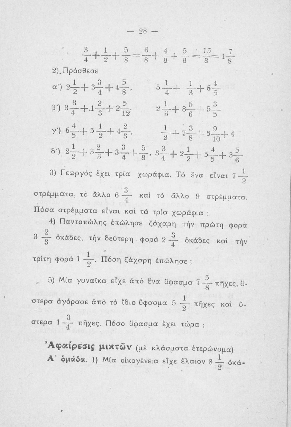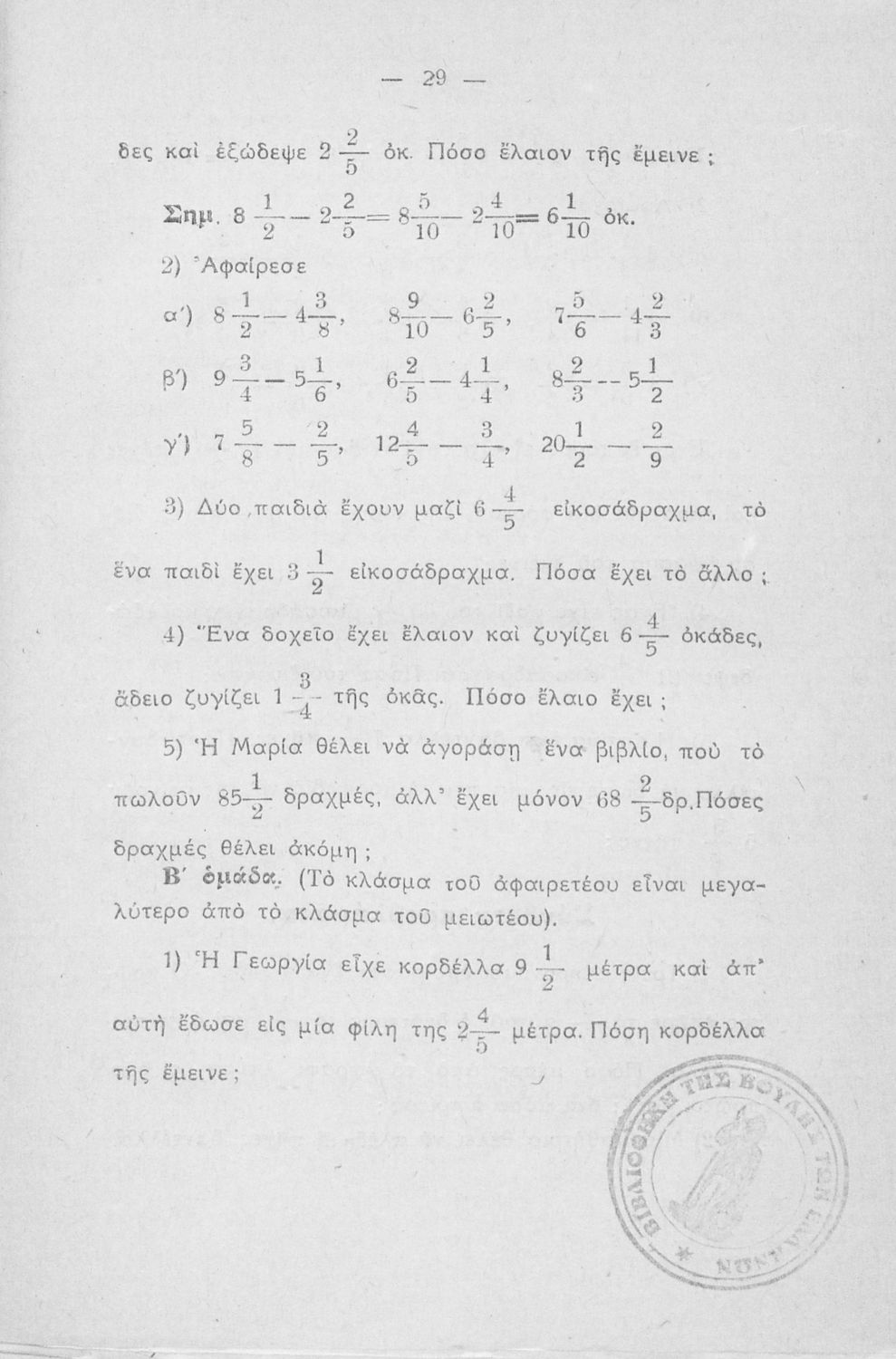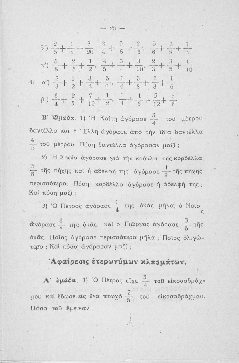 Σχολικό εγχειρίδιο με προβλήματα Αριθμητικής για την Ε΄ Δημοτικού χωρισμένο με βάση τις αριθμητικές πράξεις και τα κλάσματα.