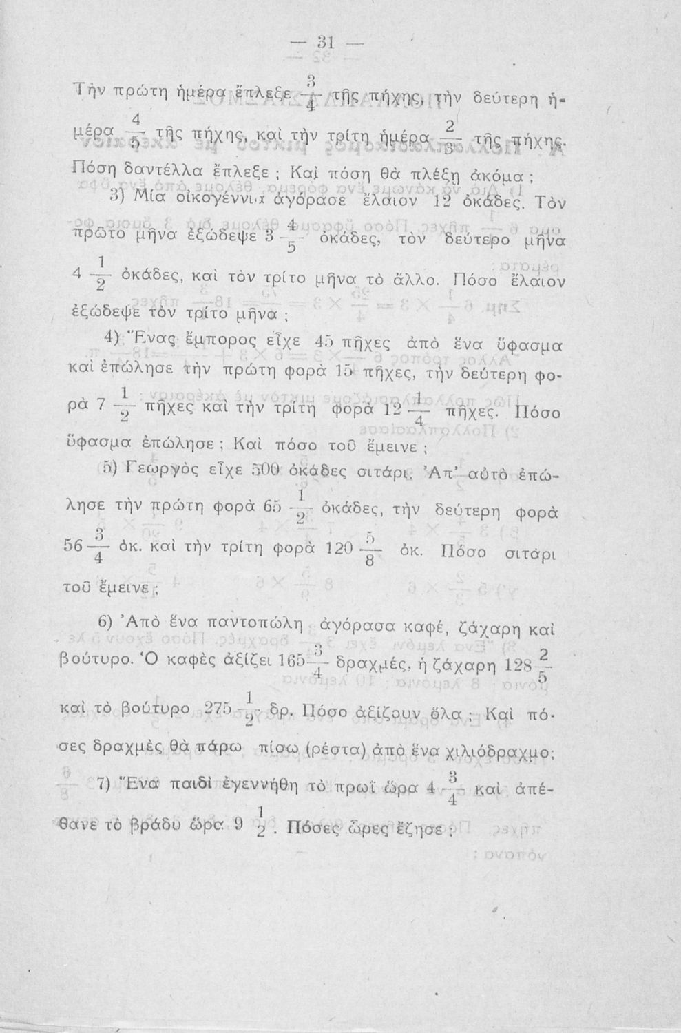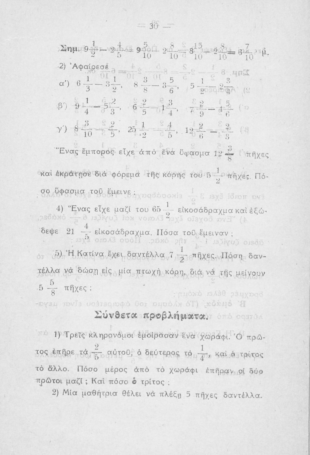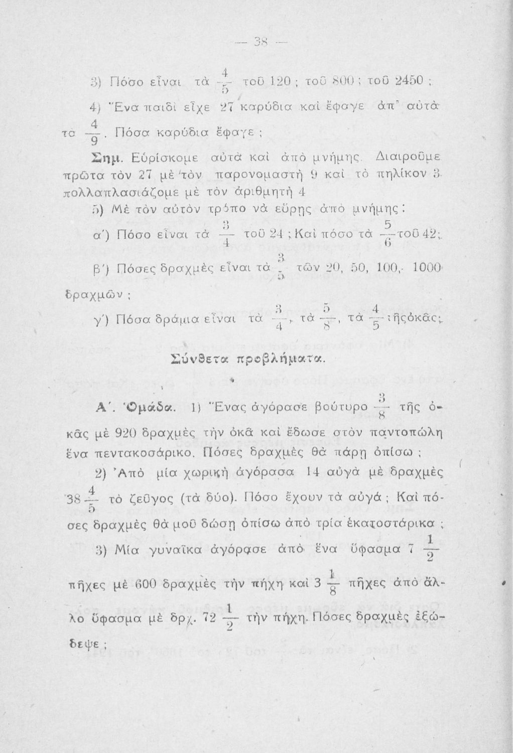 Σχολικό εγχειρίδιο με προβλήματα Αριθμητικής για την Ε΄ Δημοτικού χωρισμένο με βάση τις αριθμητικές πράξεις και τα κλάσματα.