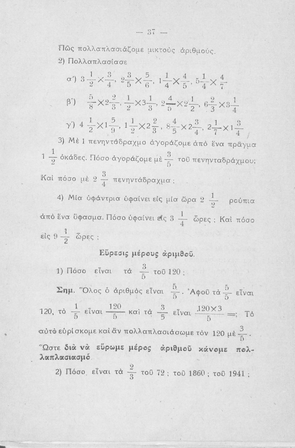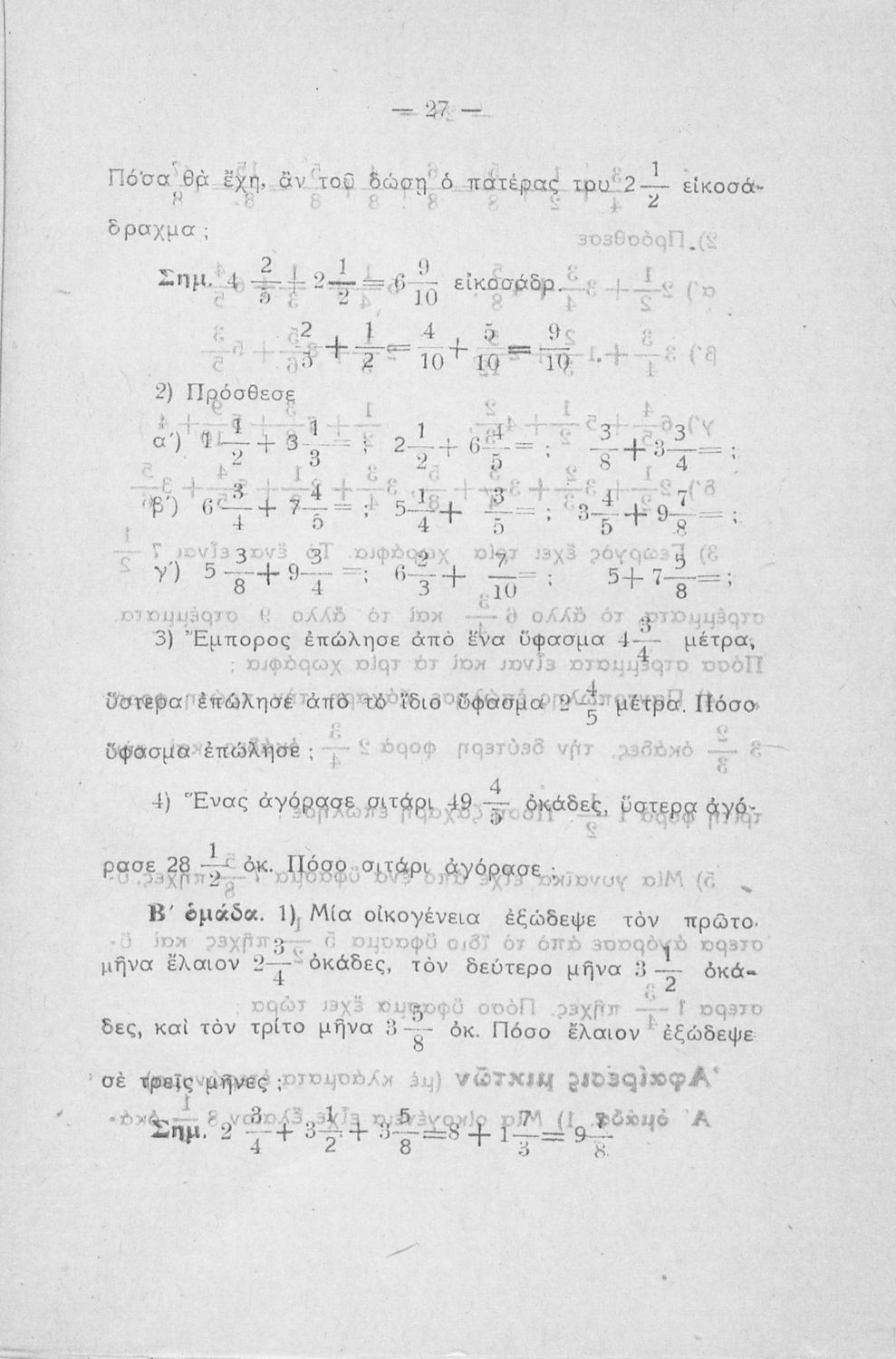 Το σύγγραμμα ήταν μαθητικό βοήθημα για τα Μαθηματικά του Δημοτικού. Περιλαμβάνει ασκήσεις και προβλήματα για την εξάσκηση των μαθητών στις μαθηματικές έννοιες. Αναφέρεται στις 4 βασικές πράξεις περιλαμβάνοντας