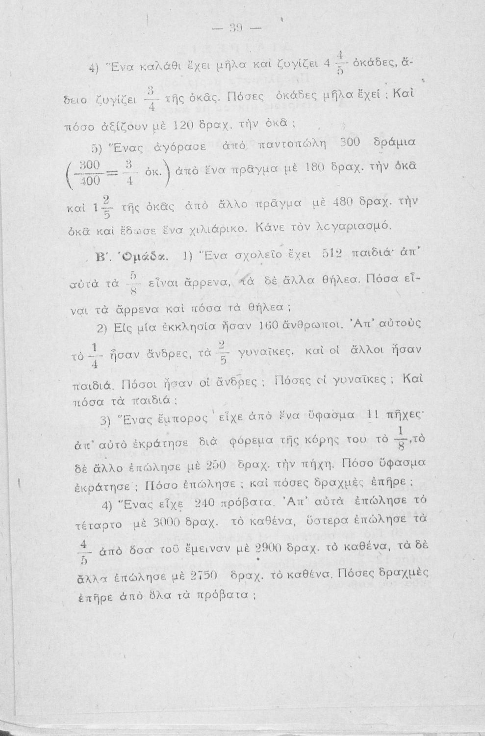 Σχολικό εγχειρίδιο με προβλήματα Αριθμητικής για την Ε΄ Δημοτικού χωρισμένο με βάση τις αριθμητικές πράξεις και τα κλάσματα.