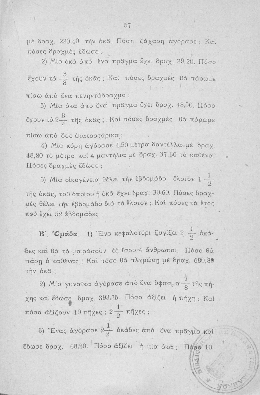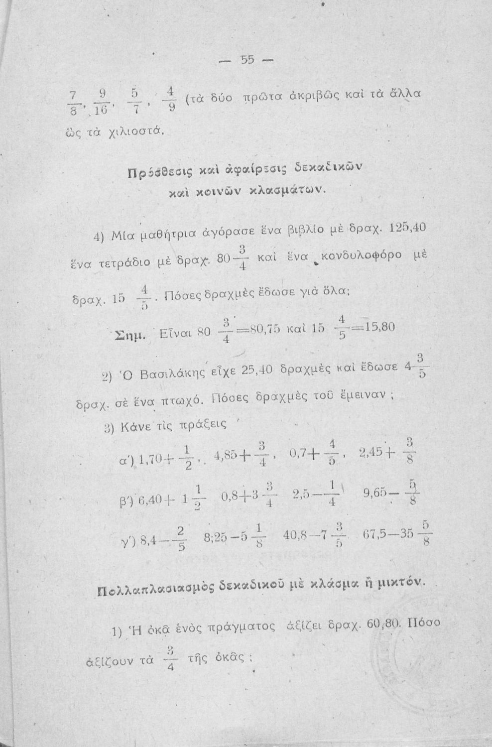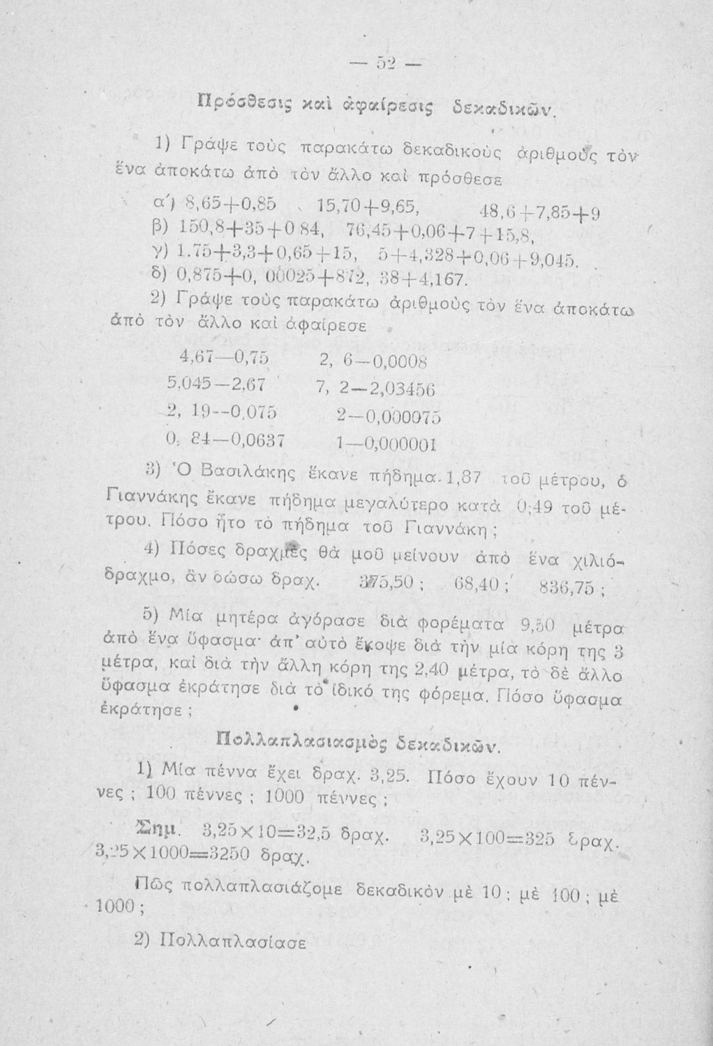 Ασκήσεις και προβλήματα αριθμητικής για την Πέμπτη τάξη των Δημοτικών Σχολείων