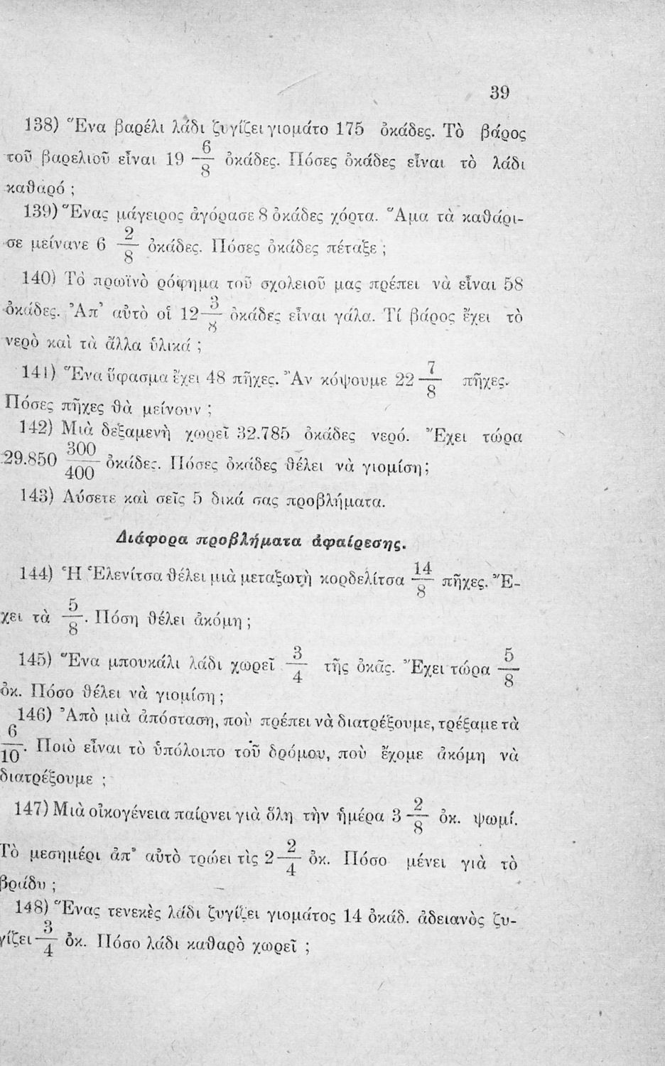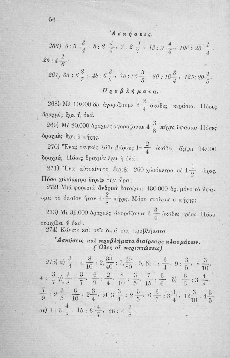 Σχολικό εγχειρίδιο Αριθμητικής Ε΄ Δημοτικού που αναφέρεται αποκλειστικά στα κλάσματα και περιέχει μόνο ασκήσεις.