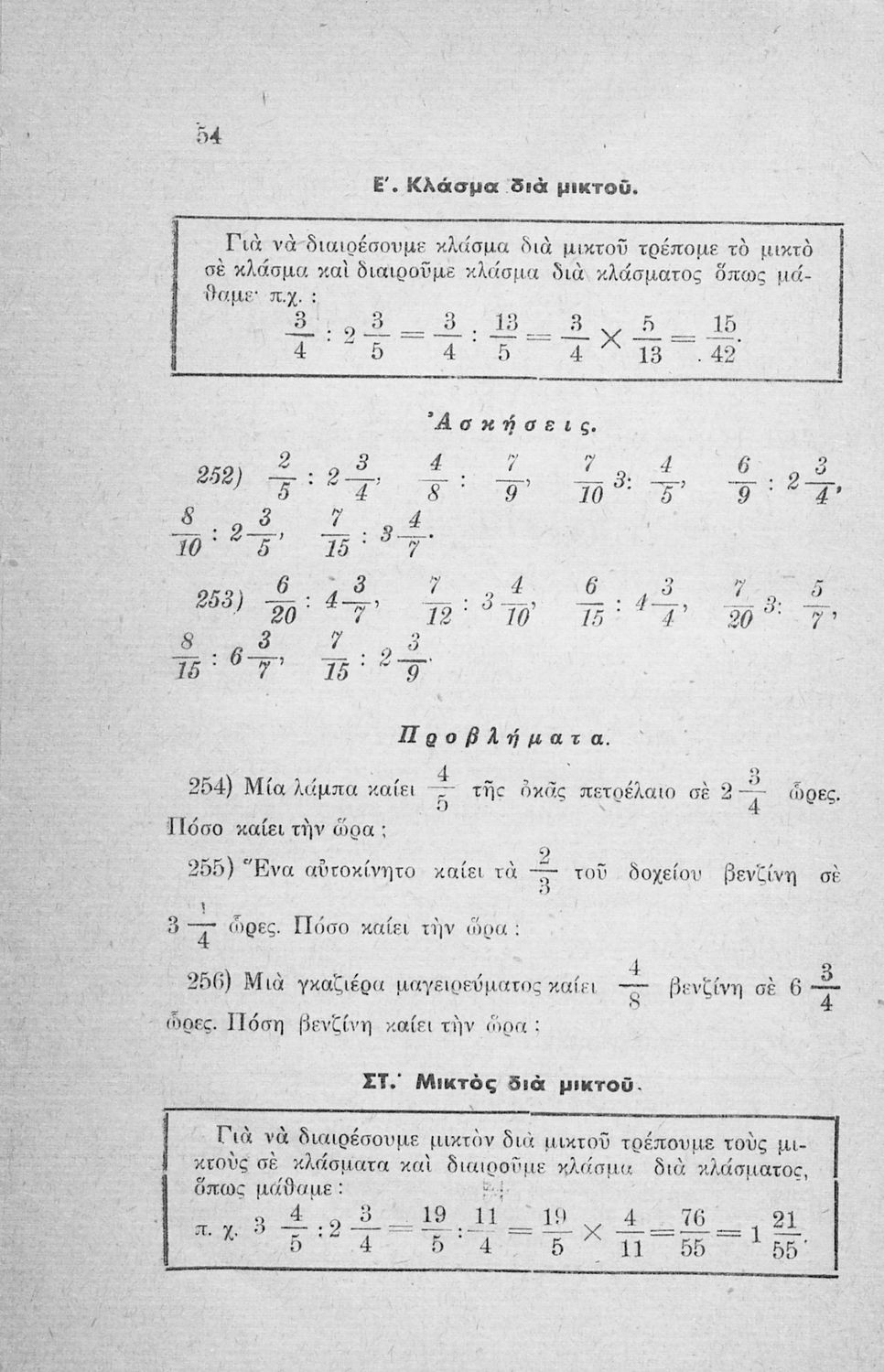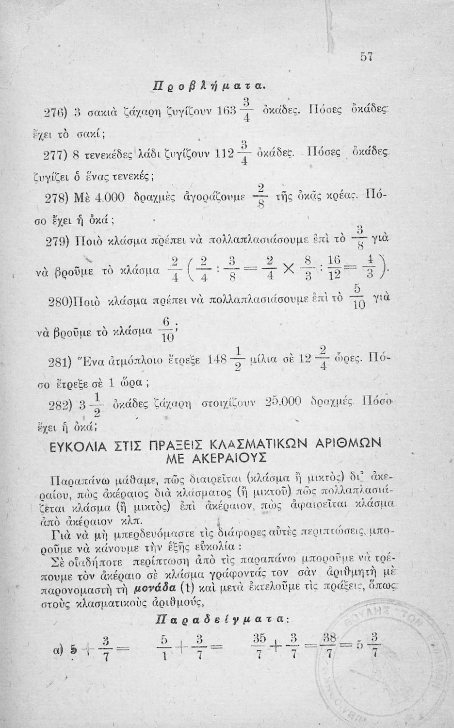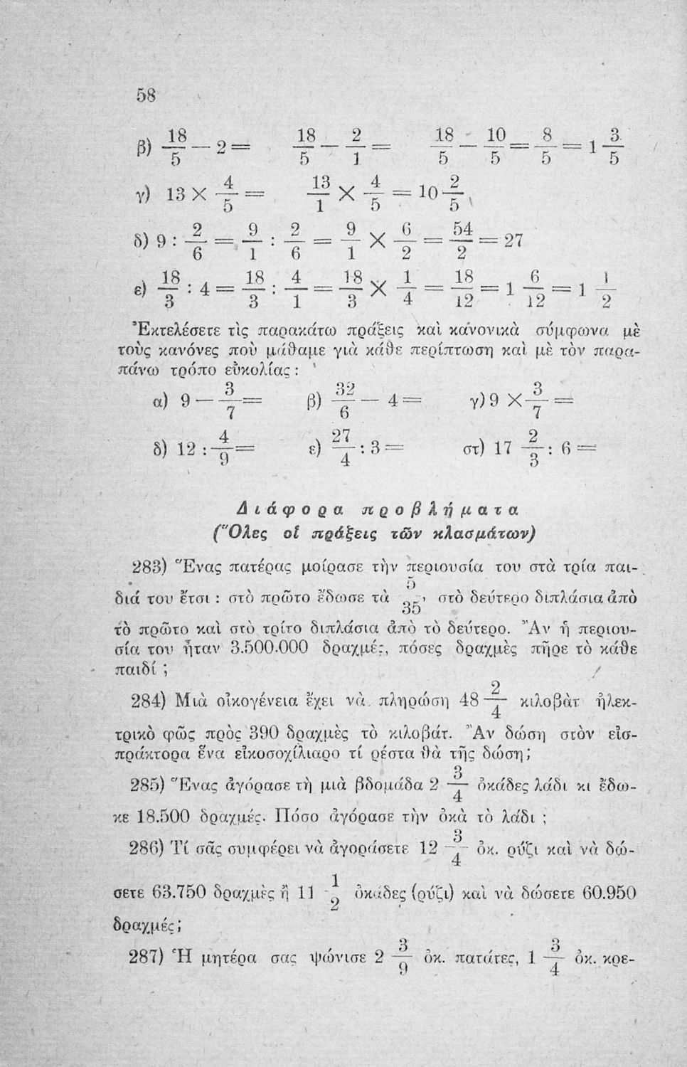 Σχολικό εγχειρίδιο Μαθηματικών των Ε΄ και ΣΤ΄ τάξεων του Δημοτικού το οποίο εισάγει τους μαθητές στις πράξεις ακέραιων και κλασματικών αριθμών.