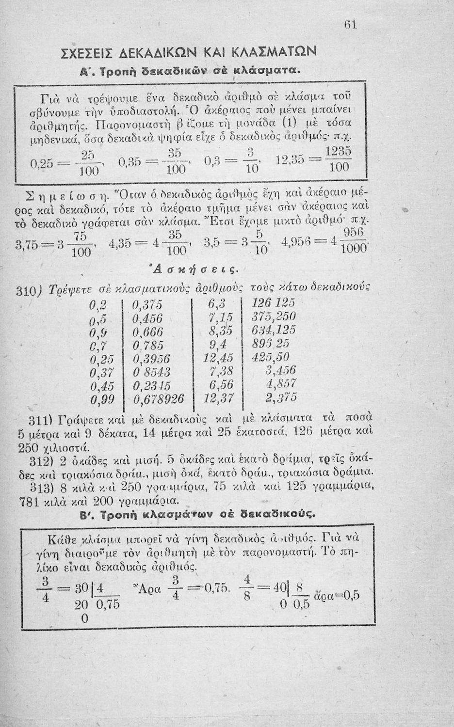 Σχολικό εγχειρίδιο Μαθηματικών των Ε΄ και ΣΤ΄ τάξεων του Δημοτικού το οποίο εισάγει τους μαθητές στις πράξεις ακέραιων και κλασματικών αριθμών.
