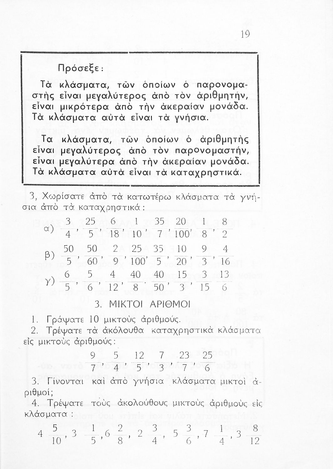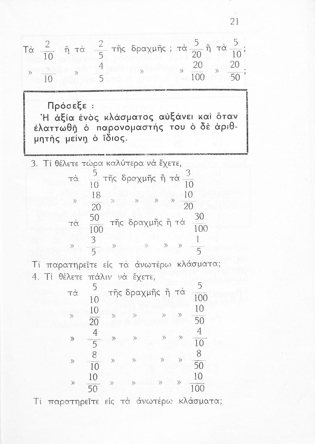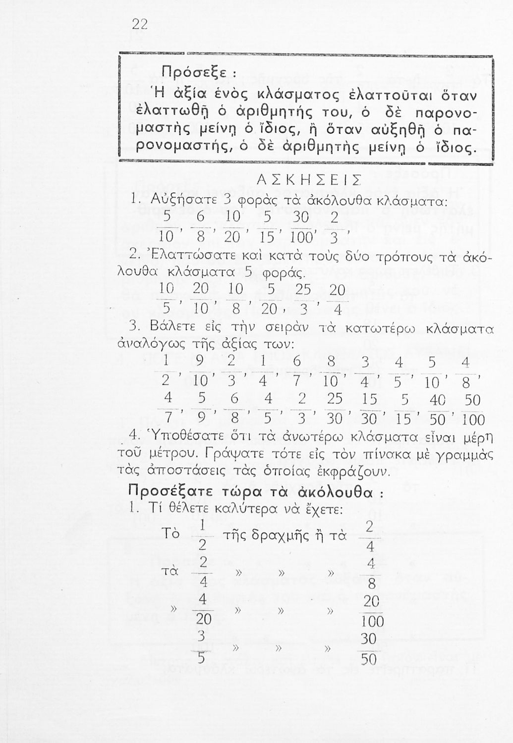 Βαθμίδα εκπαίδευσης: Πρωτοβάθμια Τάξη: Ε' Δημοτικού Μάθημα: Μαθηματικά Γλώσσα: Απλή καθαρεύουσα Παρουσίαση περιεχομένου: Μαθητικό βοήθημα Μαθηματικών Ε΄ Δημοτικού που περιλαμβάνει ασκήσεις και προβλήματα με κλάσματα. |