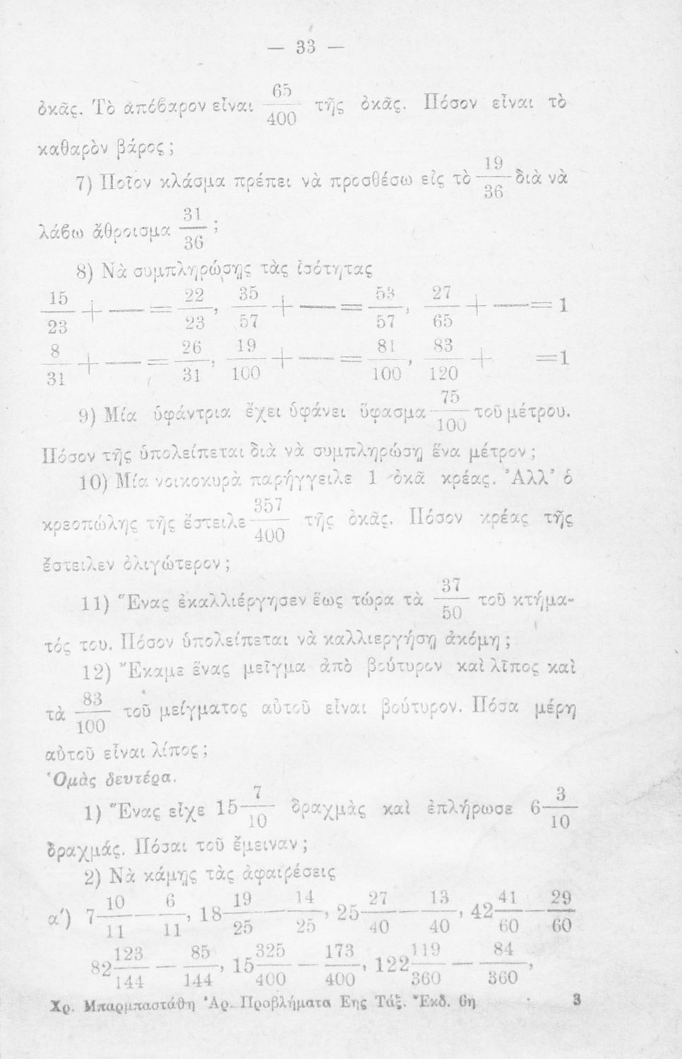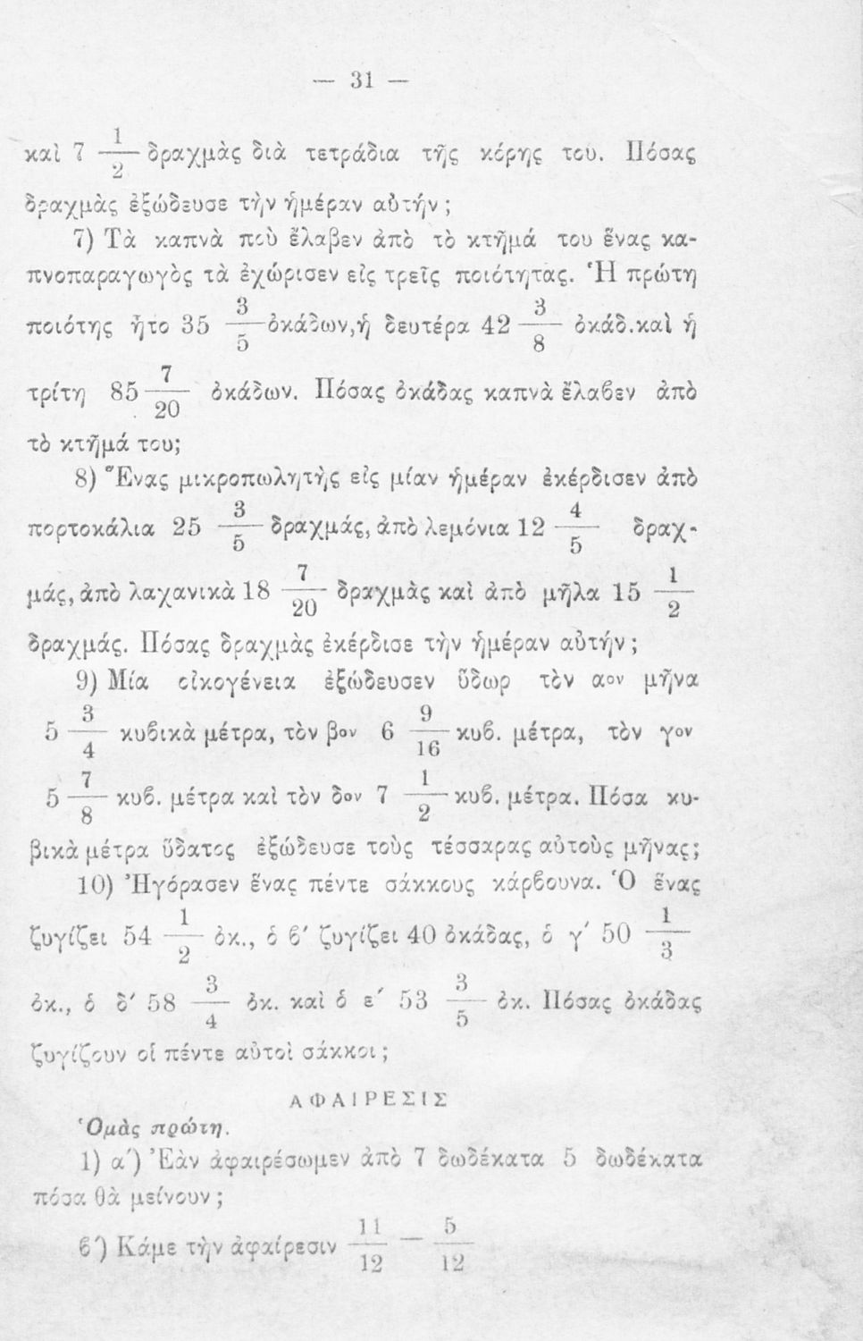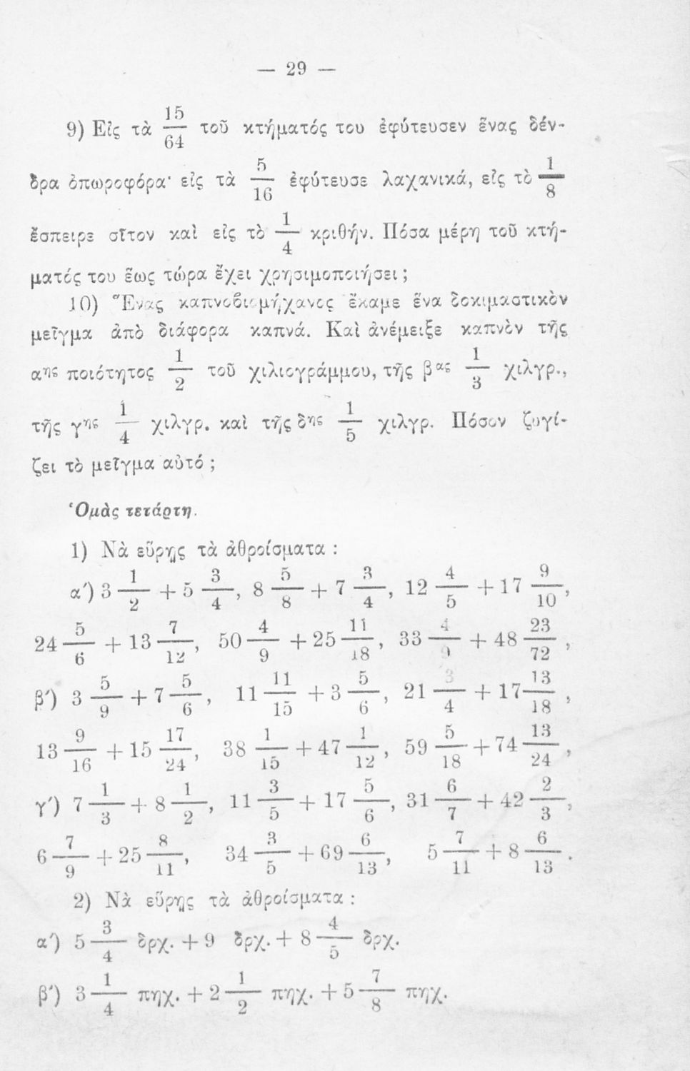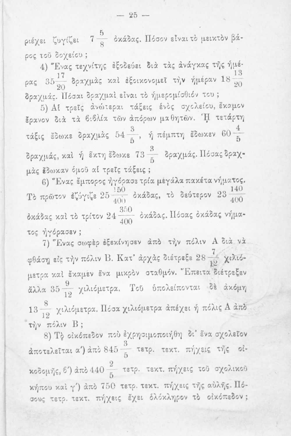 Αριθμητικά προβλήματα προς χρήσιν των μαθητών της Ε΄ τάξεως των Δημοτικών Σχολείων