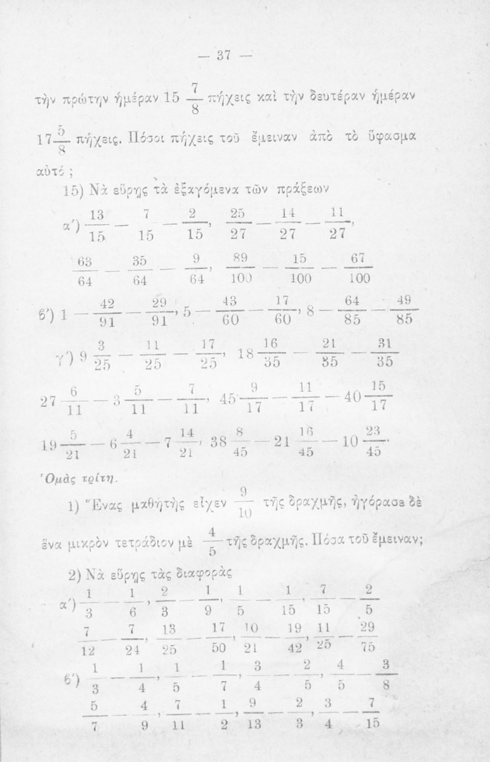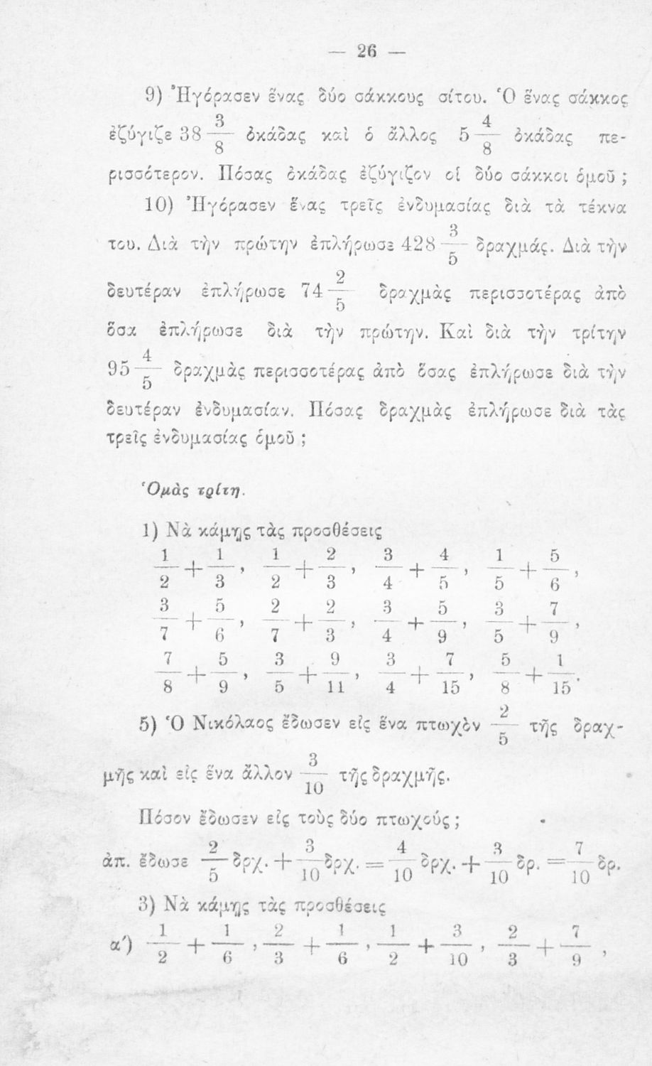 Σχολικό εγχειρίδιο με προβλήματα Αριθμητικής για την Ε΄ Δημοτικού χωρισμένο με βάση τις αριθμητικές πράξεις και τα κλάσματα.