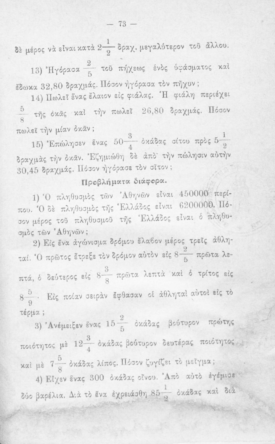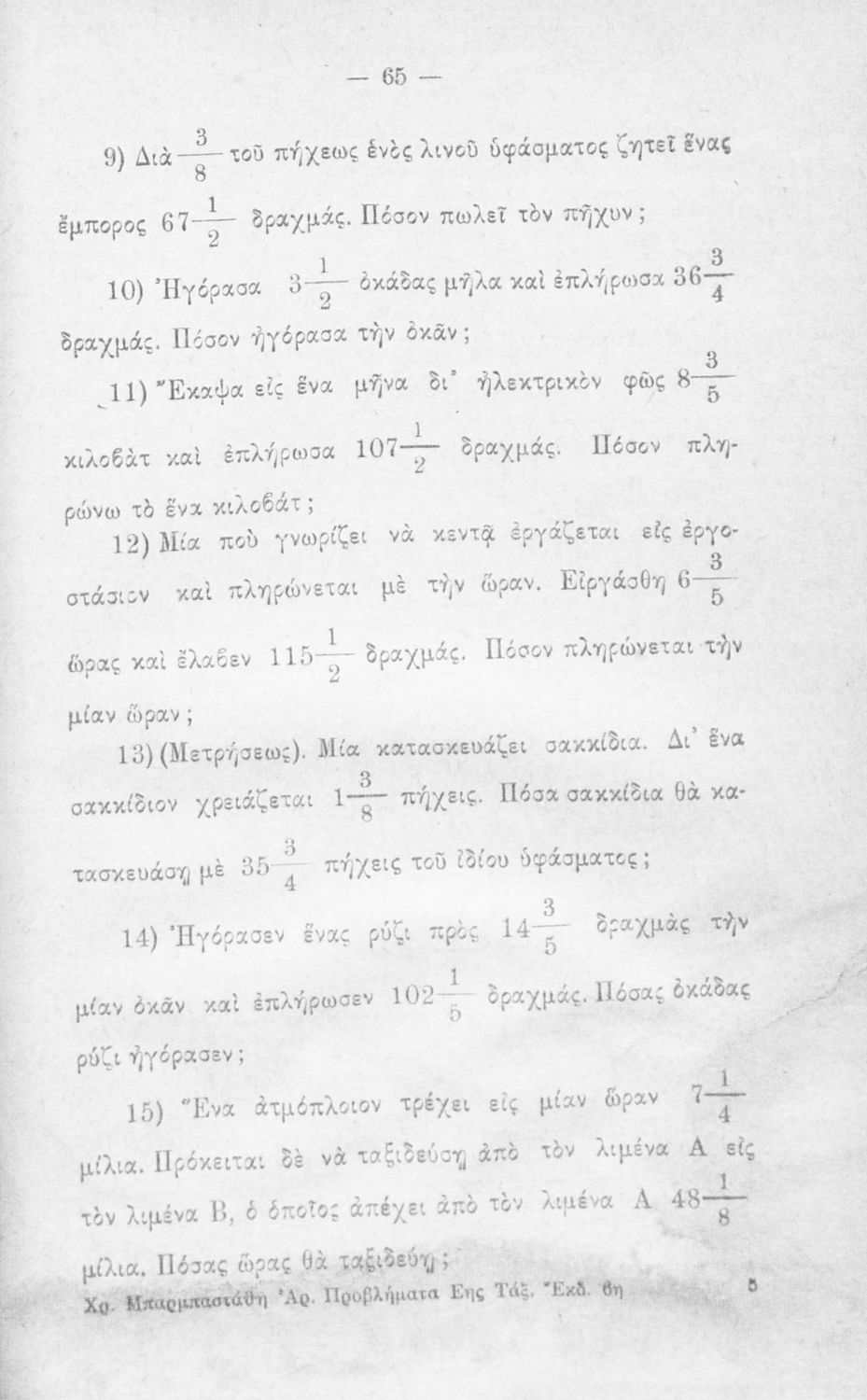 Αριθμητικά προβλήματα προς χρήσιν των μαθητών της Ε΄ τάξεως των Δημοτικών Σχολείων