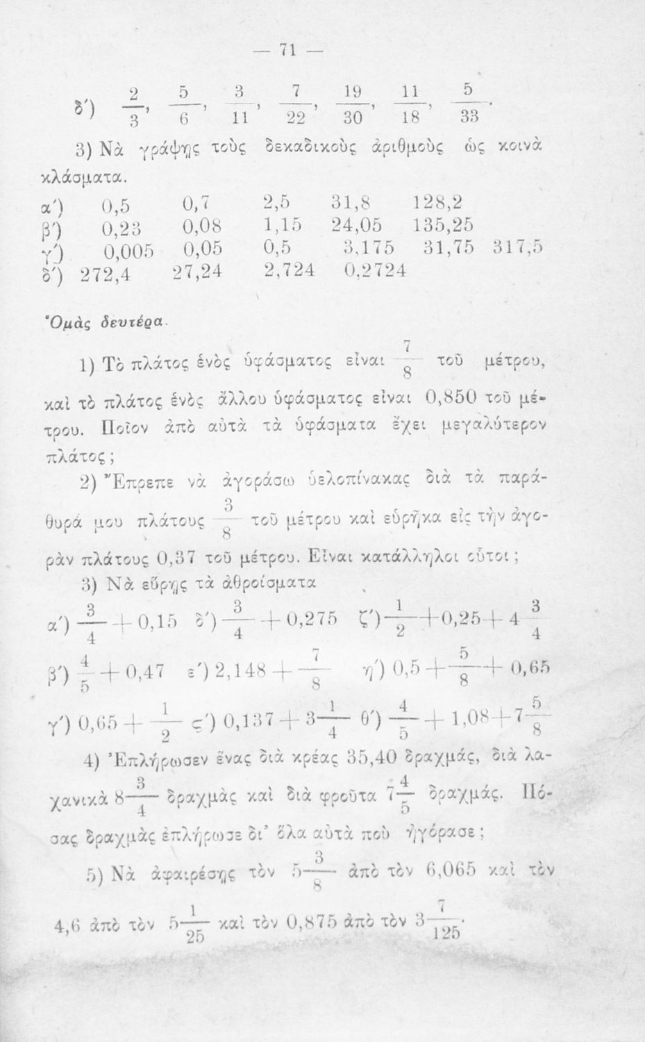 Σχολικό εγχειρίδιο με προβλήματα Αριθμητικής για την Ε΄ Δημοτικού χωρισμένο με βάση τις αριθμητικές πράξεις και τα κλάσματα.