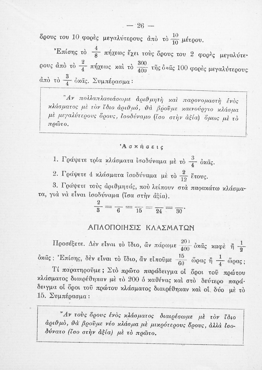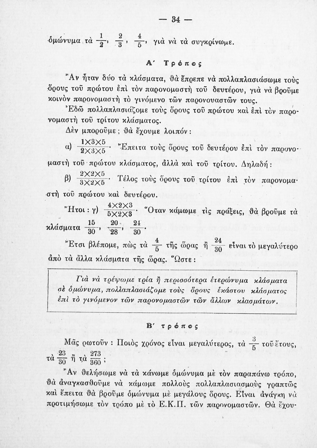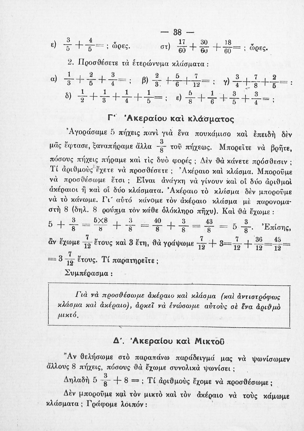 Σχολικό εγχειρίδιο Μαθηματικών των Ε΄ και ΣΤ΄ τάξεων του Δημοτικού το οποίο εισάγει τους μαθητές στις πράξεις ακέραιων και κλασματικών αριθμών.